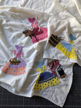 Set of 4 Vintage Sunbonnet Sue Hand-Embroidered Towels