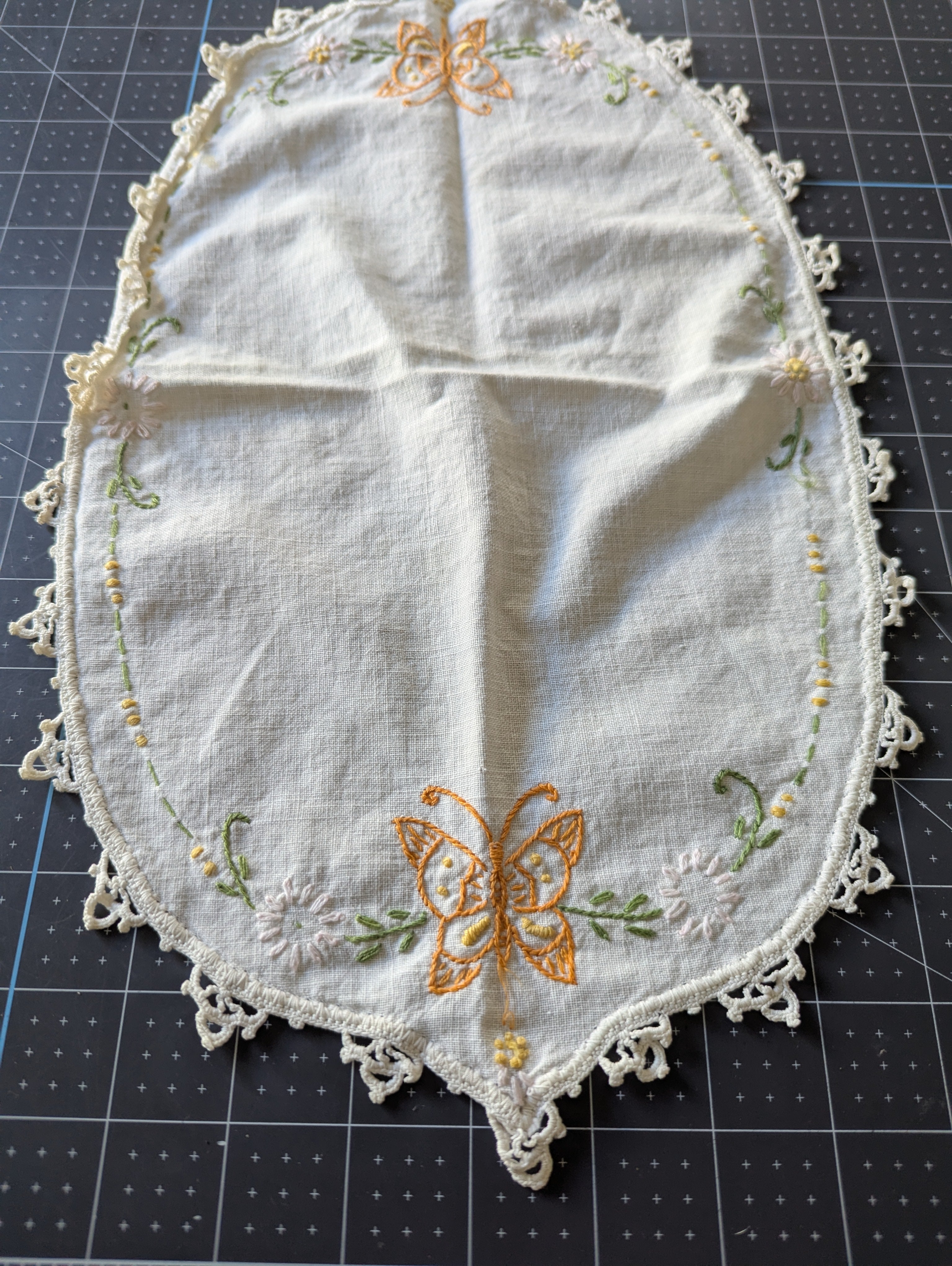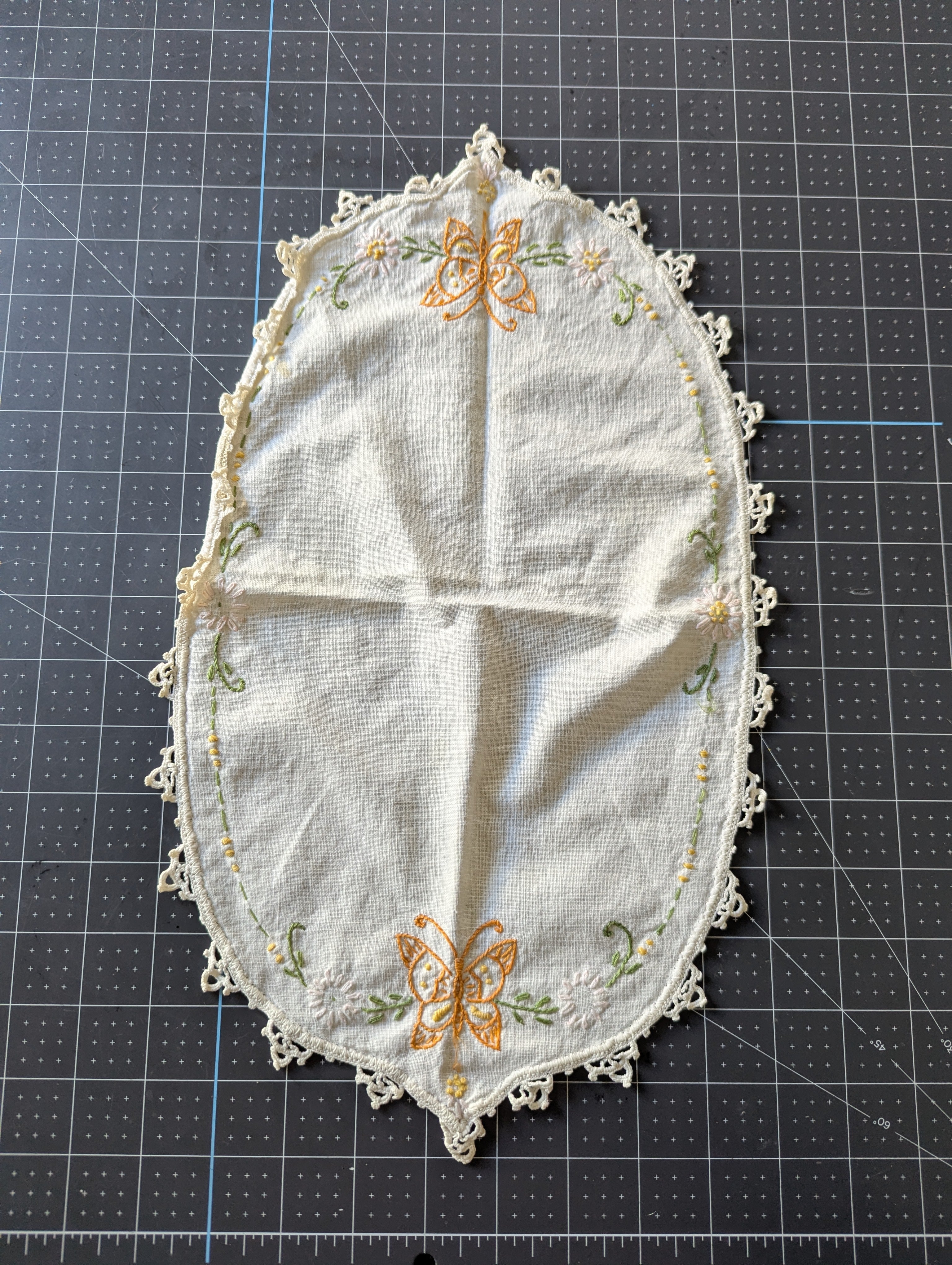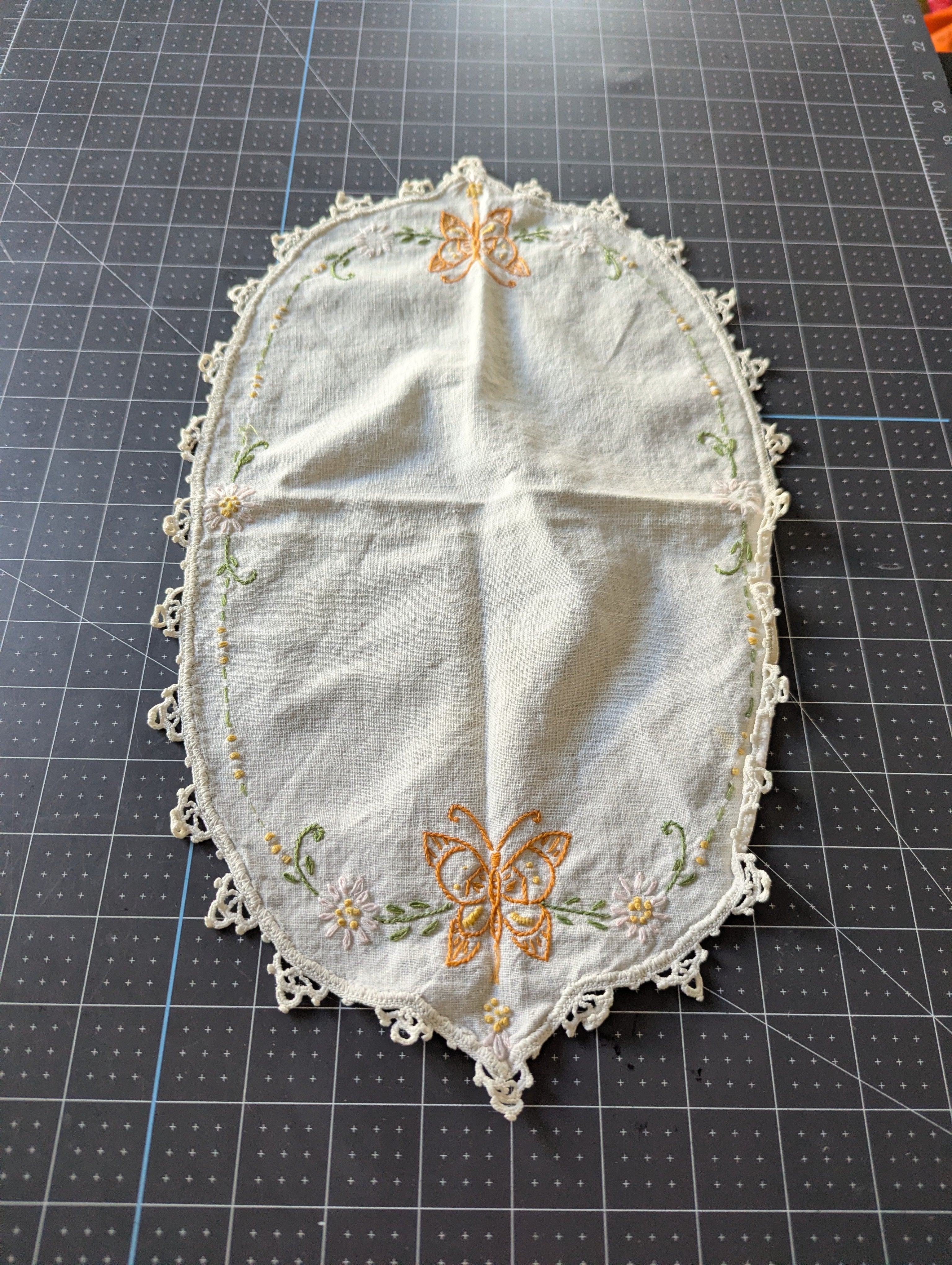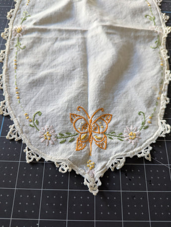 Small Embroidered Doily / Linen - ReFabric