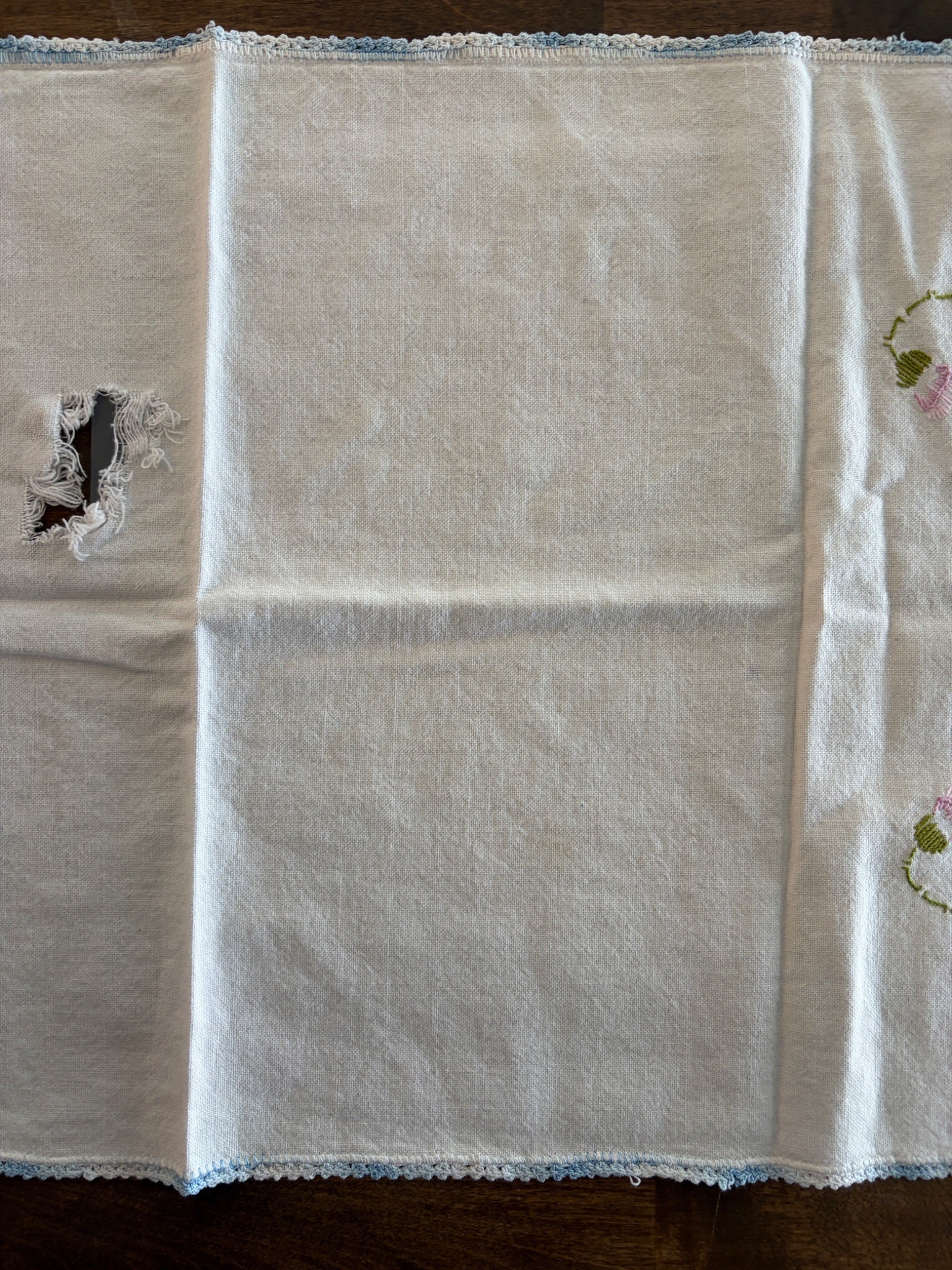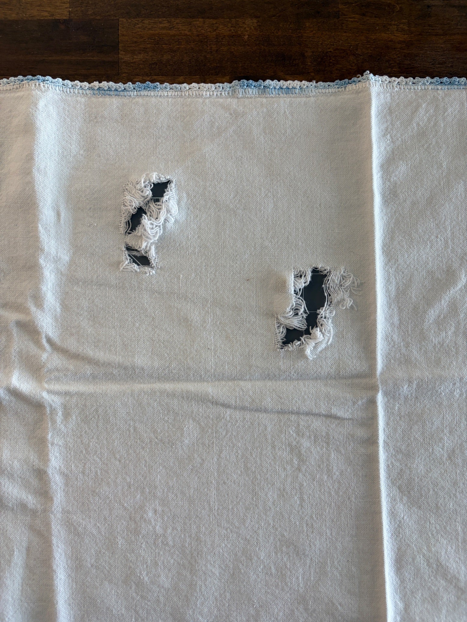 Please see pictures for details. 37 x 16 inches. This does have some holes- noted in picures. No odors. Non smoking home.
