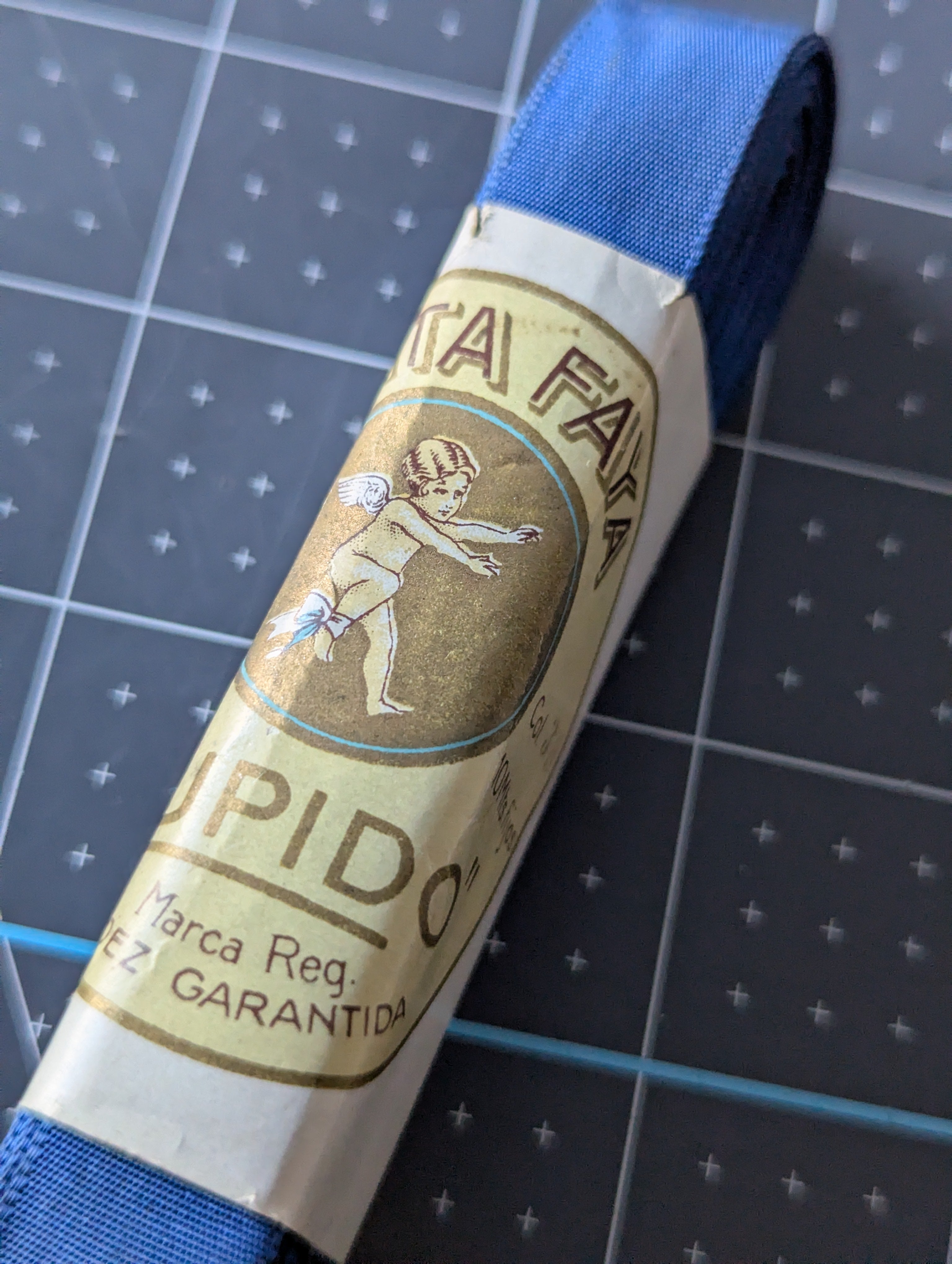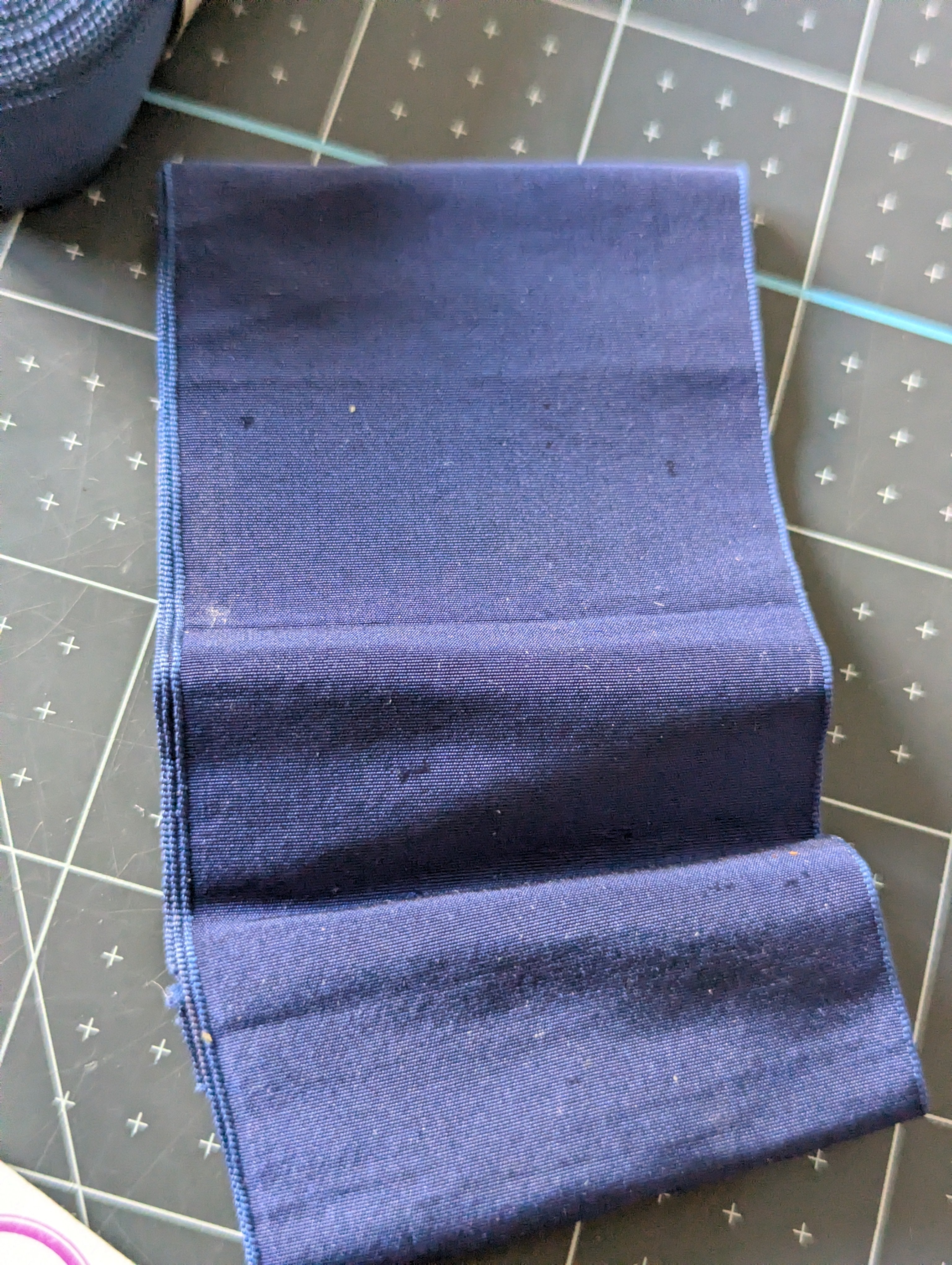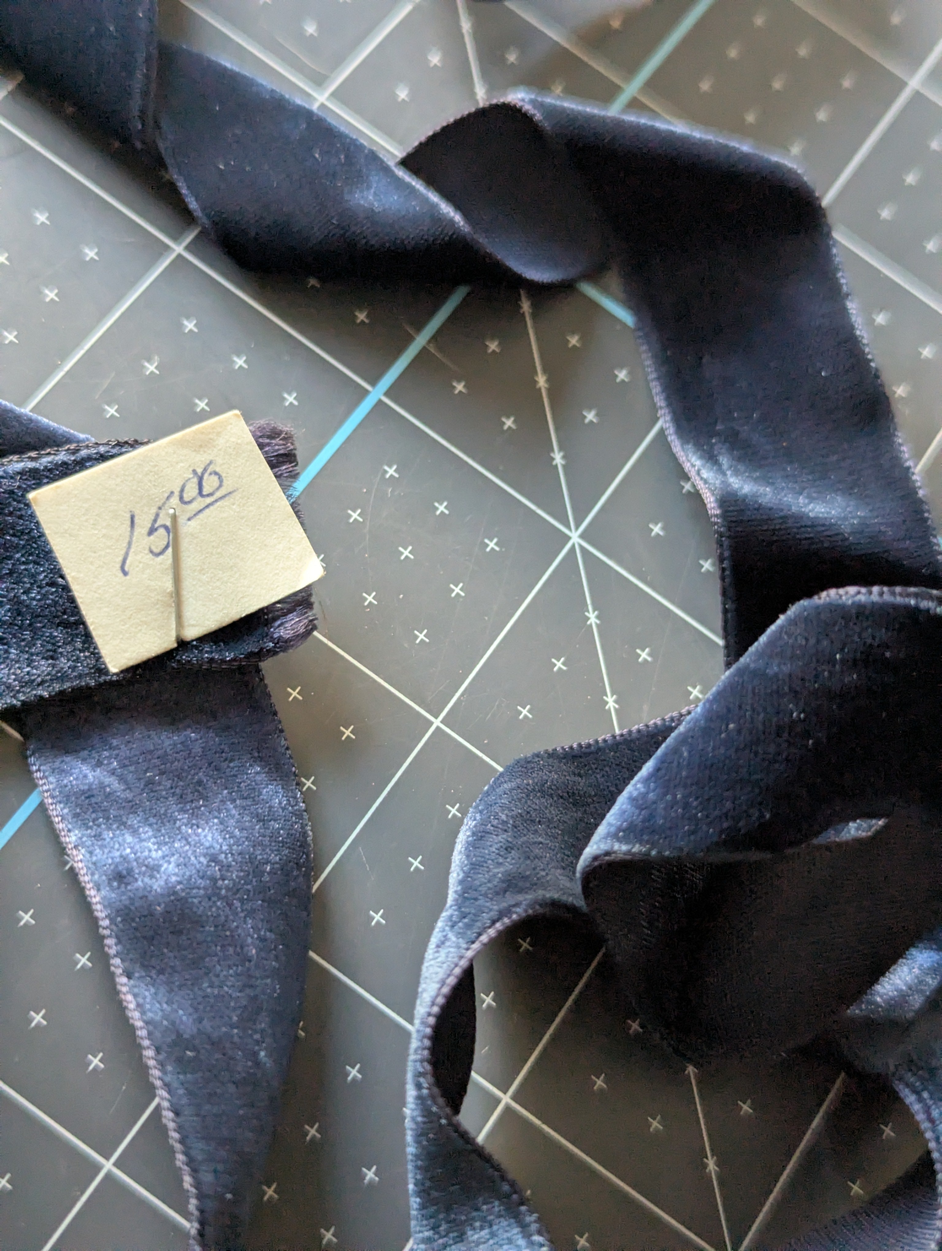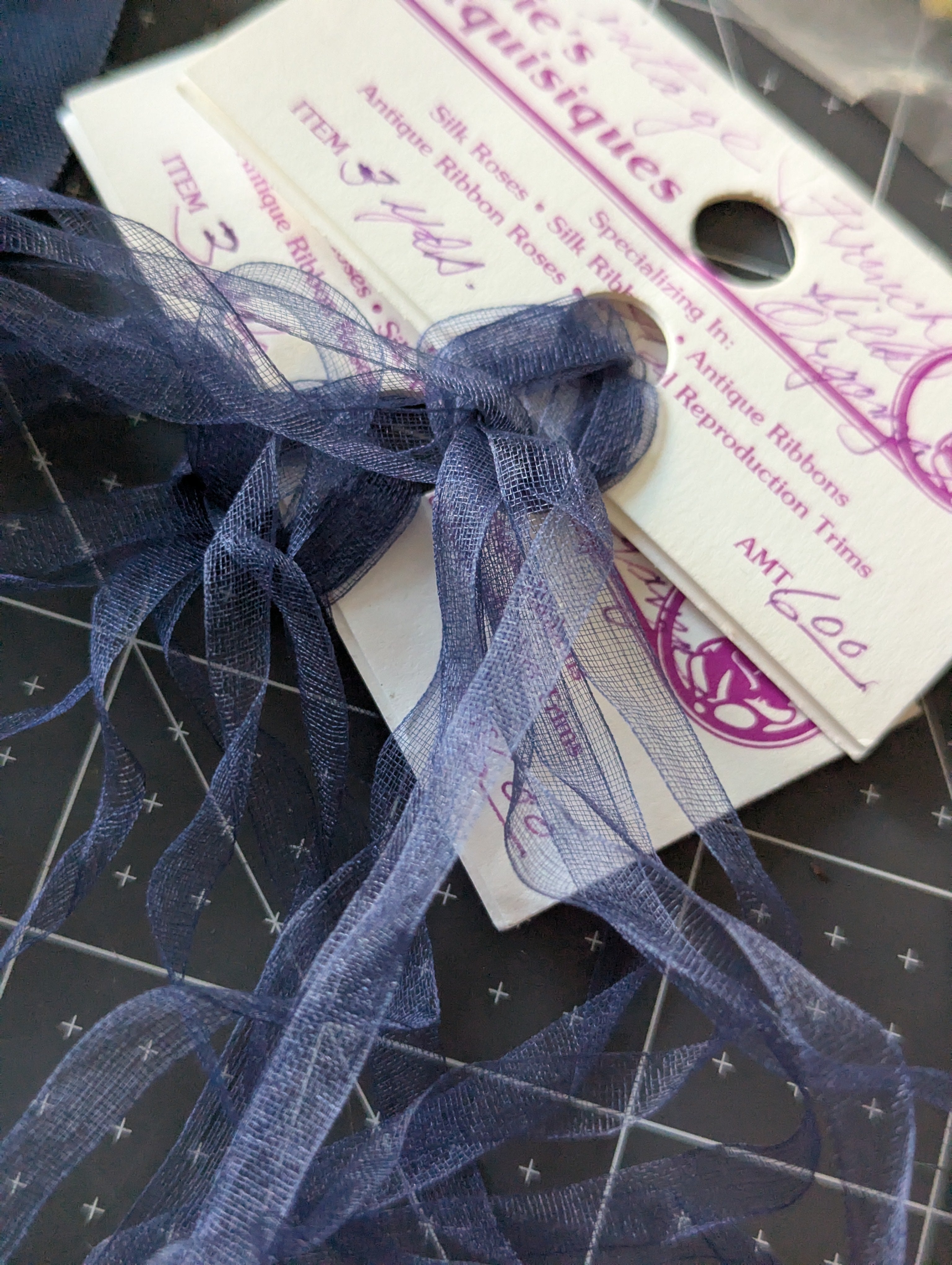 Includes all pictured trim. A variety of shades and textures of navy blues. These were not labeled by us. We have not confirmed yardage on any ribbons.