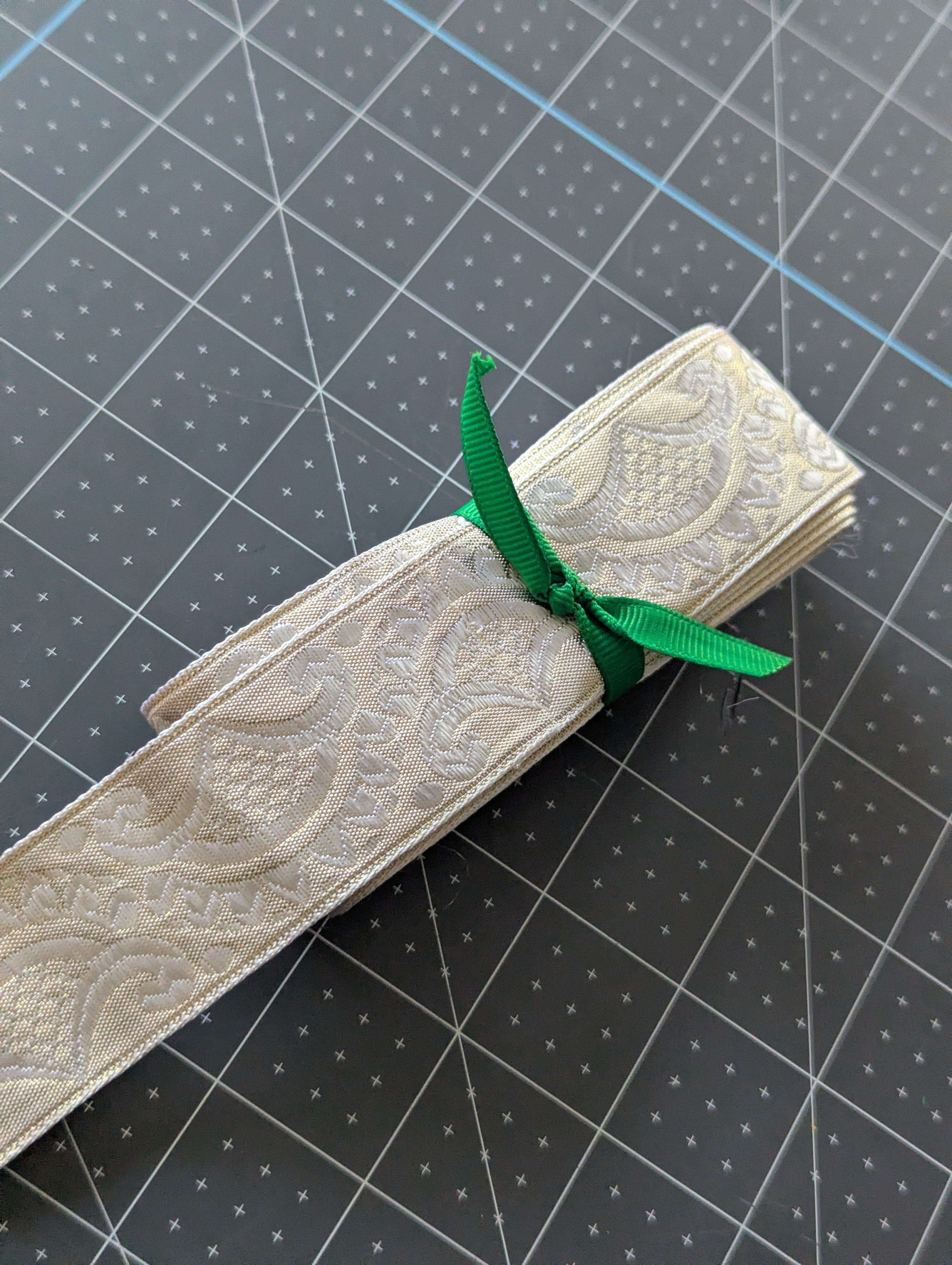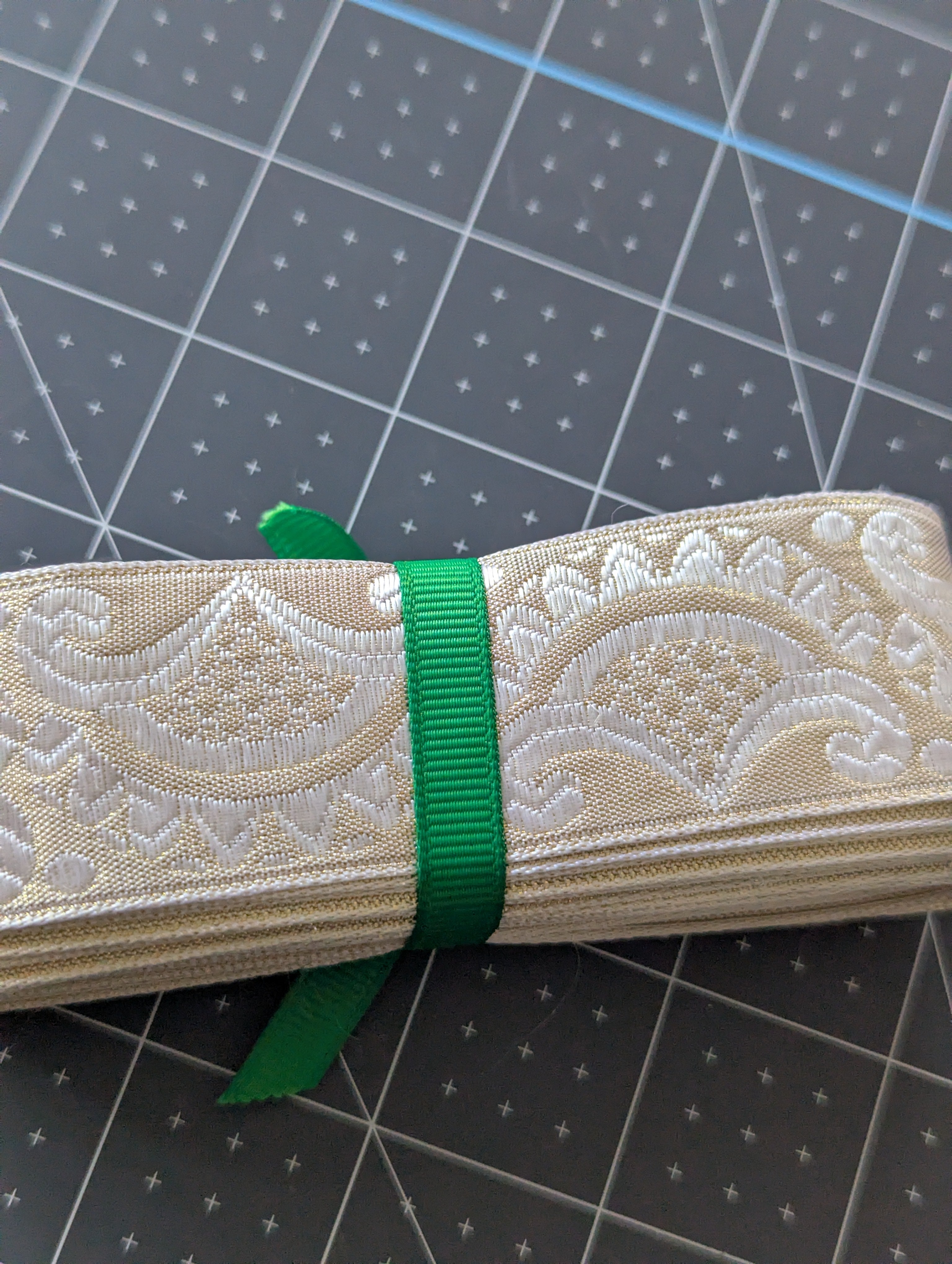 Gold & White Brocade Style Ribbon - Vintage - 6-yards
