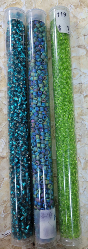 8/0 Japanese Matsuno Seed beads - Colors in photo - Very little used out of each 28 gram (6 inch) tube if any.