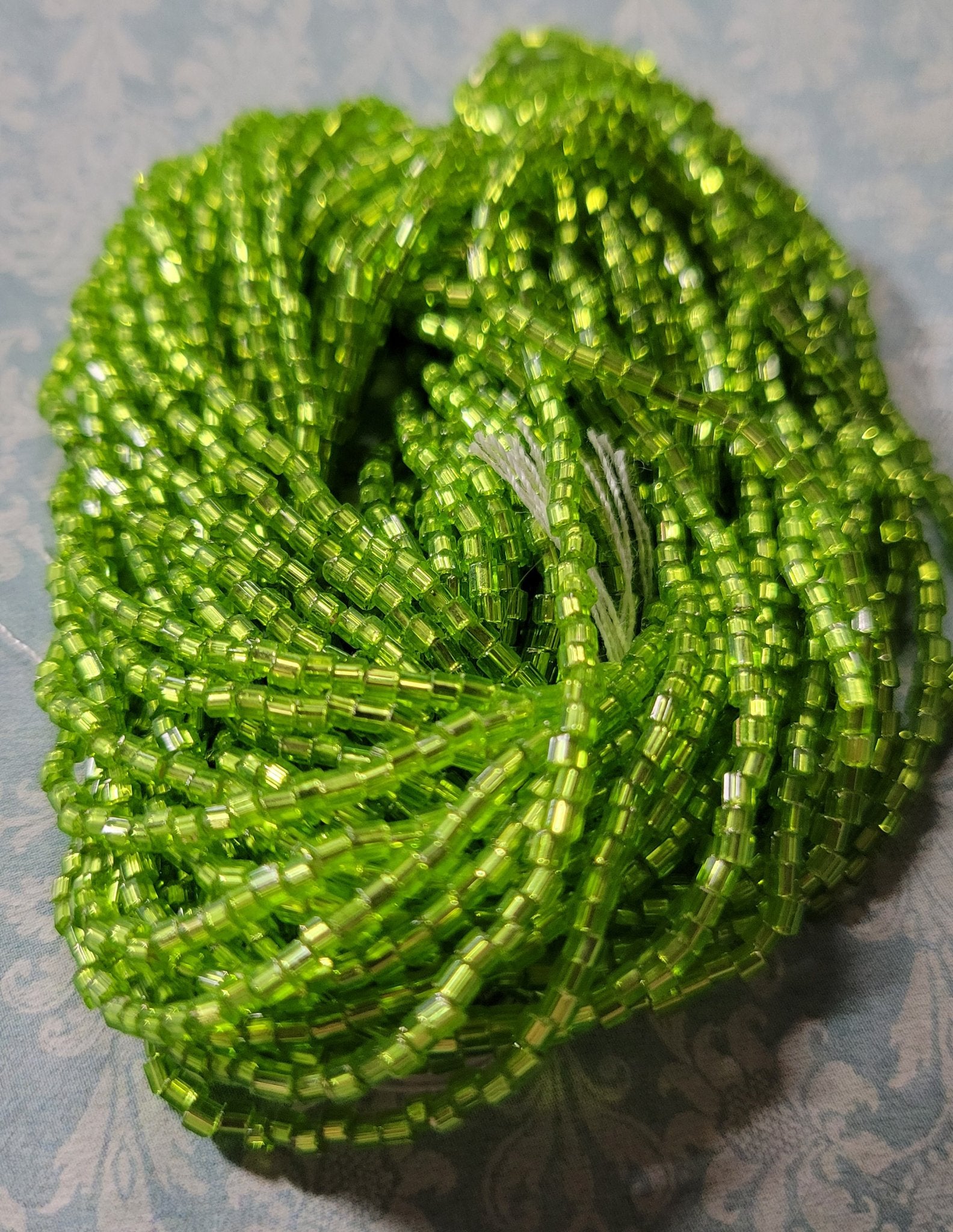 Czech 9/0 2-Cut Seed Beads - Silver Lined Transparent Grass Green - Full Hank (12 strands)