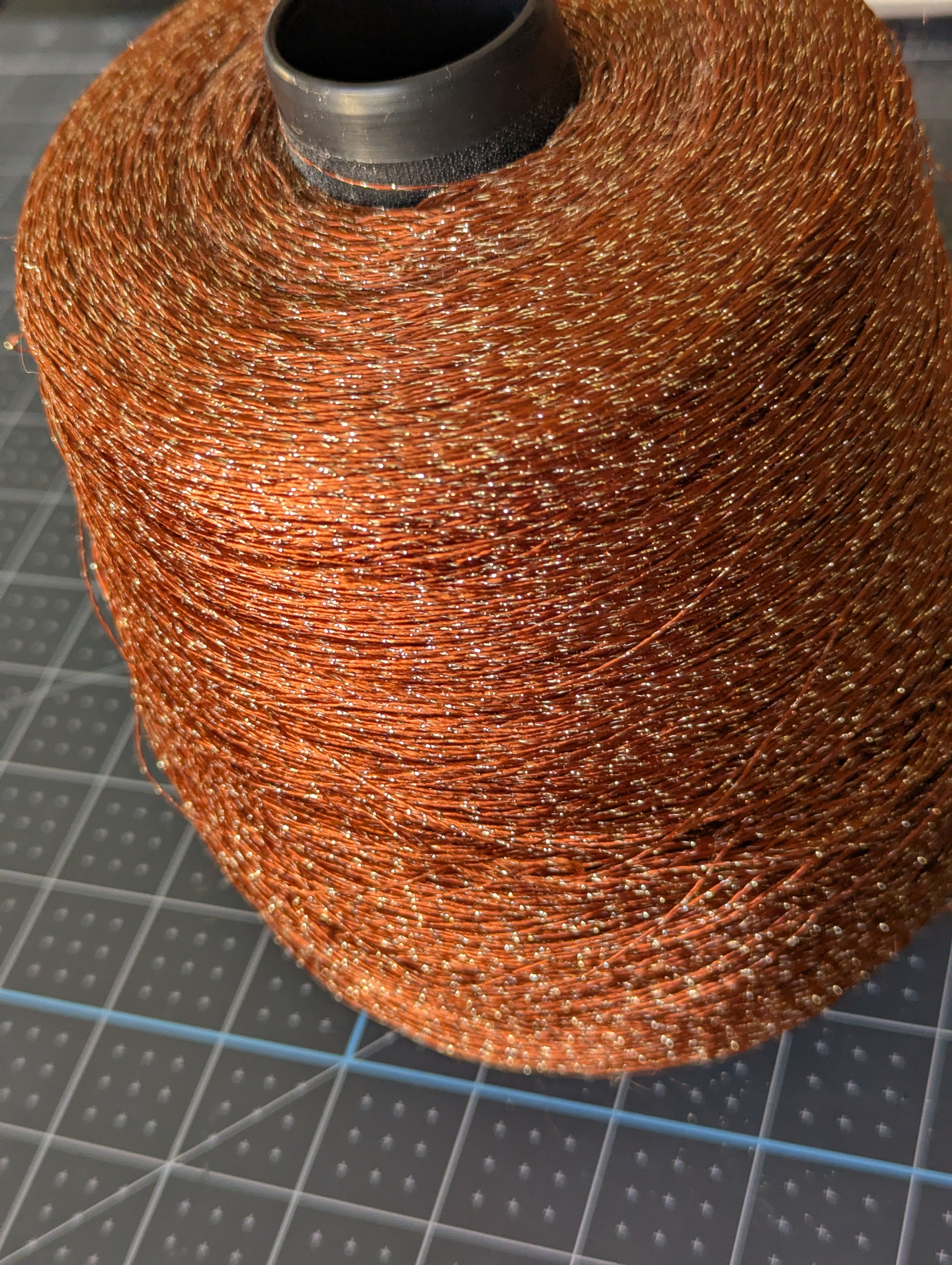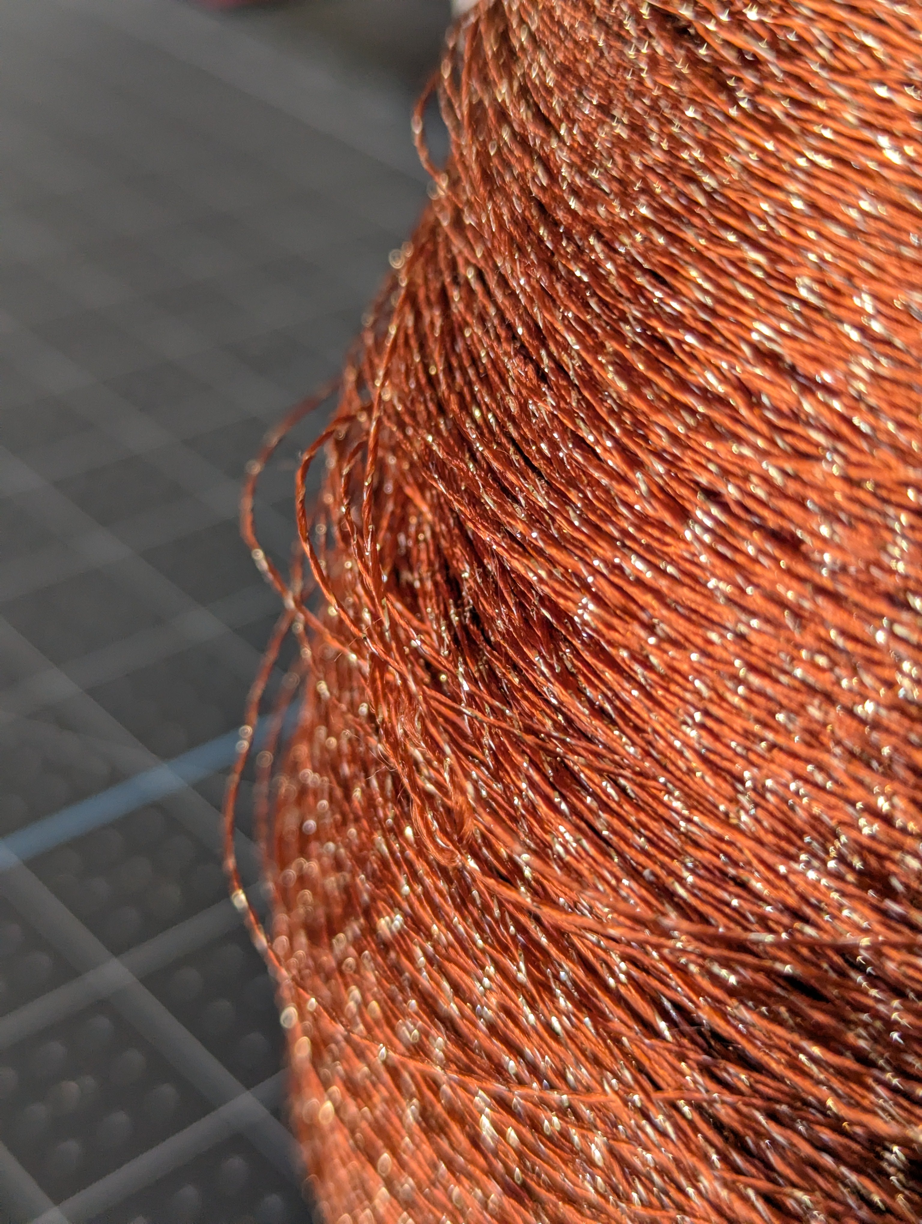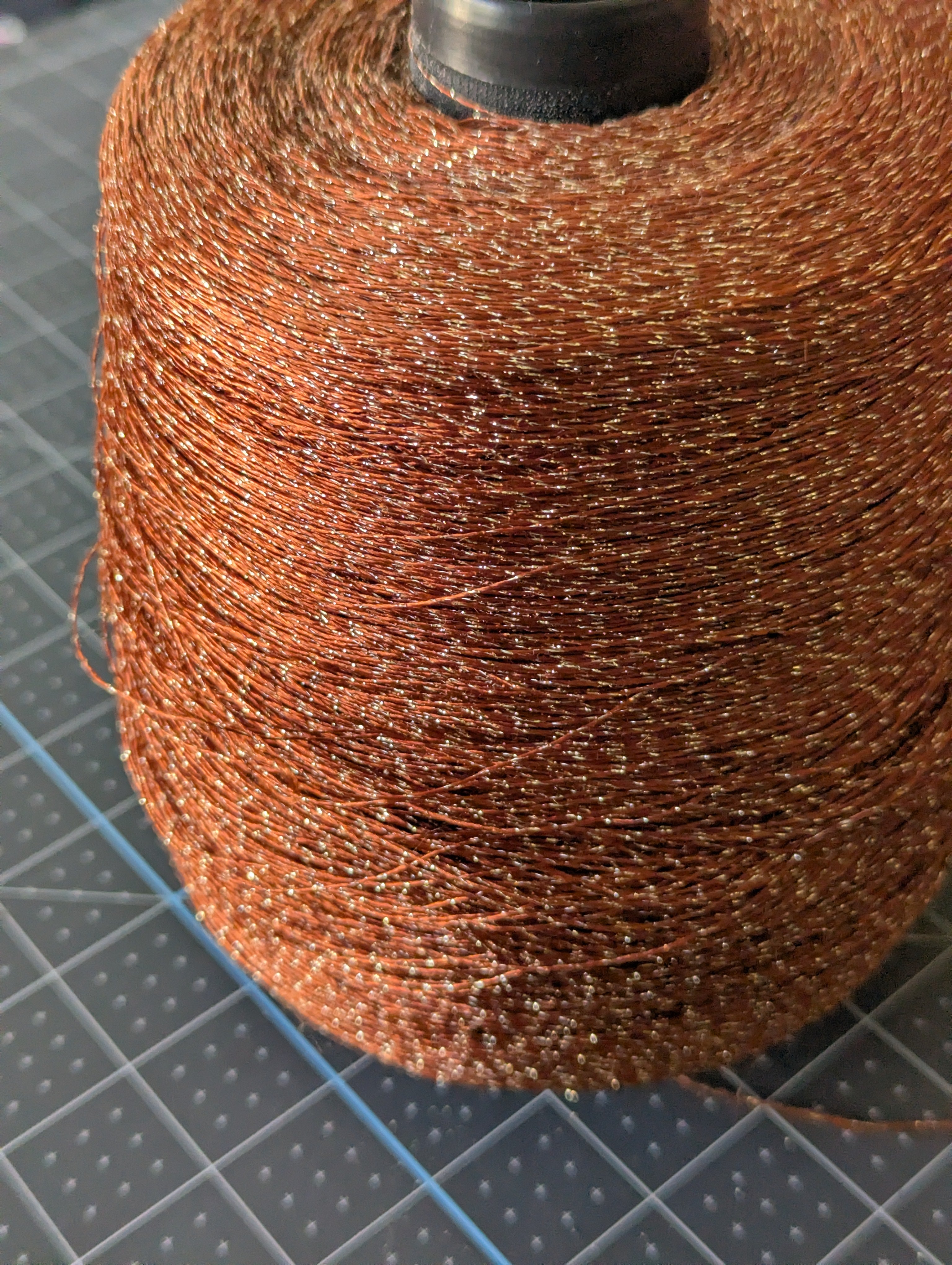 Large Spool of Burnt Red Thread with Metallic Floss