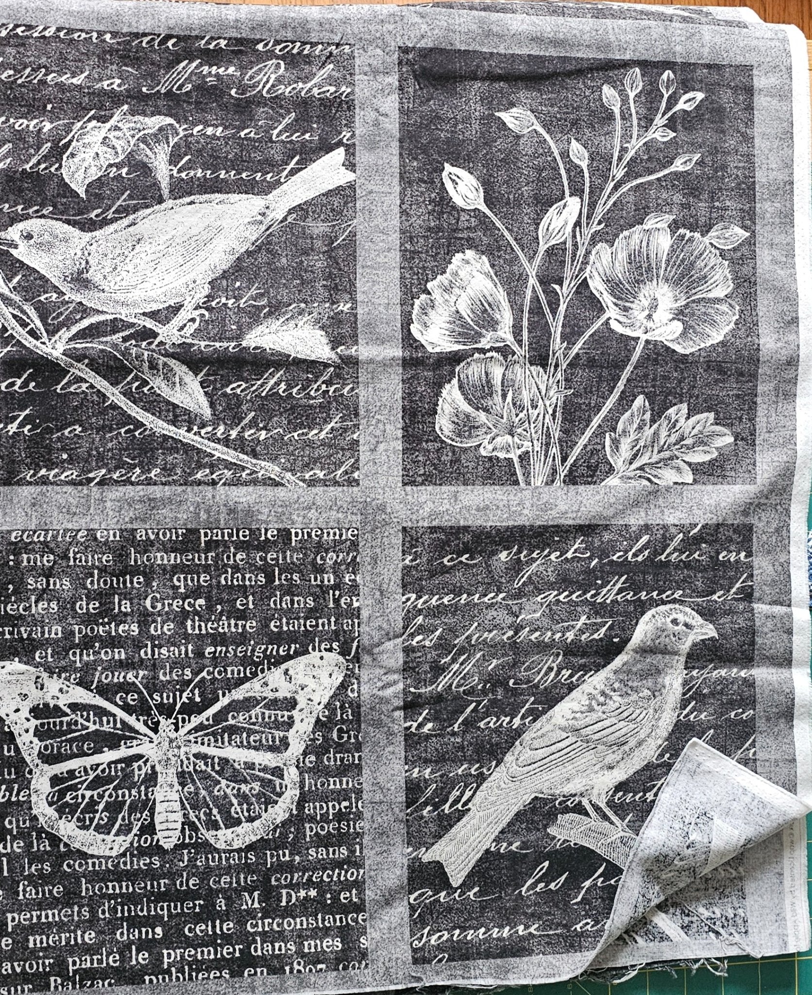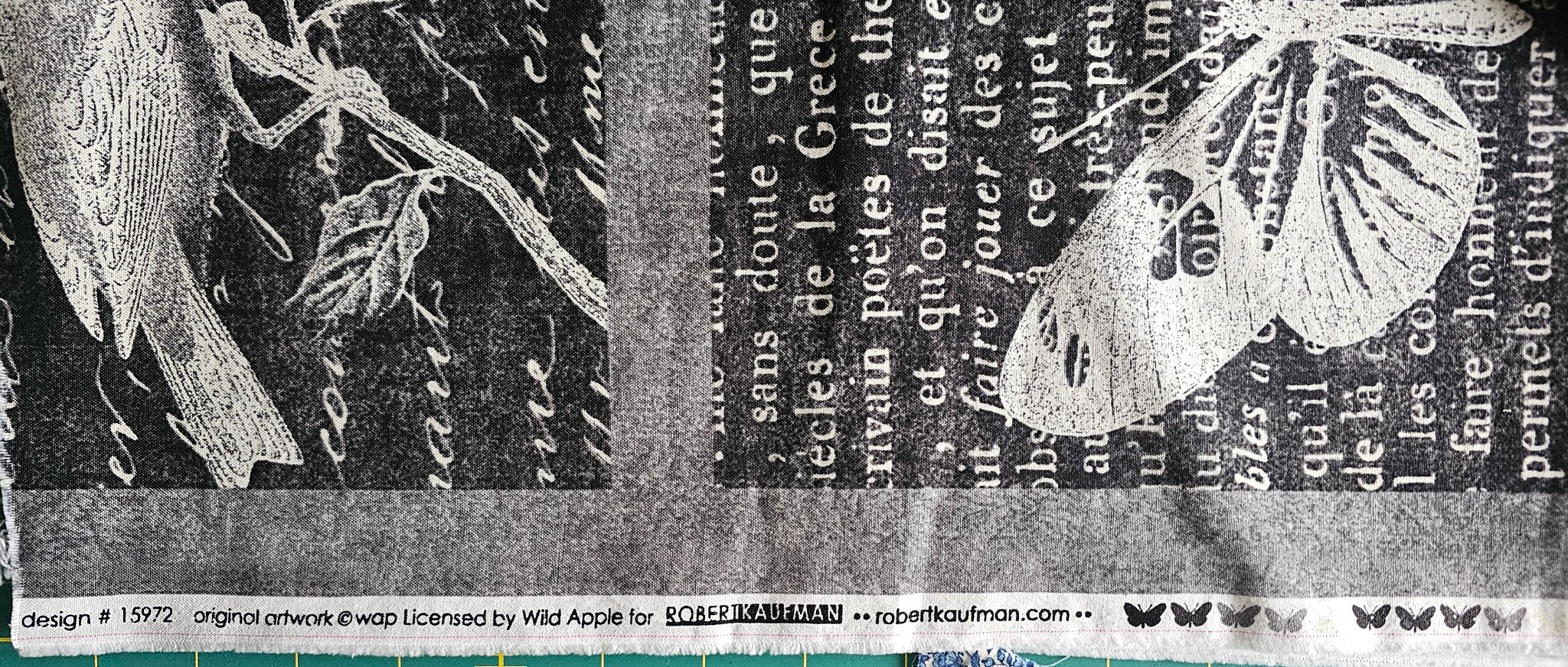 Fabric Cotton 1-3 Yards x 44" (Sold by the Yard) Botanical Birds Butterflies Words Robert Kaufman 15972 Wild Apple