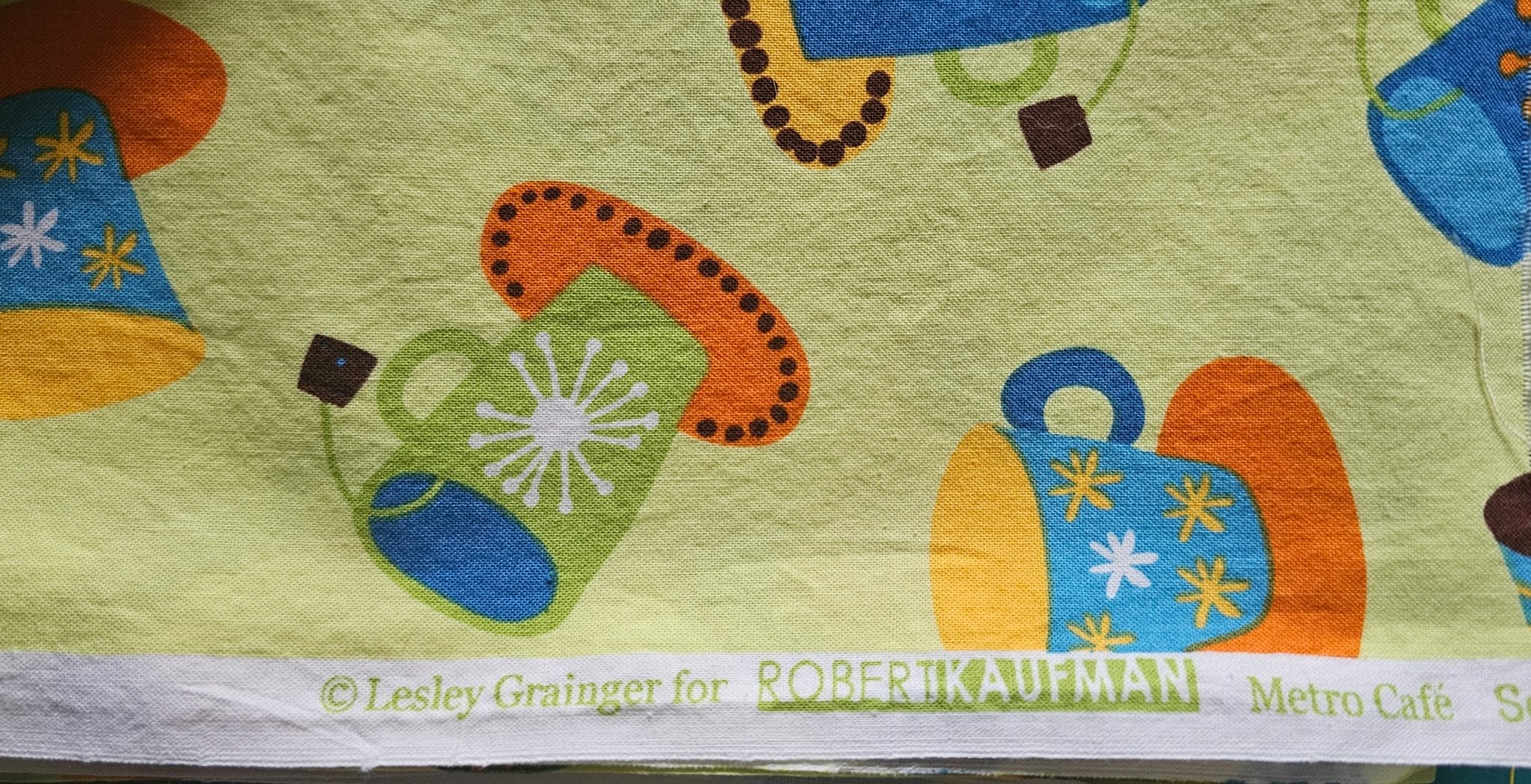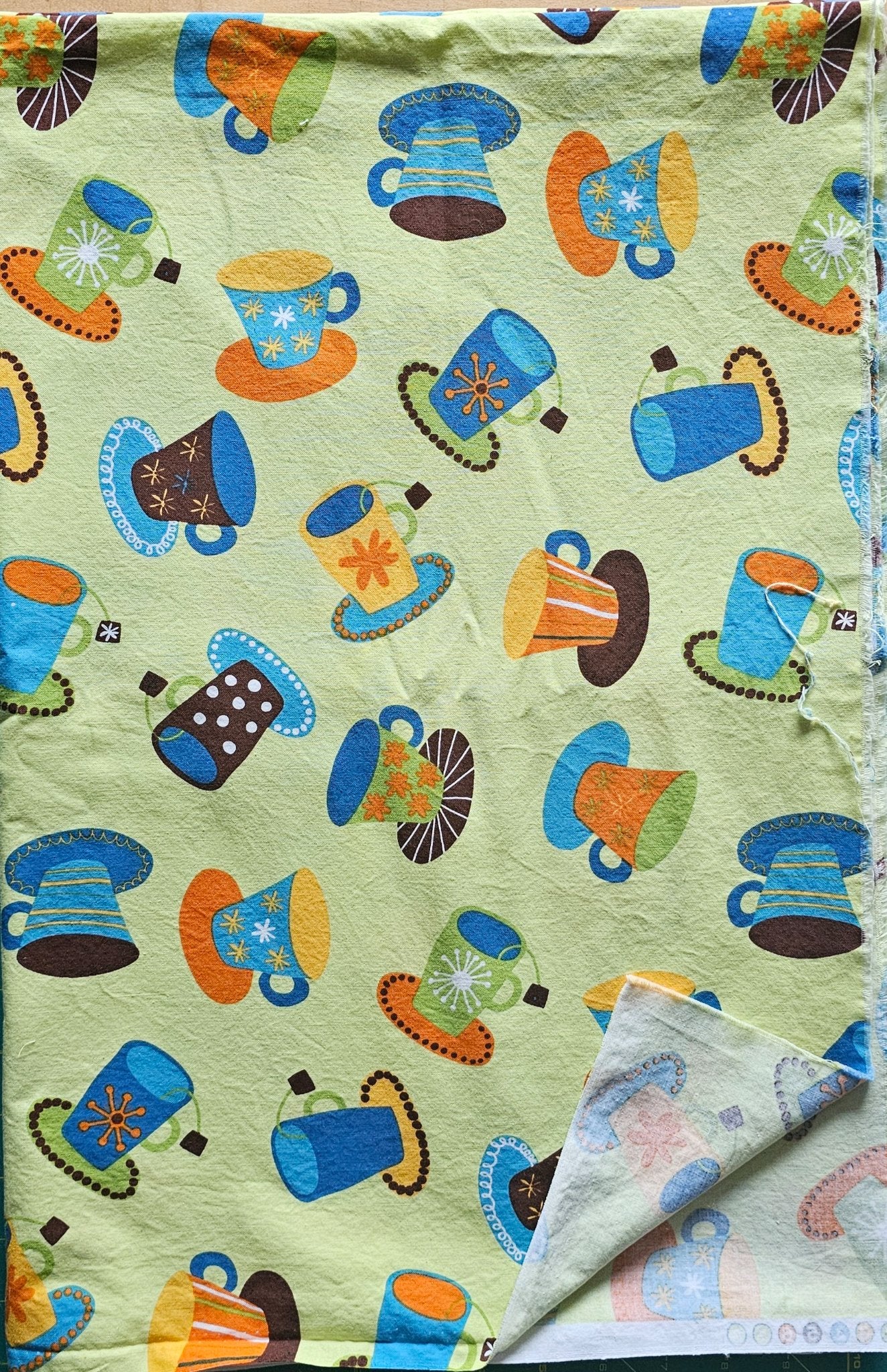 Fabric Cotton 1-3 Yards x 44" (Sold by the Yard) Tea Coffee Cups Green Blue Orange Robert Kaufman Metro Cafe