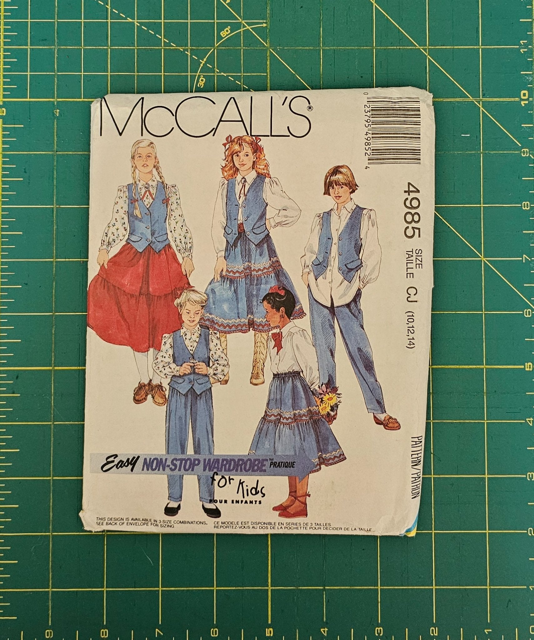 Sewing Pattern Mc Call's #4985 CJ 10 12 14 Unused Kids Girl's Vest Blouse Skirt and Pants