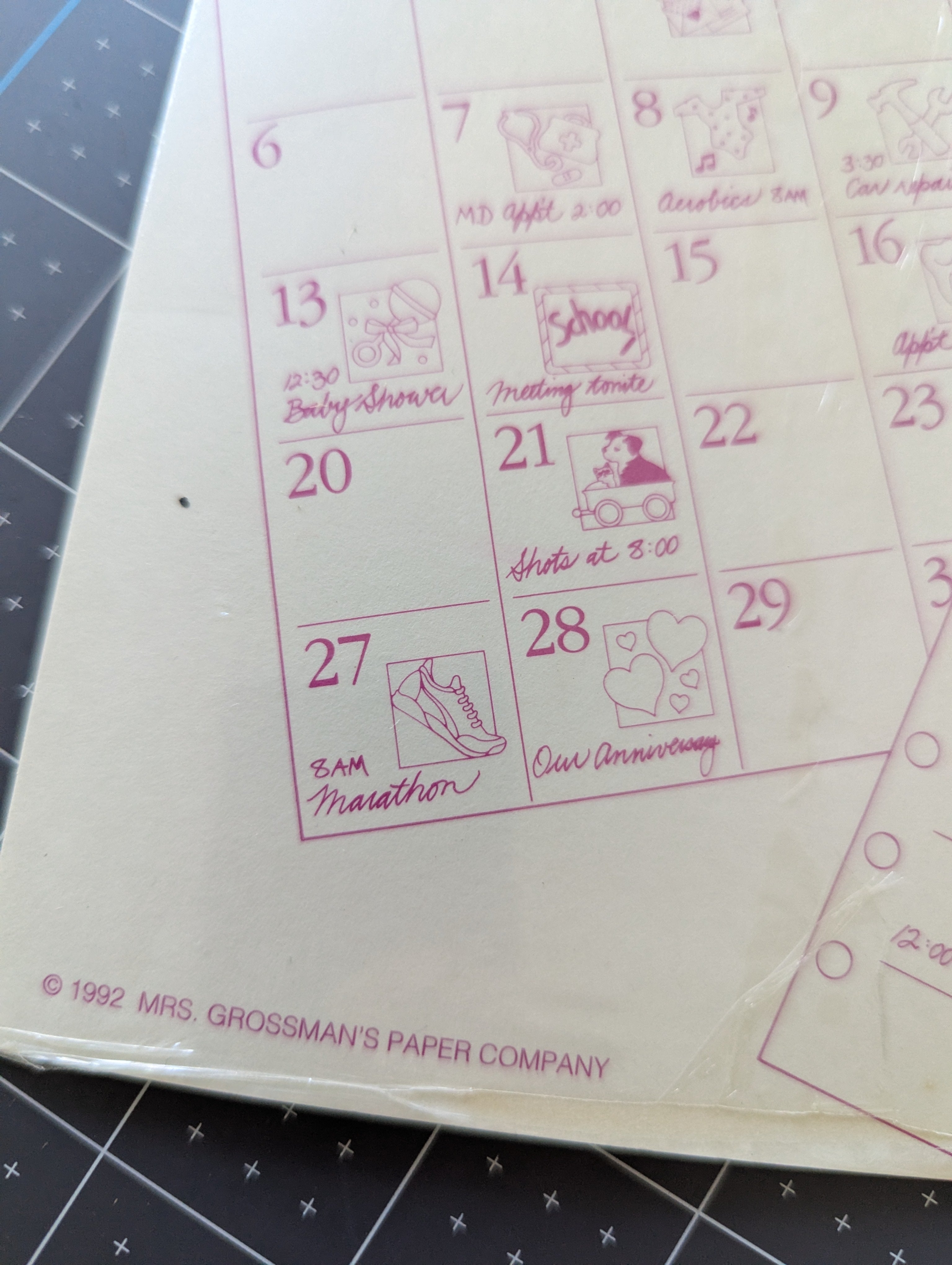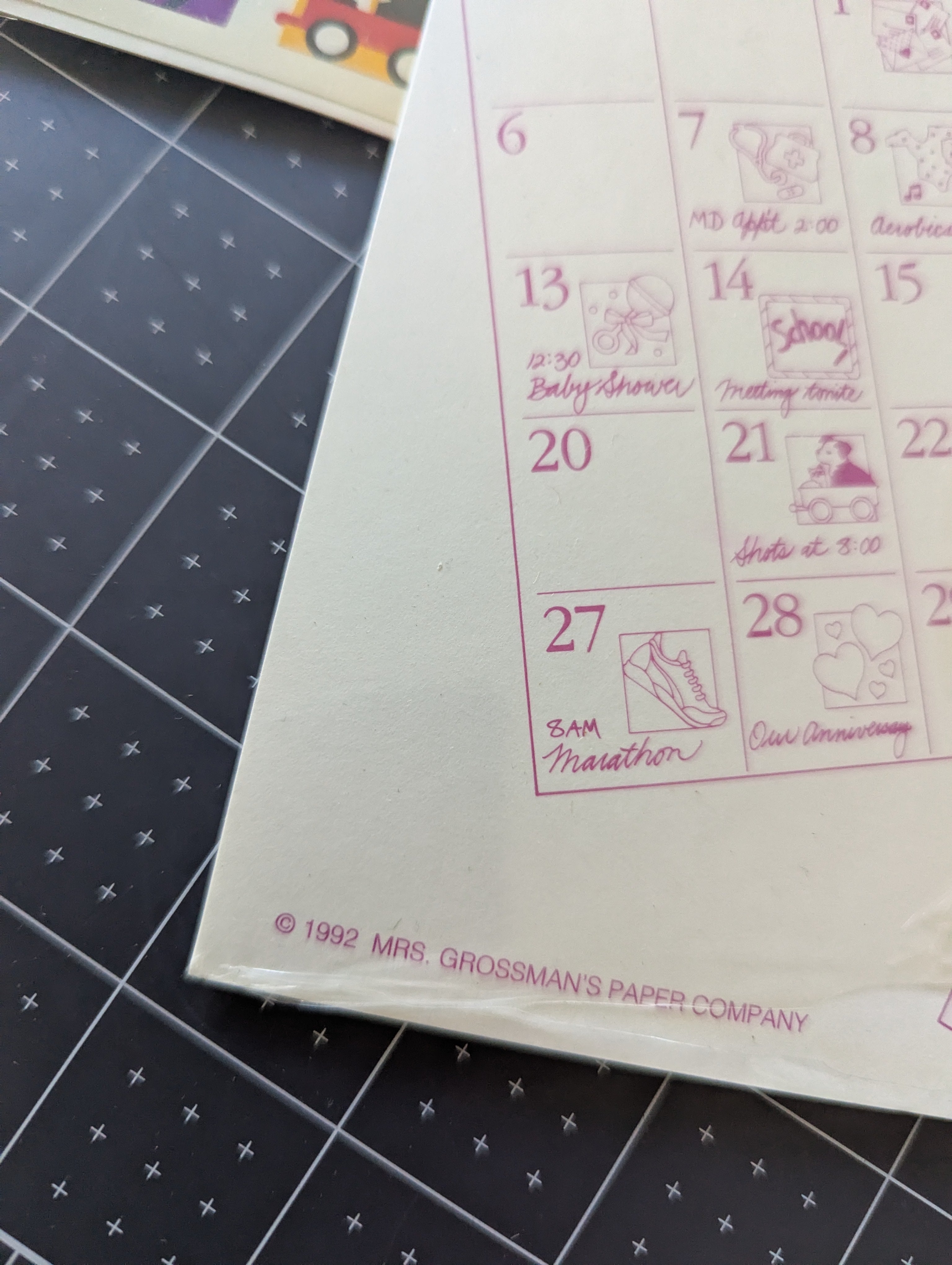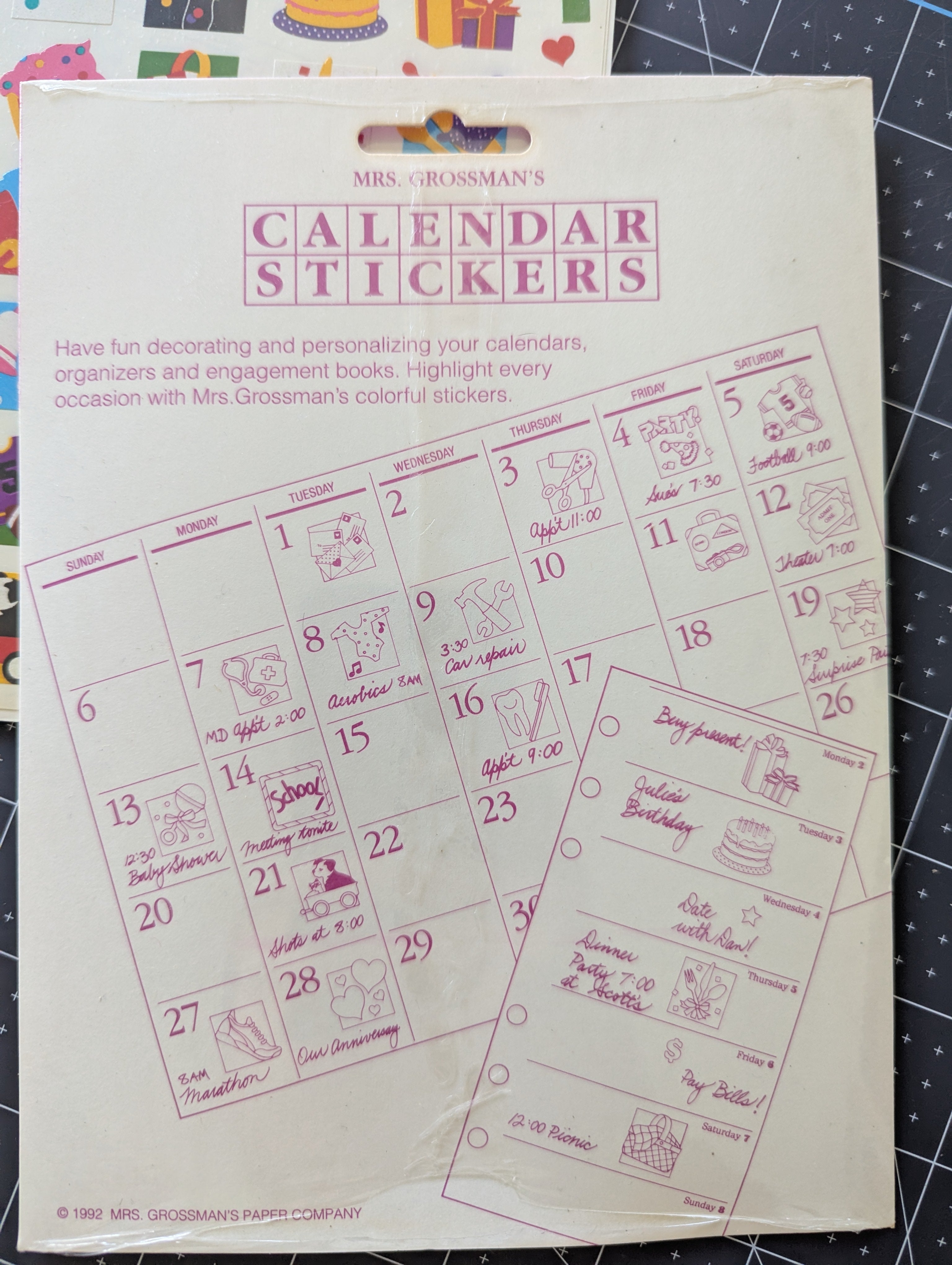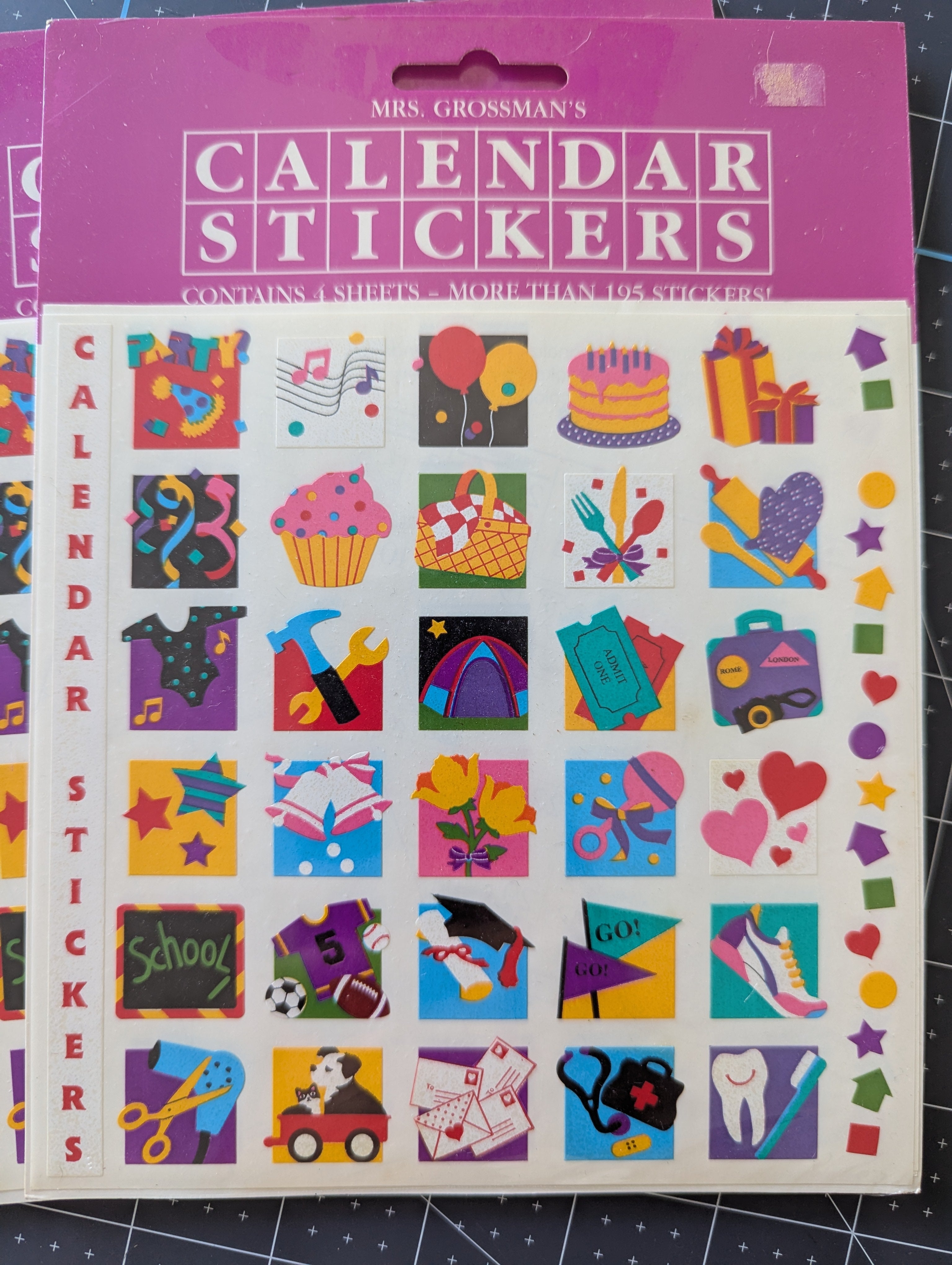 Mrs. Grossman's Calendar Stickers (1992) Unopened, Each Pack Sold Separately