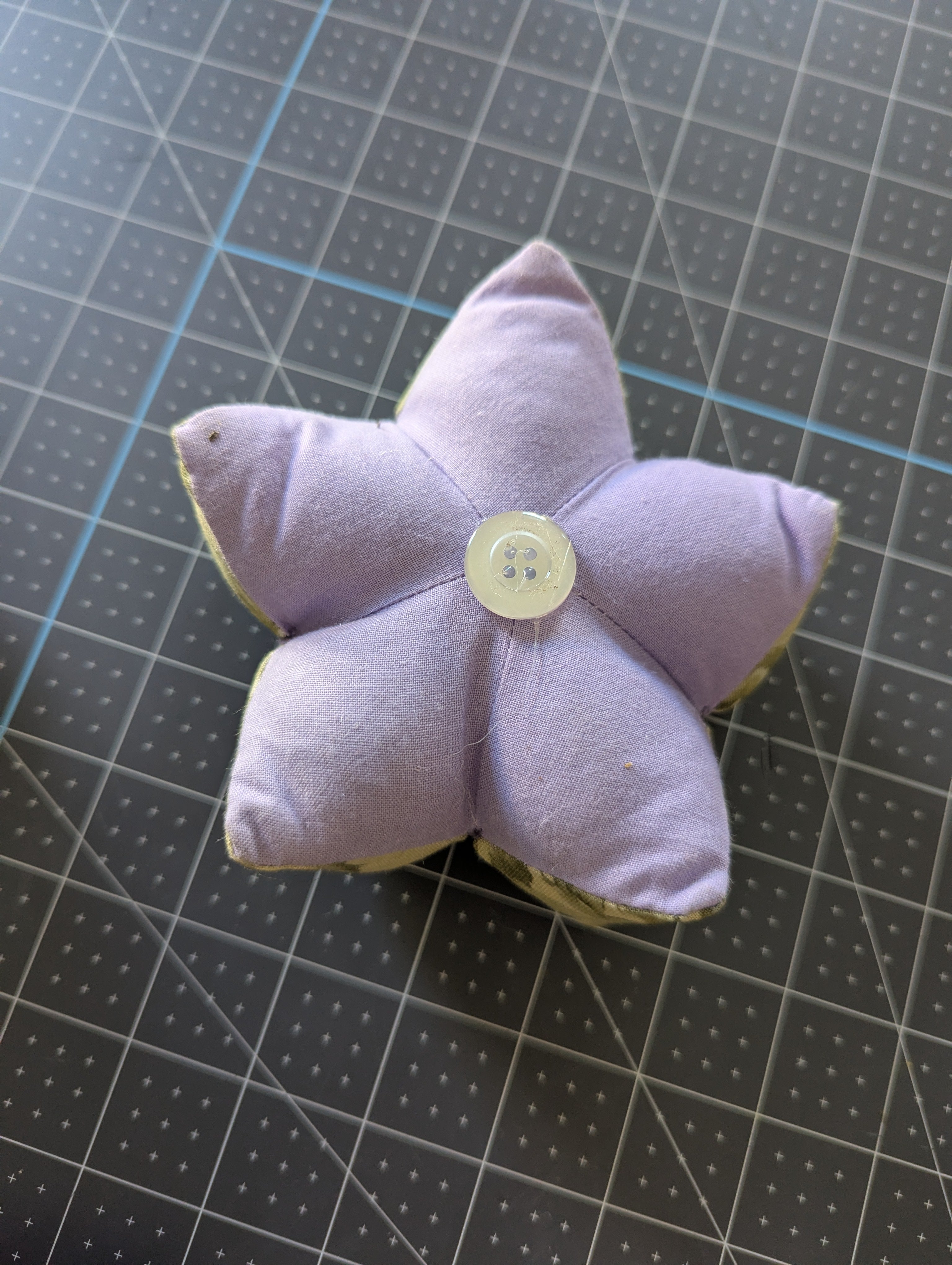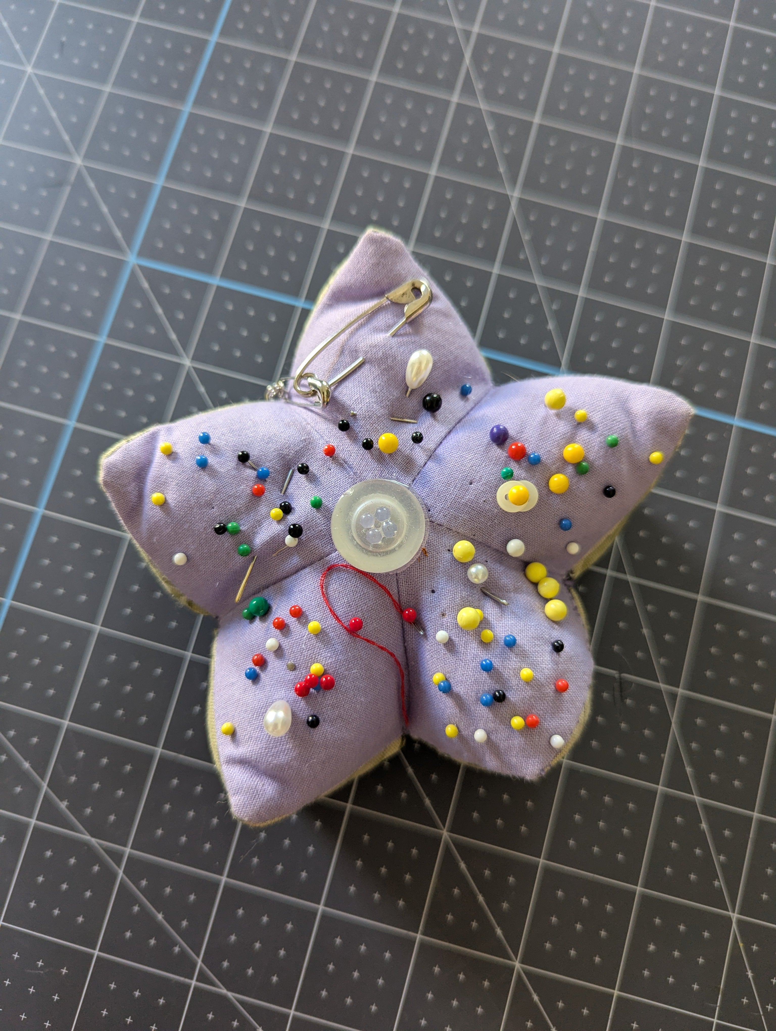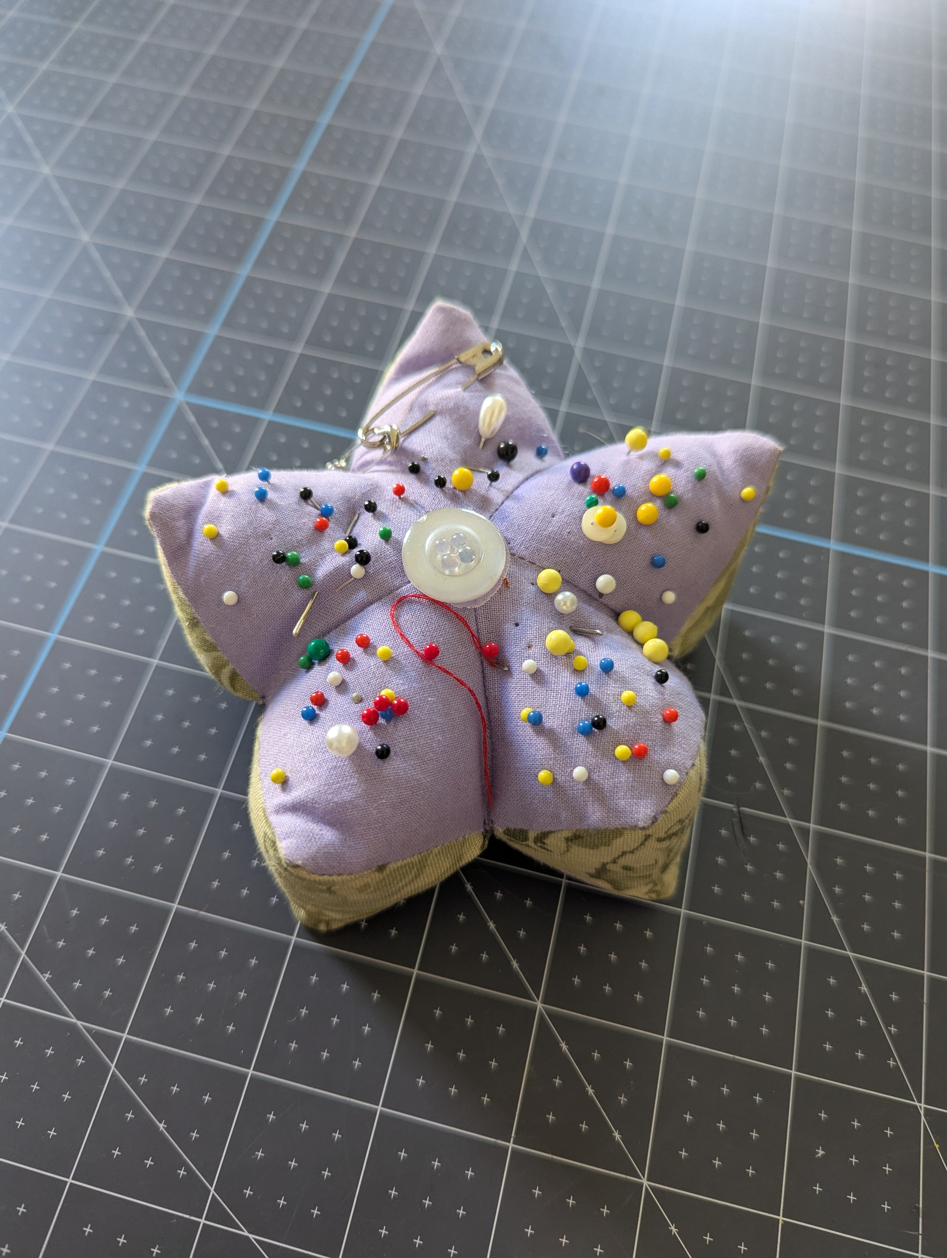 A cute, handmade star pin cushion in good condition. You'll receive it with all pins and needles. Purchase with caution pins are sharp.