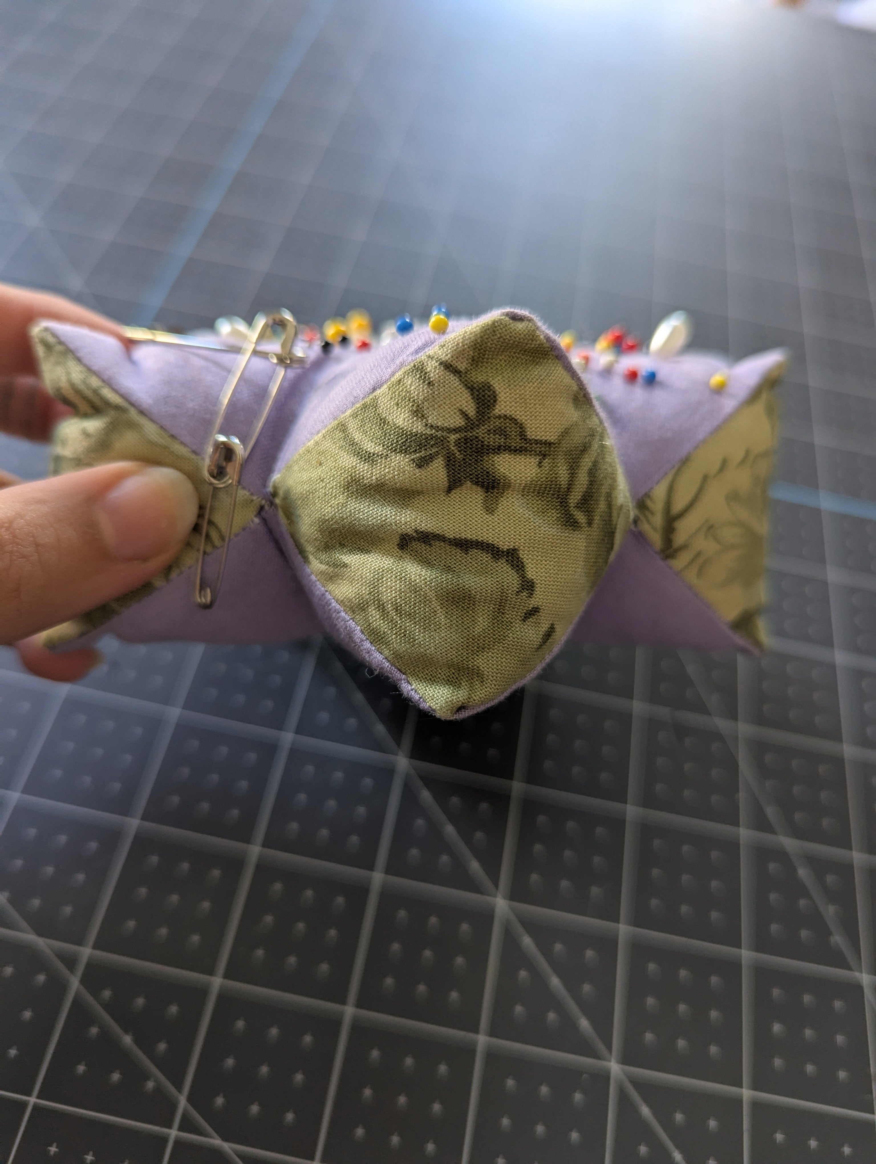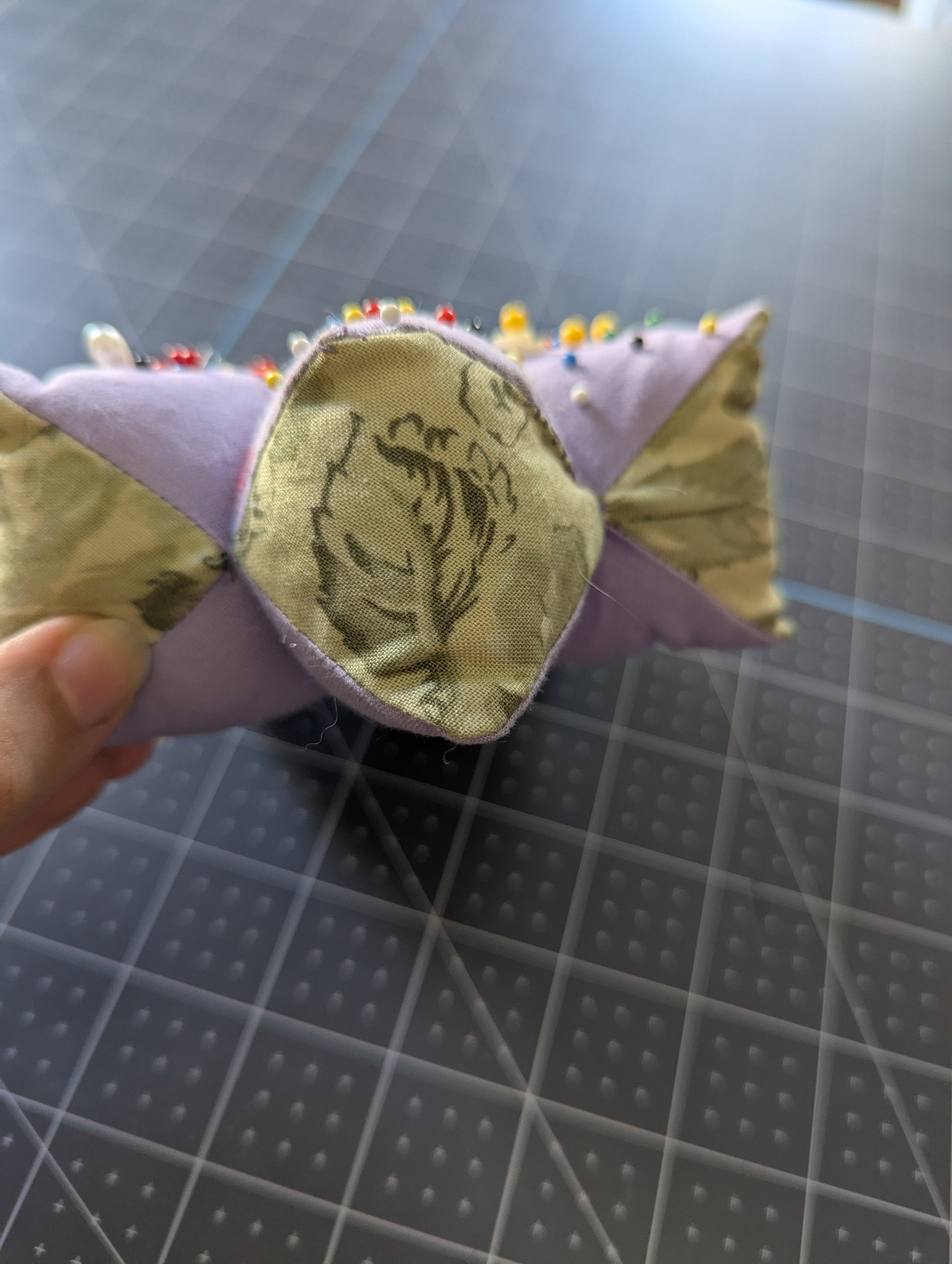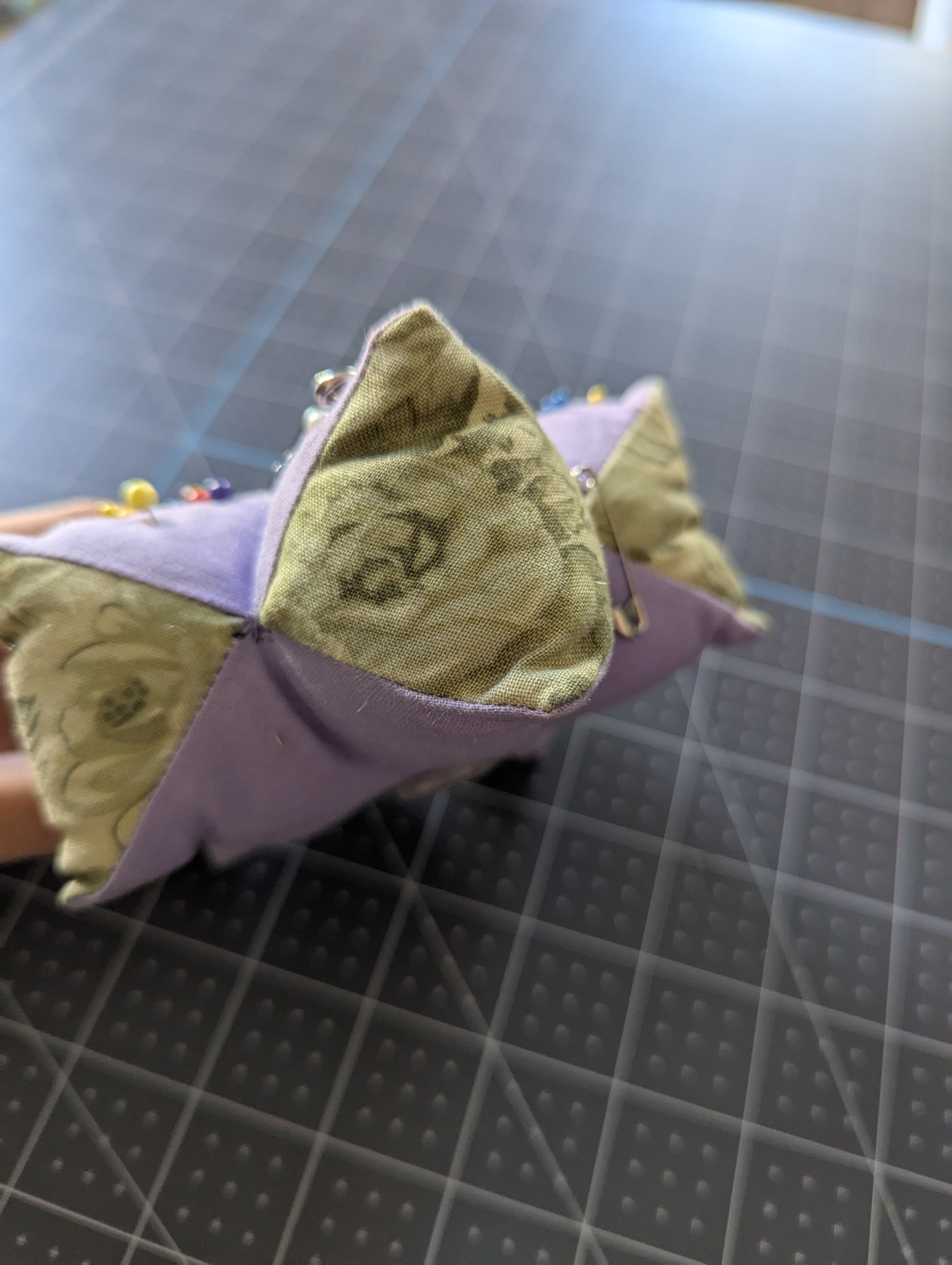 A cute, handmade star pin cushion in good condition. You'll receive it with all pins and needles. Purchase with caution pins are sharp.