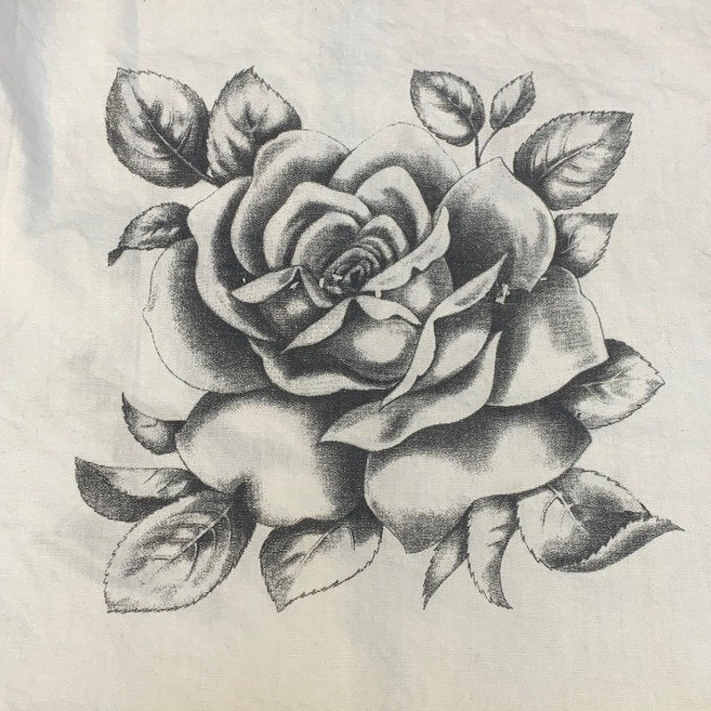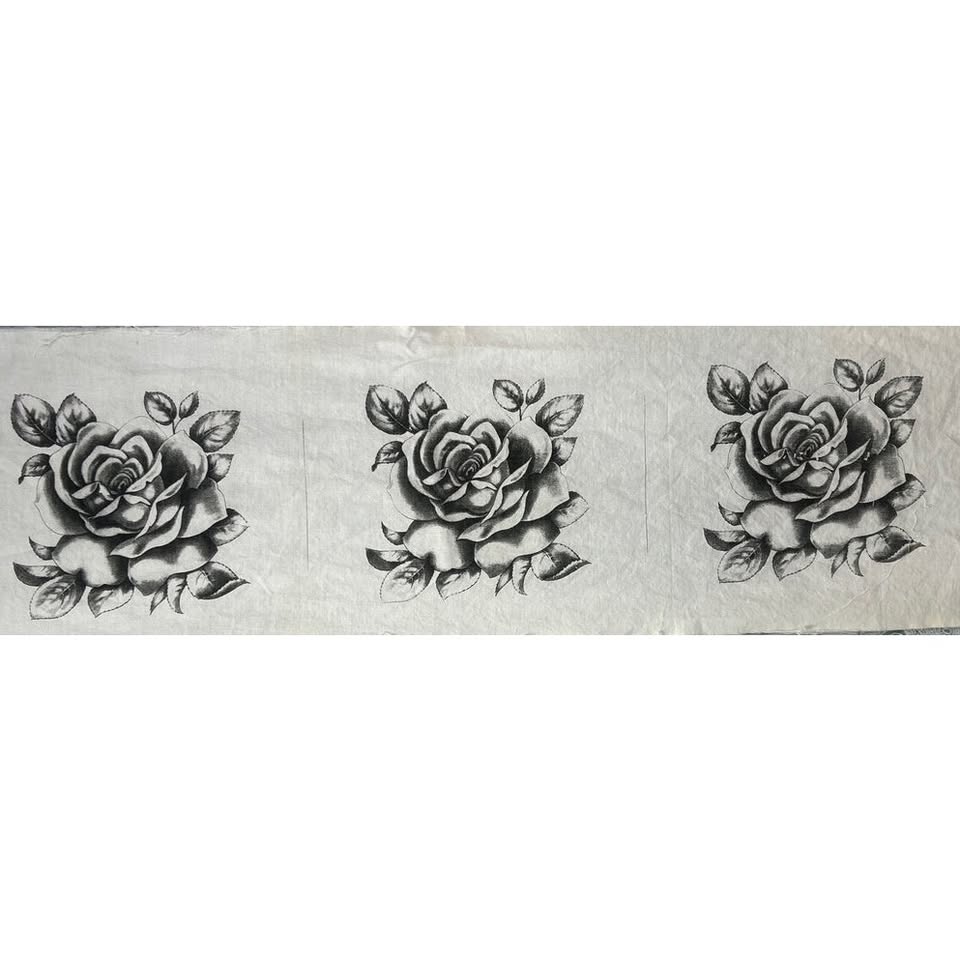 1/4 yd Black White Flower Rose Cotton Blend Fabric Panels Lot of 3
