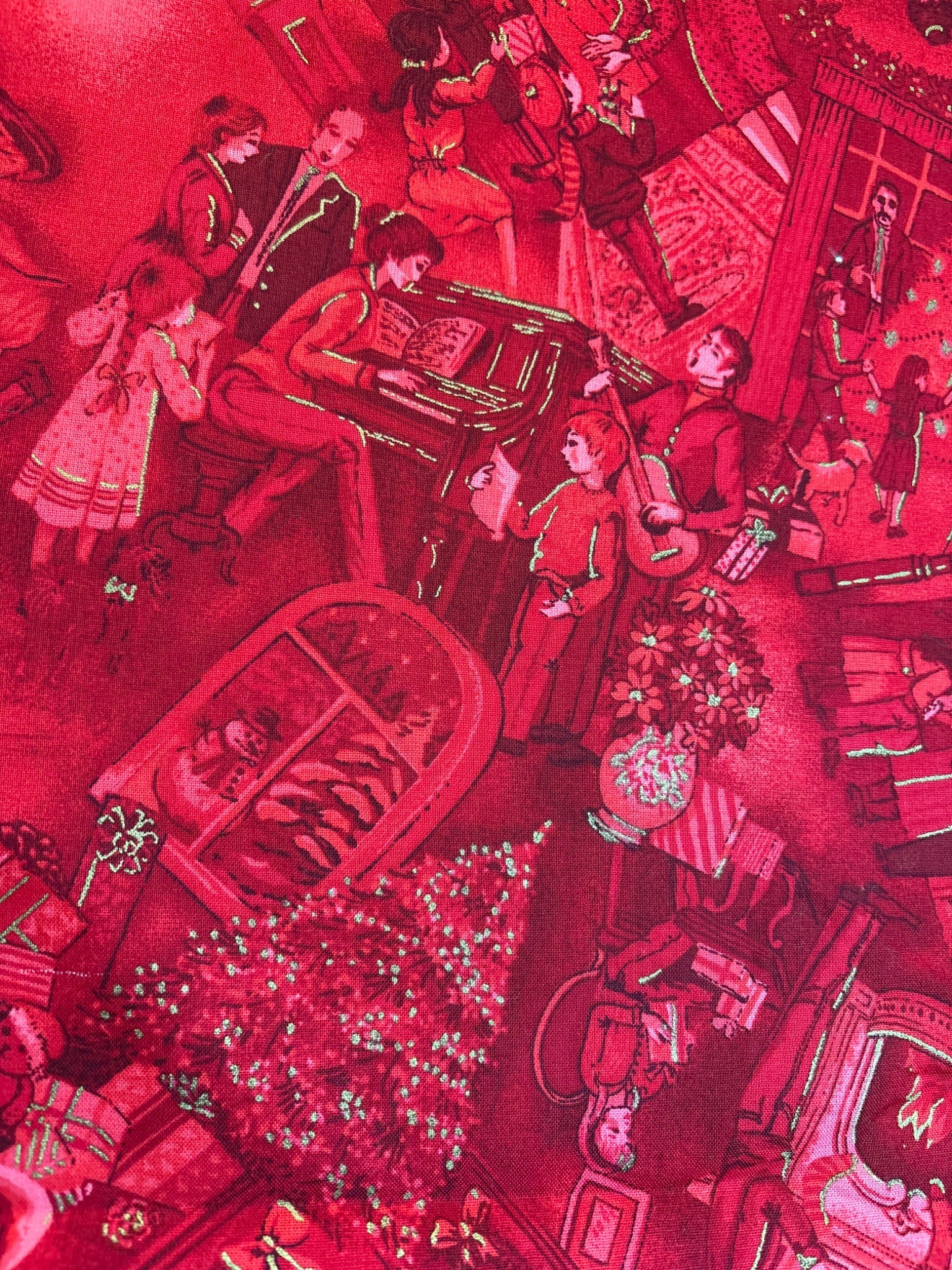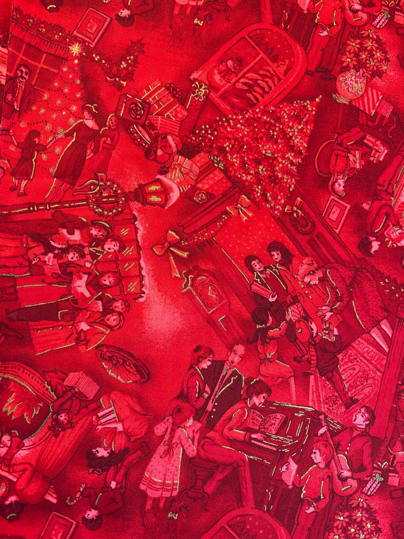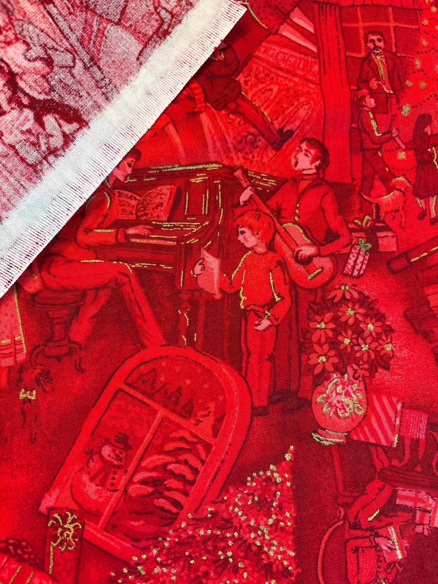 1.5 yds x 44"w quilt weight cotton, unbranded but excellent quality and new condition. Looks like Vintage Christmas card.