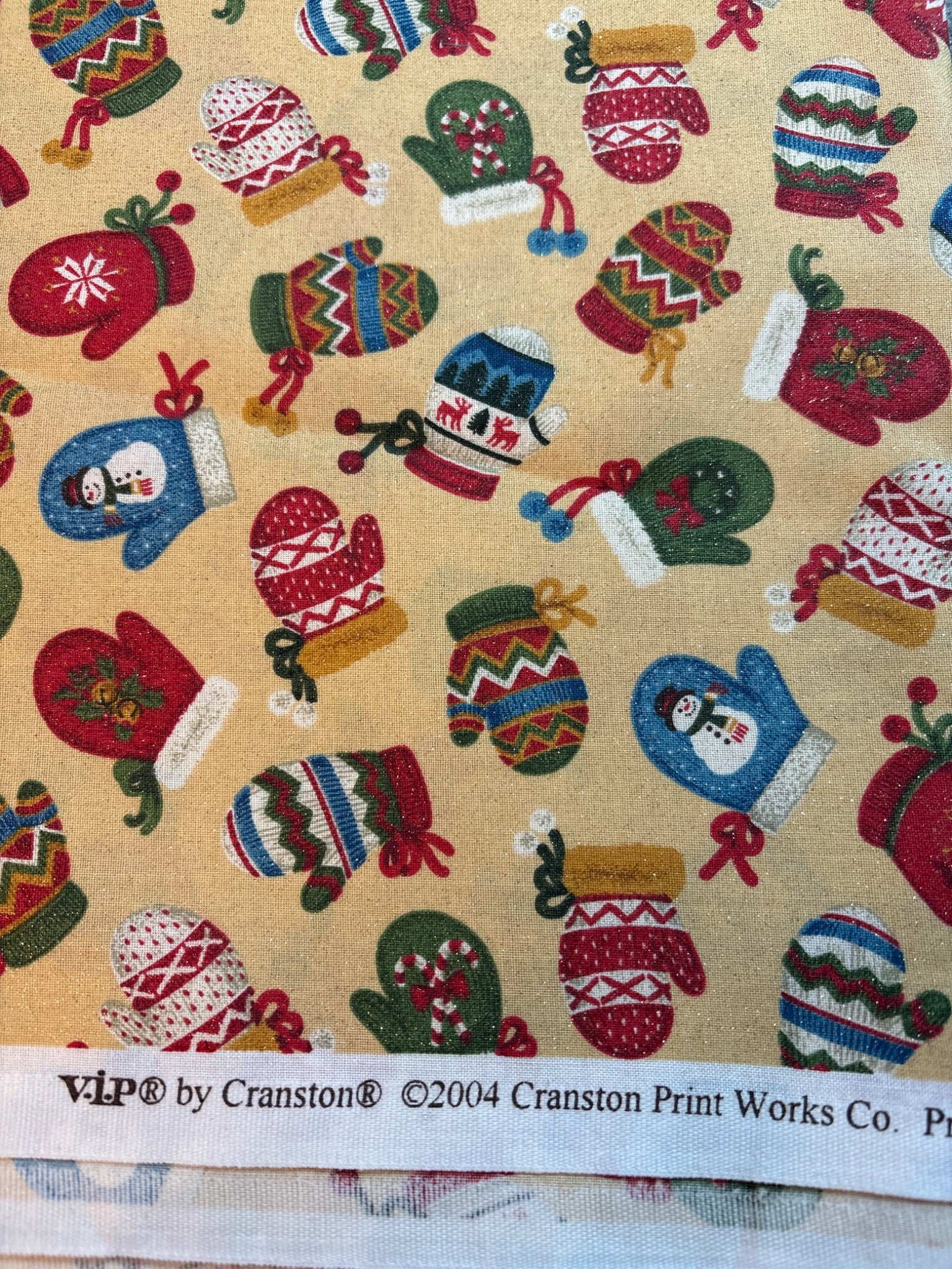 1.5 yds Cranston Christmas winter mittens fabric glitter