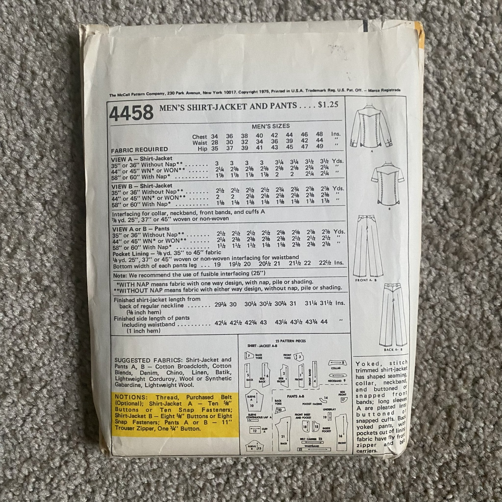 1975 ~ McCall's #4458 ~ Men's Shirt-Jacket and Pants ~ Chest 48 ~ Leisure Suit