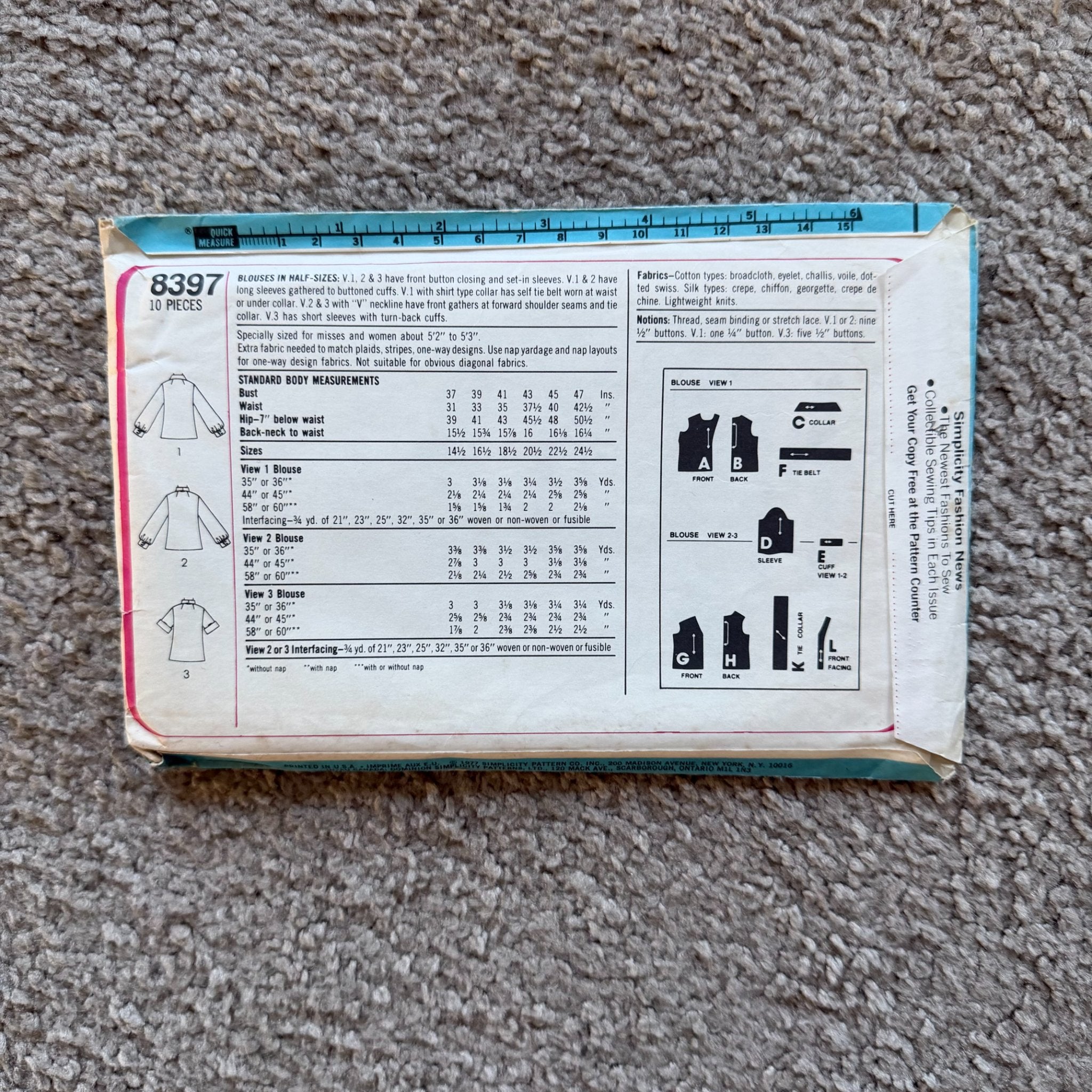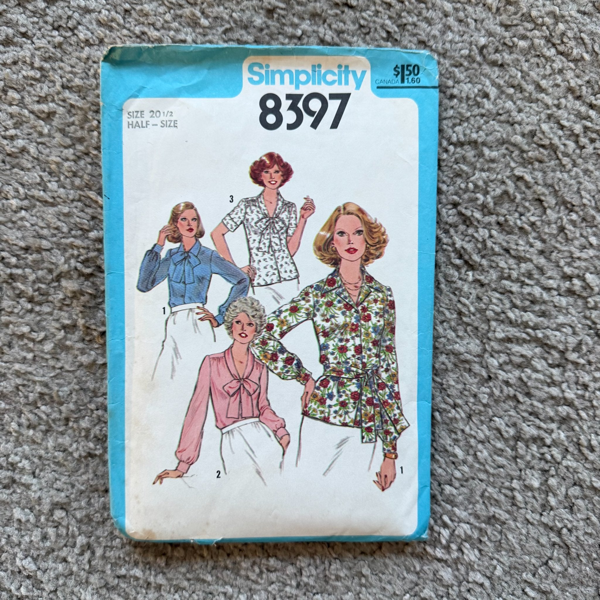 1977 ~ Simplicity #8397 ~ Blouses in Half-Sizes ~ Size 20.5 ~ Bust 43"