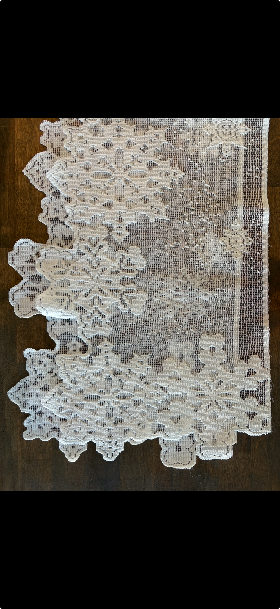 2 Holiday Inspired Long White Lace Runners - ReFabrics
