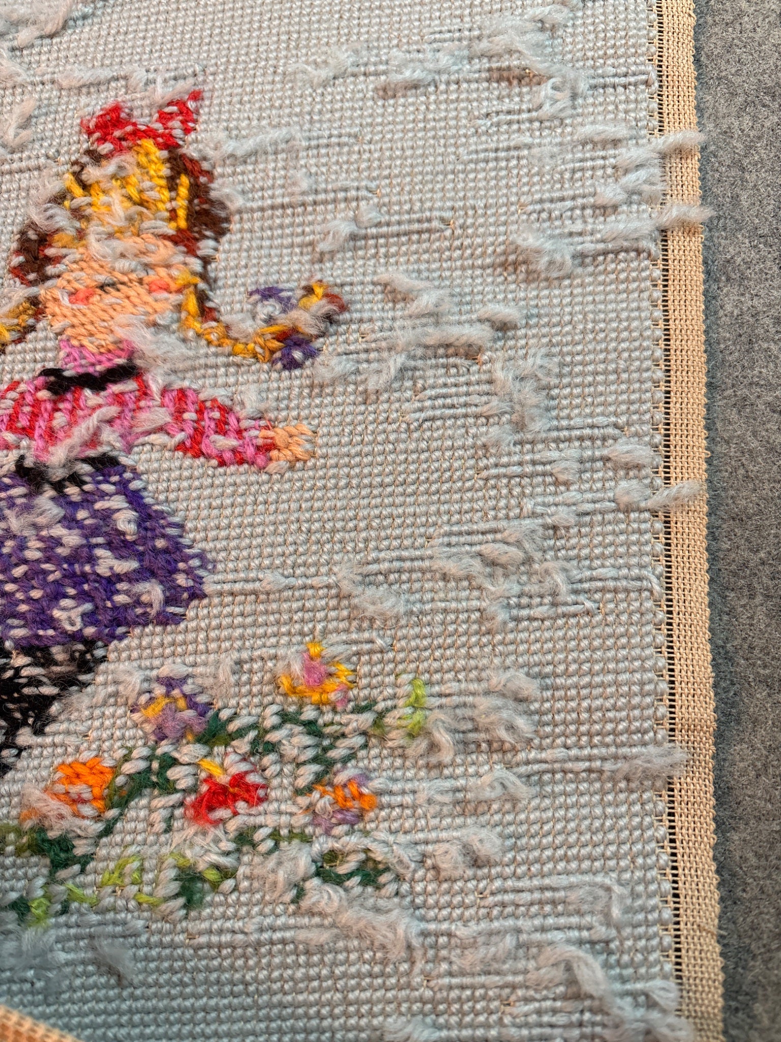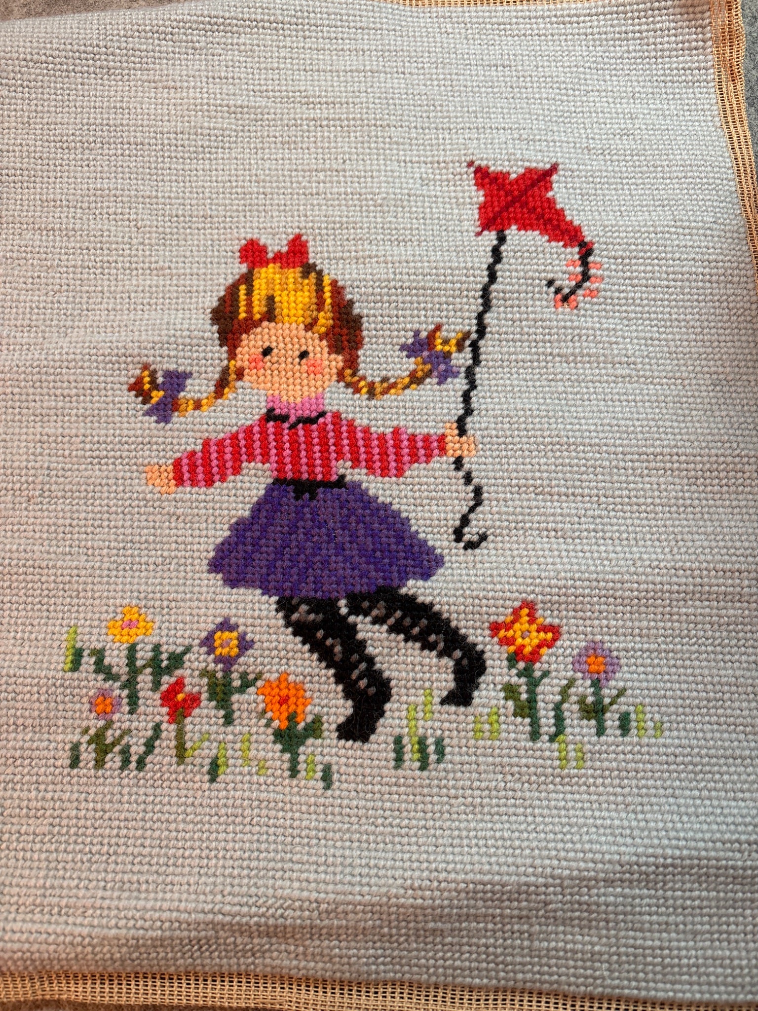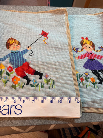 2 wool needlepoint boy girl ea 12” x 14” vintage retro