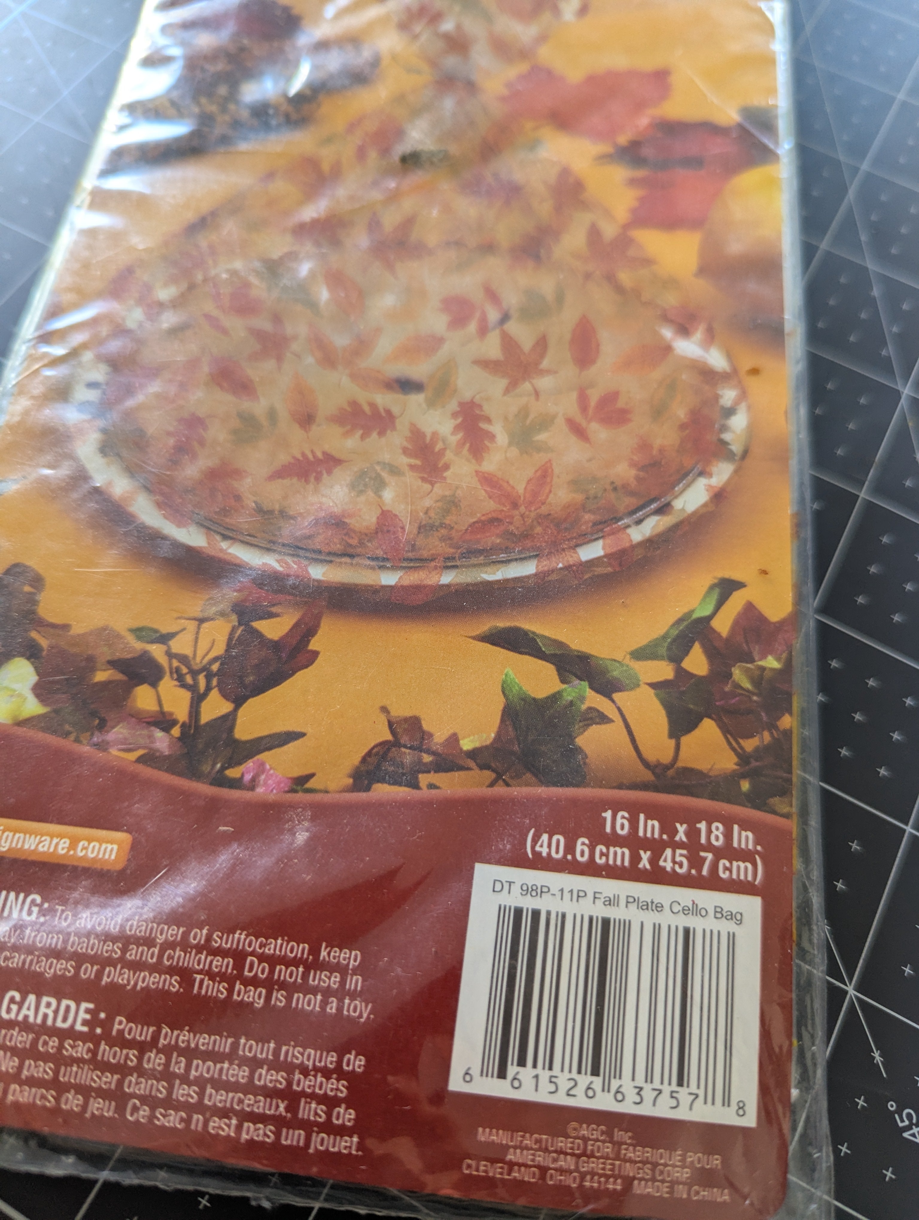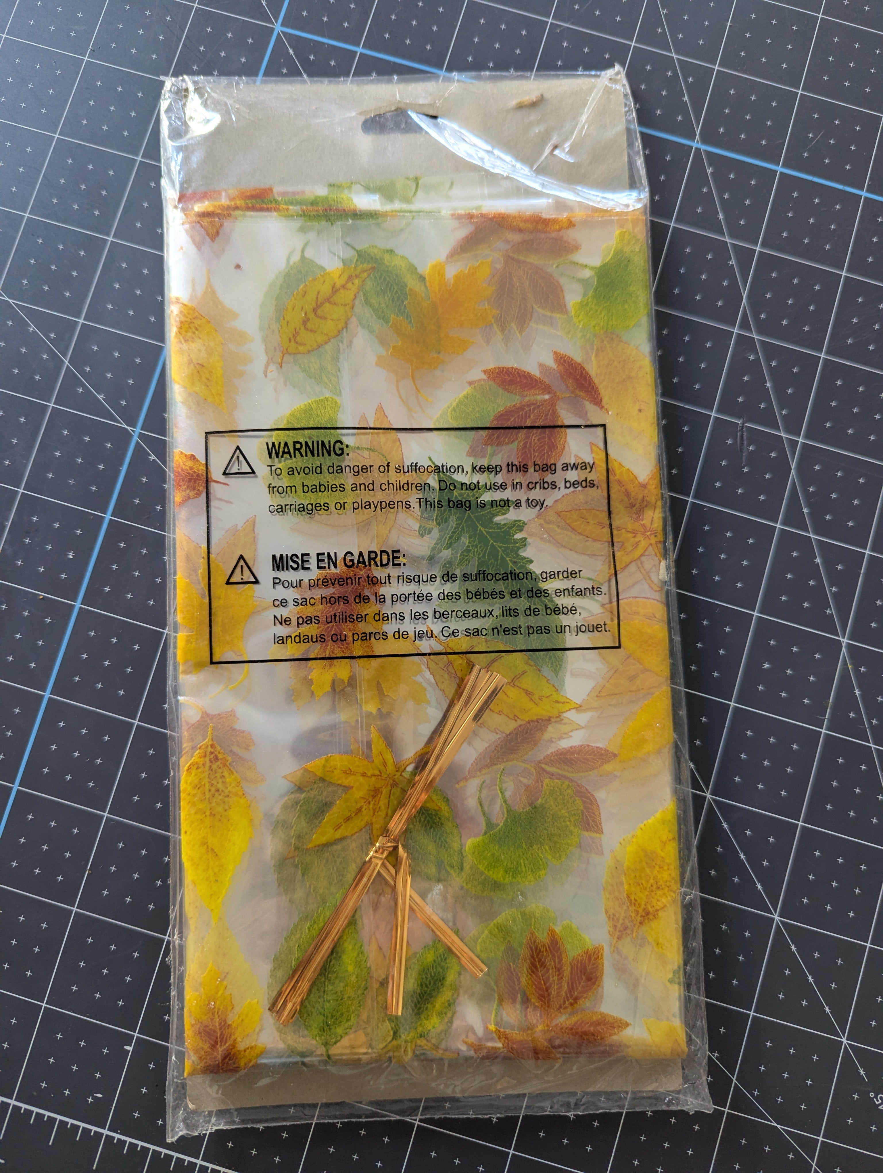 6 Decorative Cellophane Bags - Fall Leaves - 16 x 18-inches