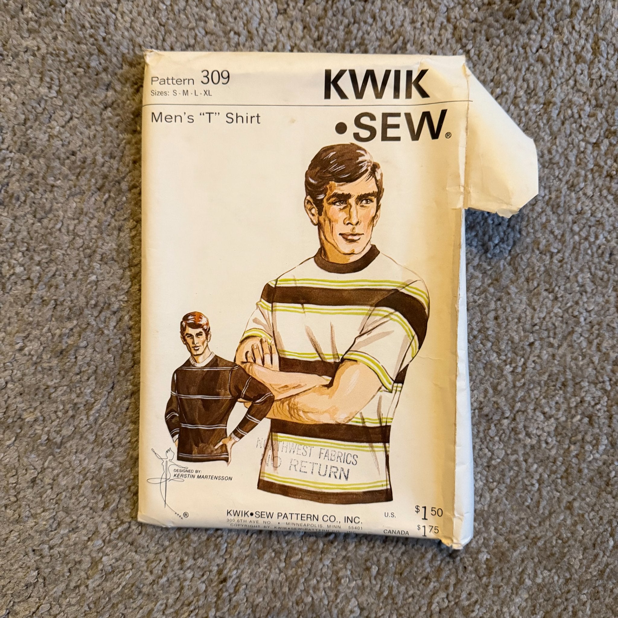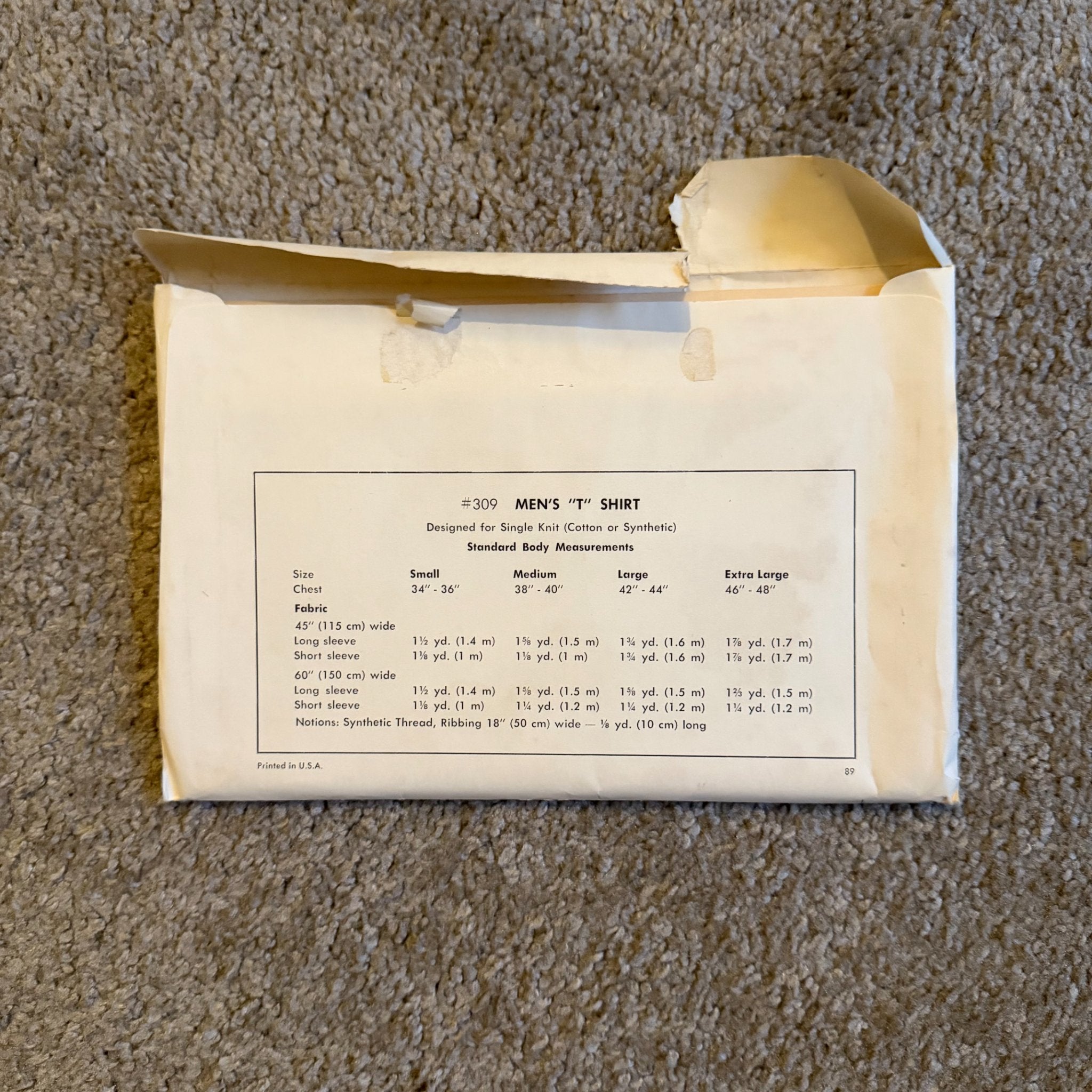 70s ~ Kwik Sew #309 ~ Men's T Shirt ~ Chest 34"-48" ~ Knit or Stretch Pattern