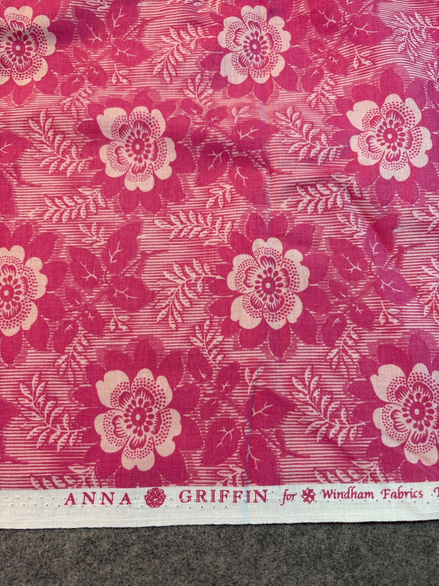 Anna Griffin pink cotton fabric remnant 17” X 118”