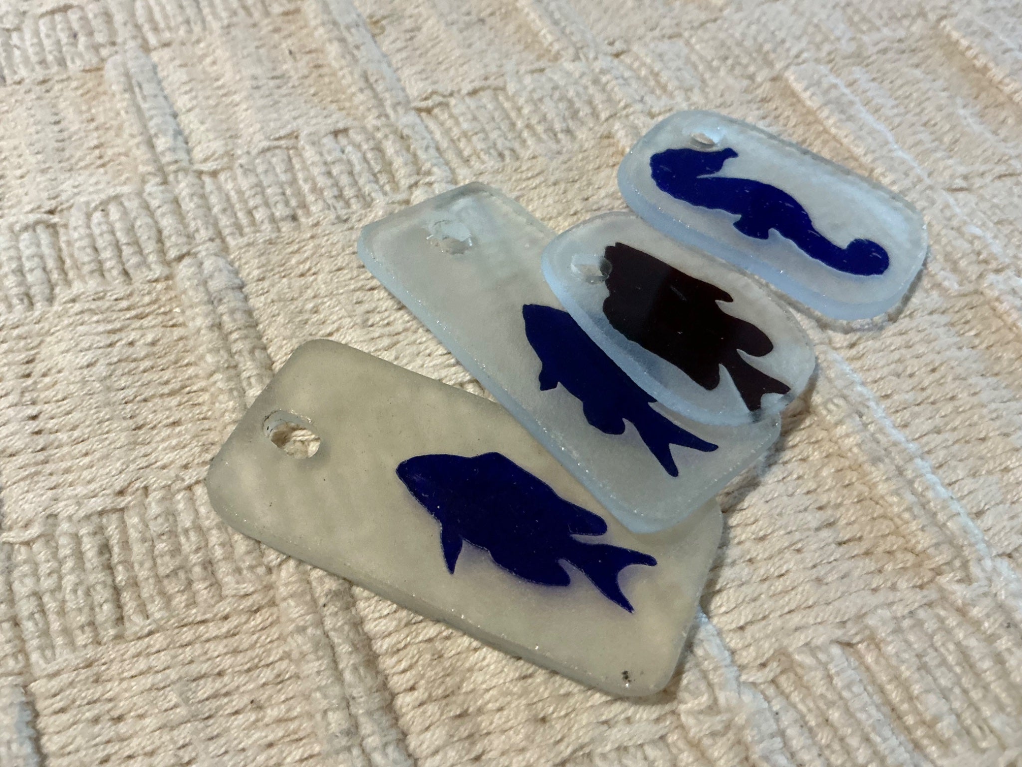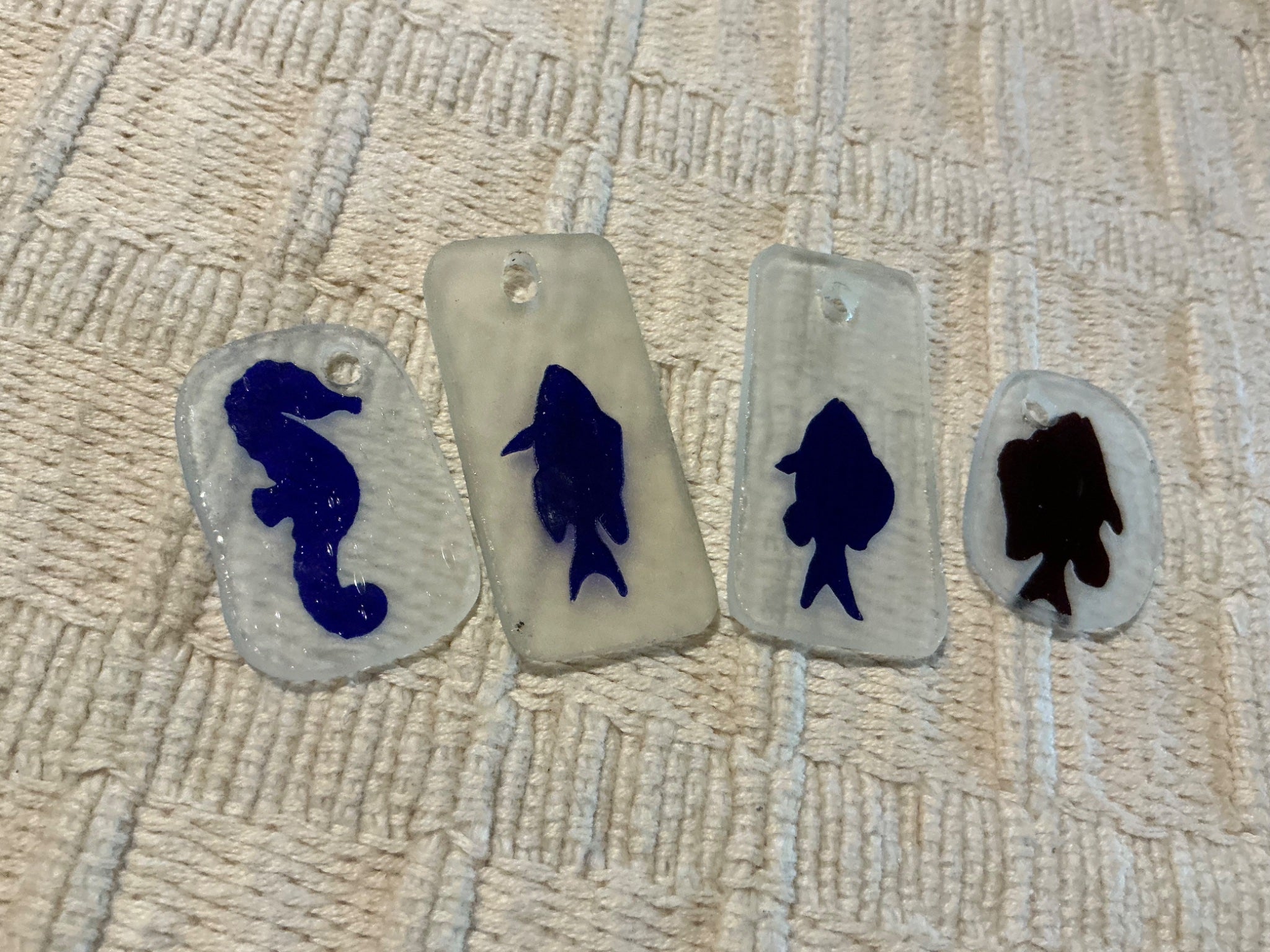 The focal pieces here include three (3) fish, one seahorse pendants. All top drilled.