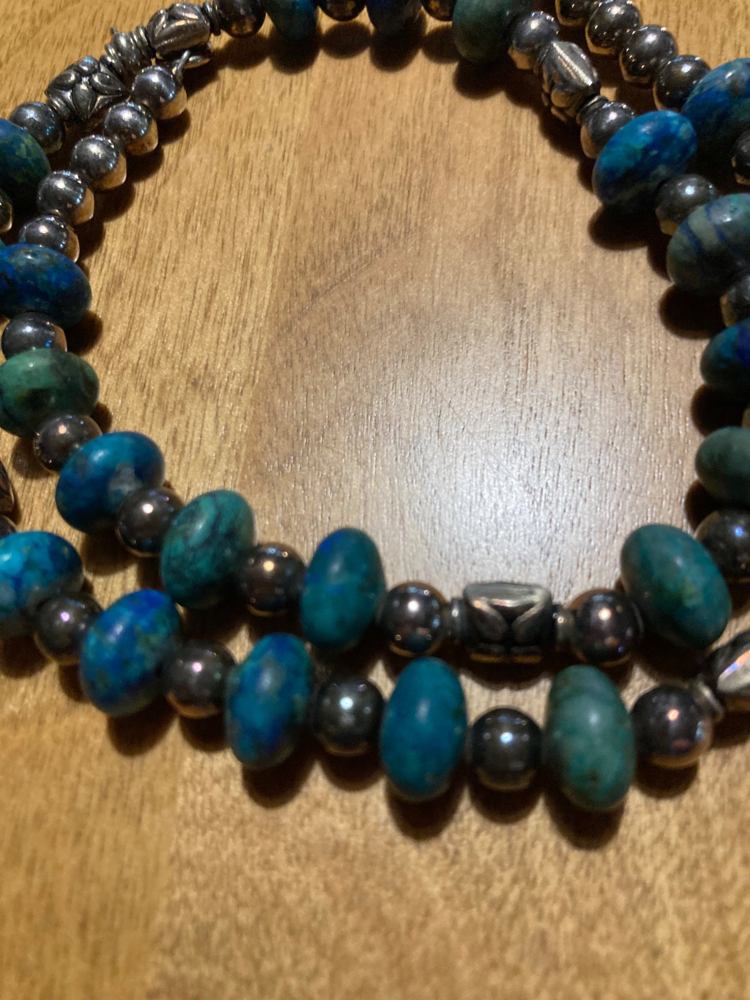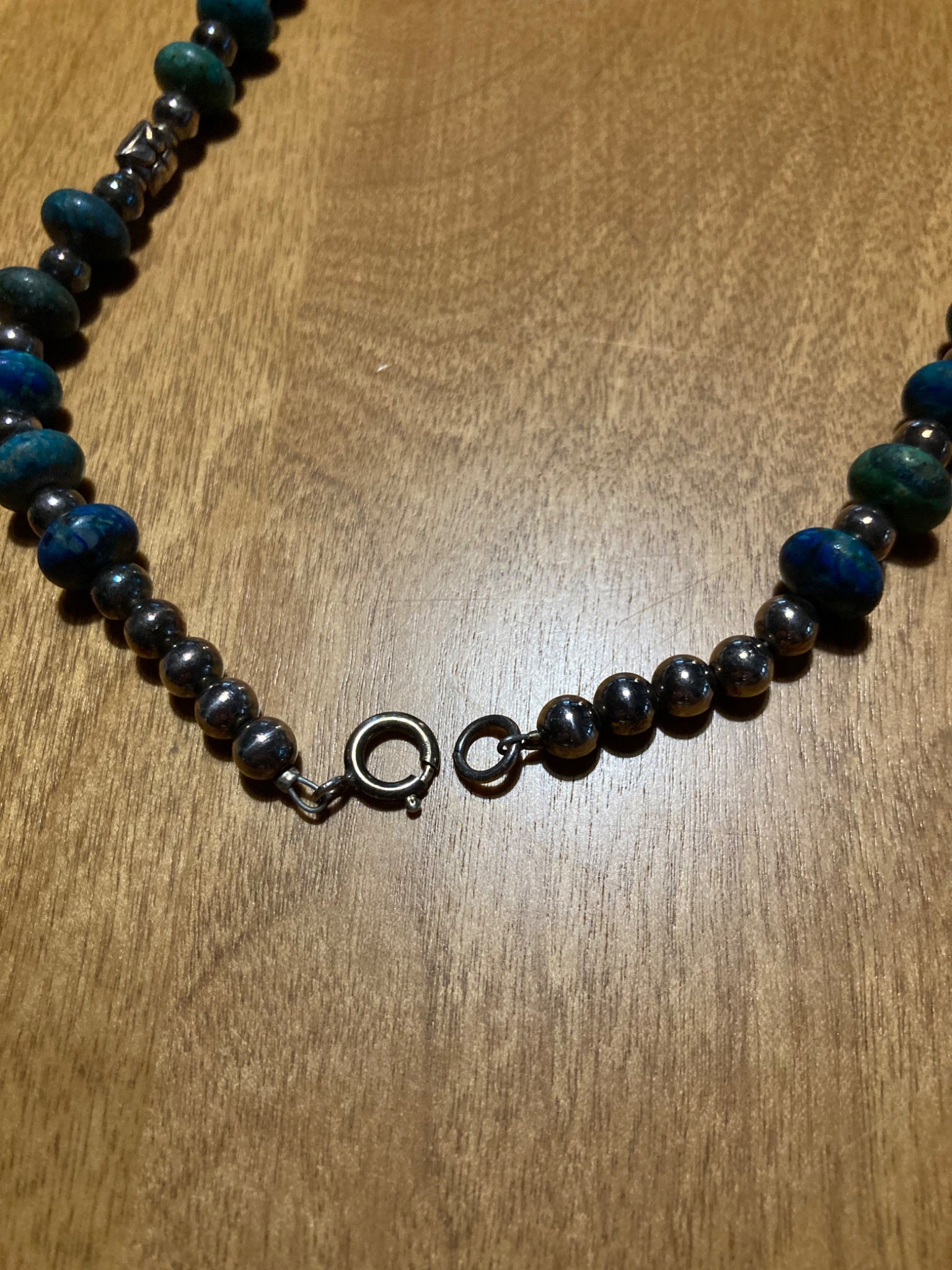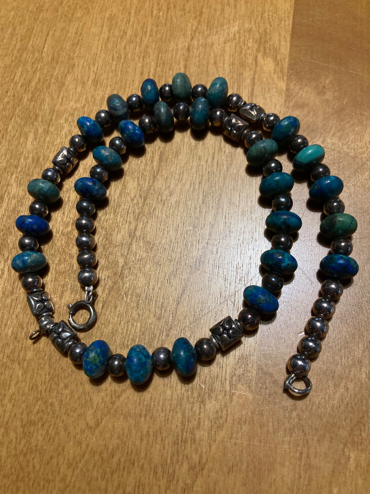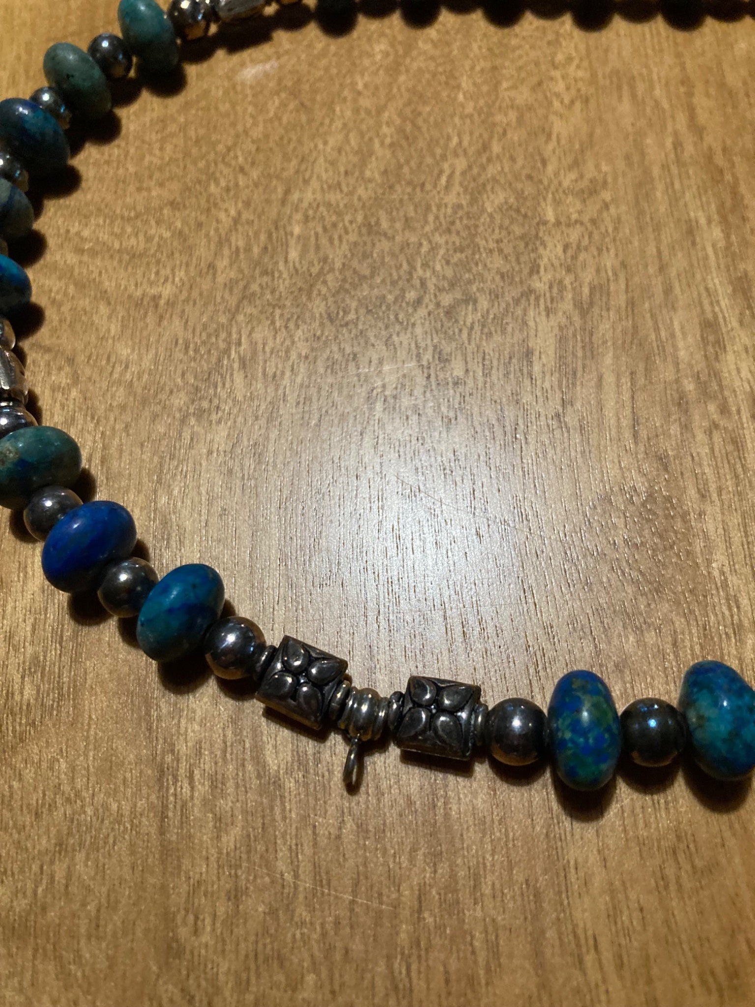 Artisan Made Sterling Silver and Azurite Rondelle Necklace #6696