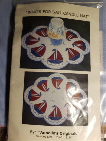 Boats for Sail Candle Mat by Annelle's Originals, finished size 15 1/4 by 11 3/4. Perfect for a Christmas gift includes all the wool felt and material to make the mat