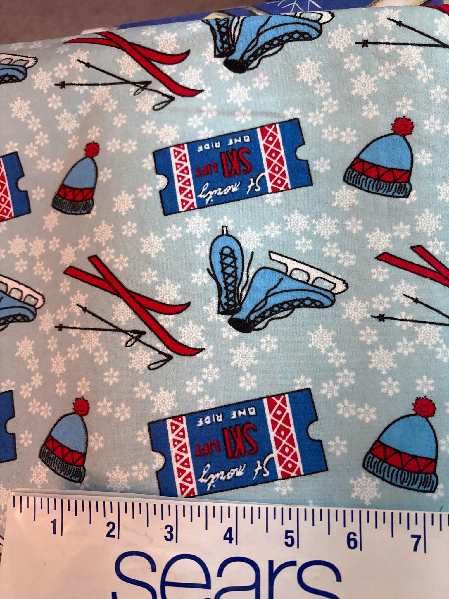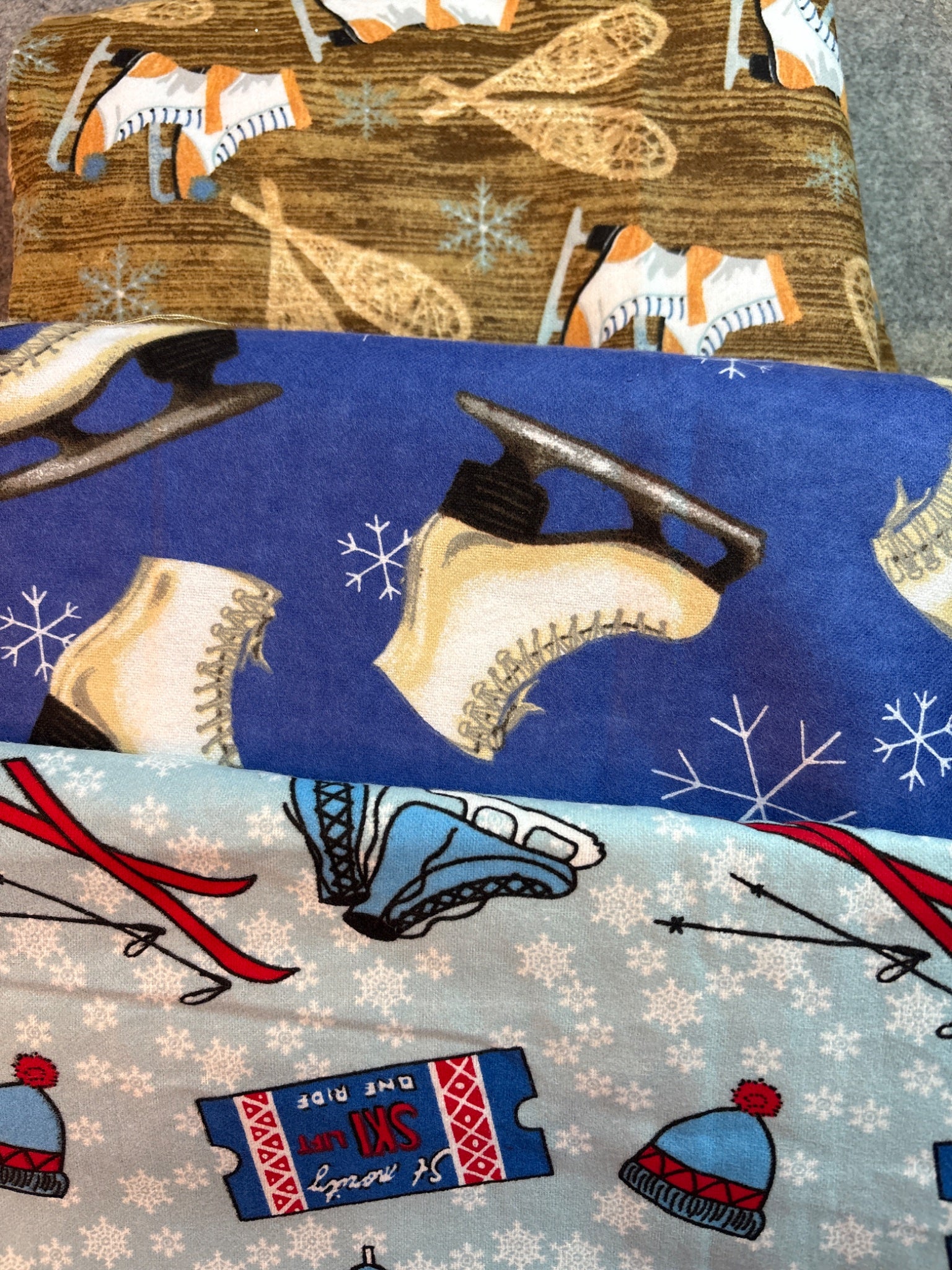 Bundle cotton flamel fabric Winter ice skating skiing theme
