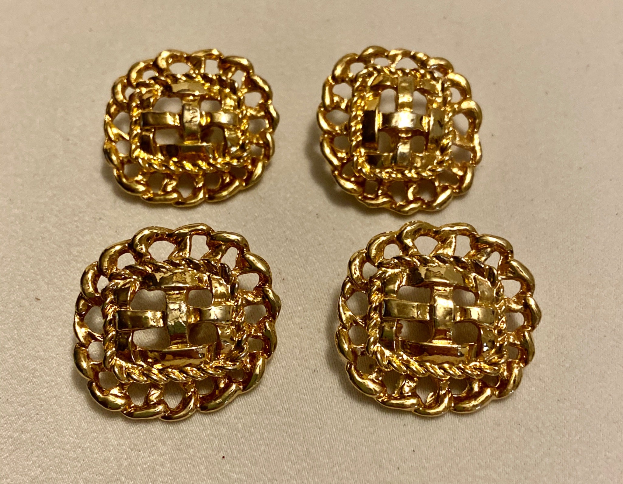 Buttons ! Golden 1” Metal Weave (4) Buttons