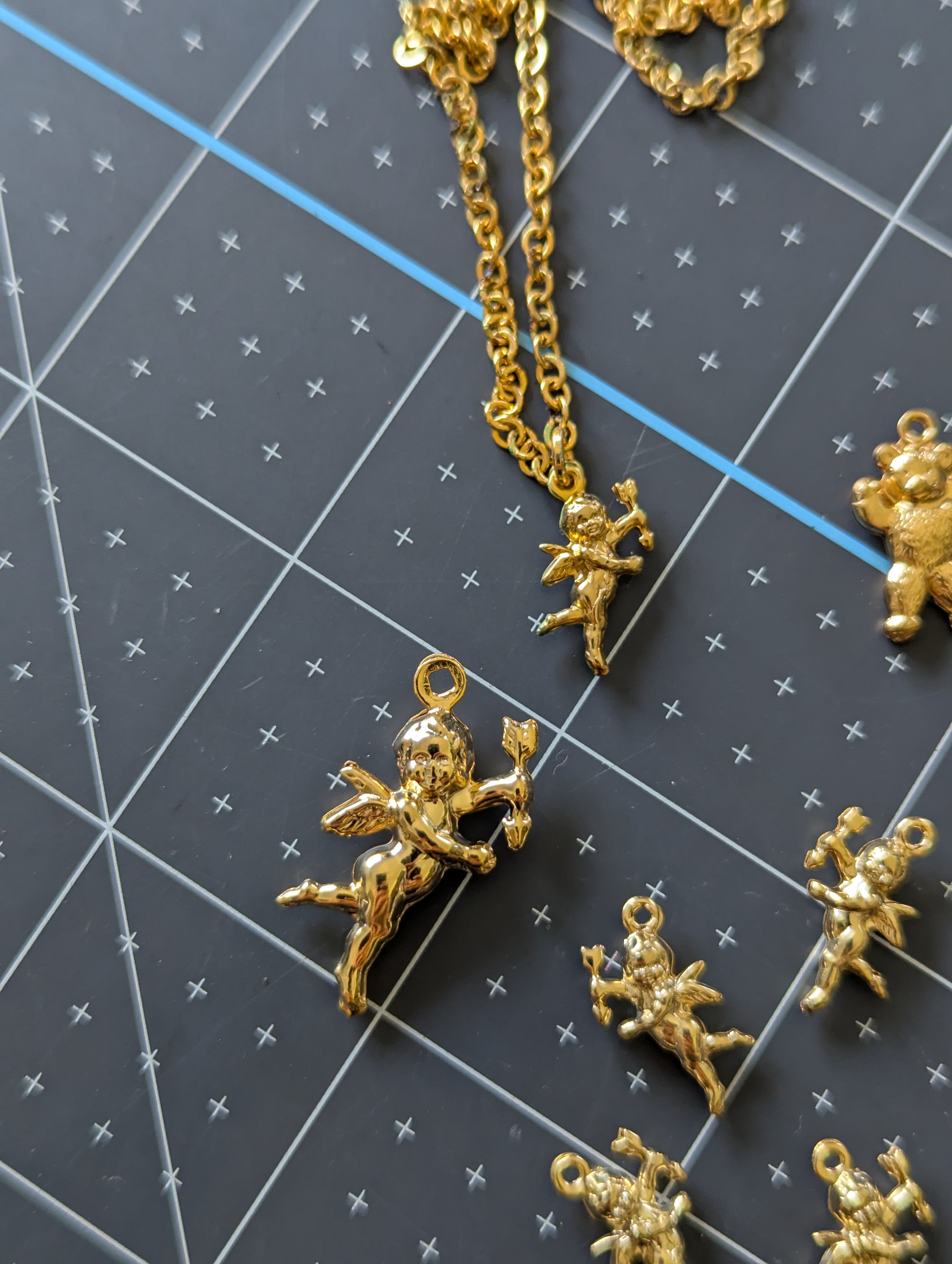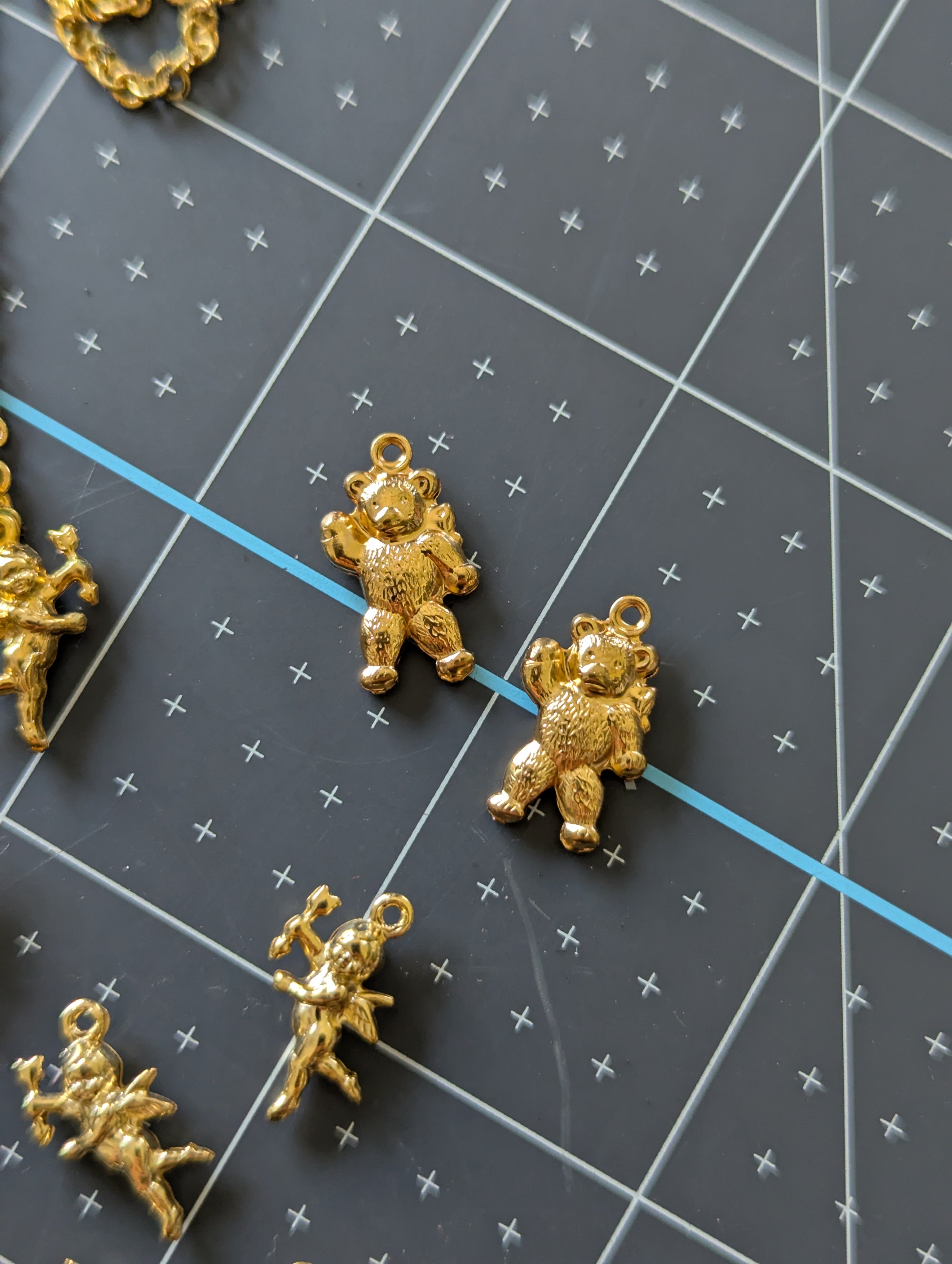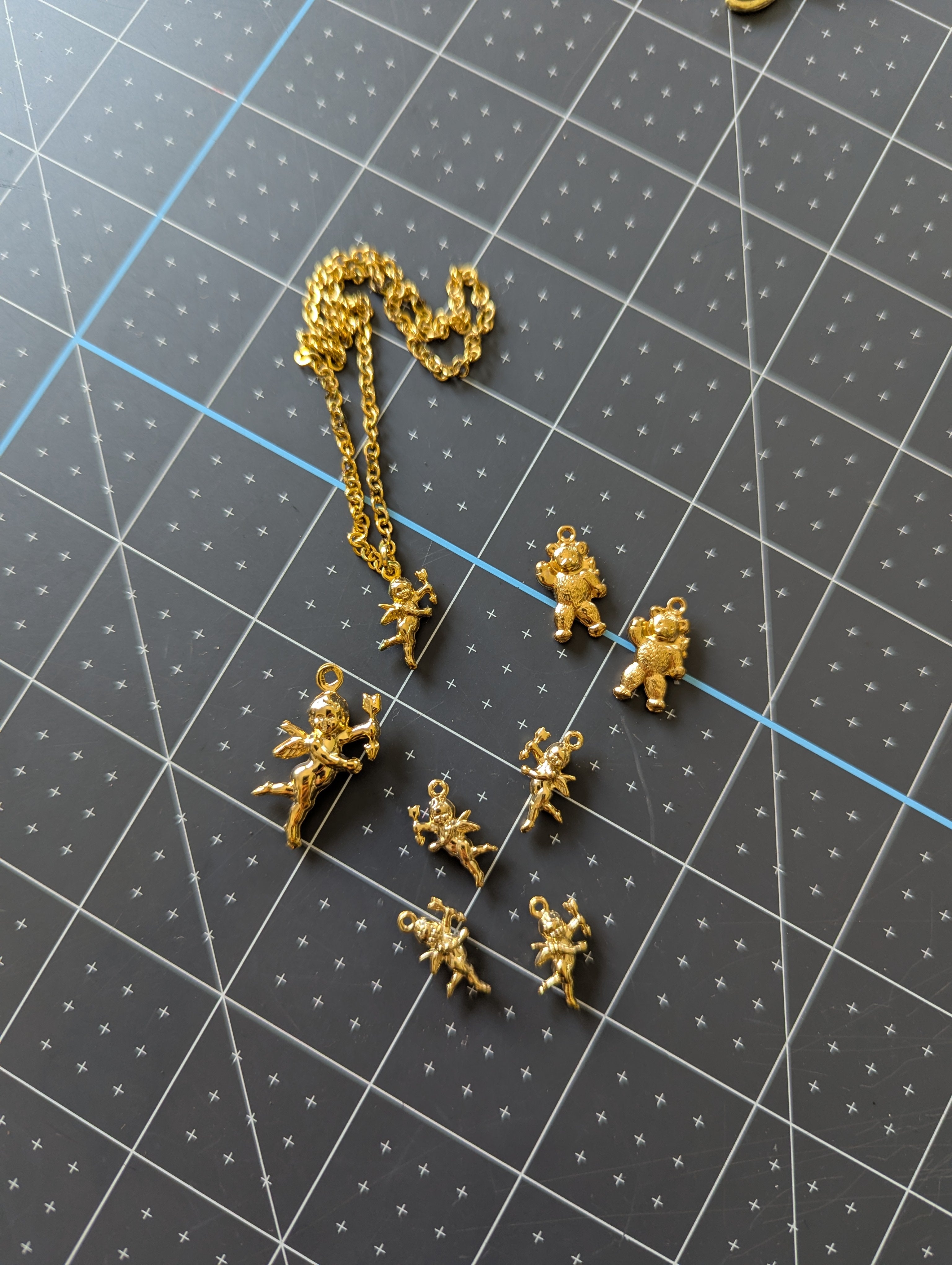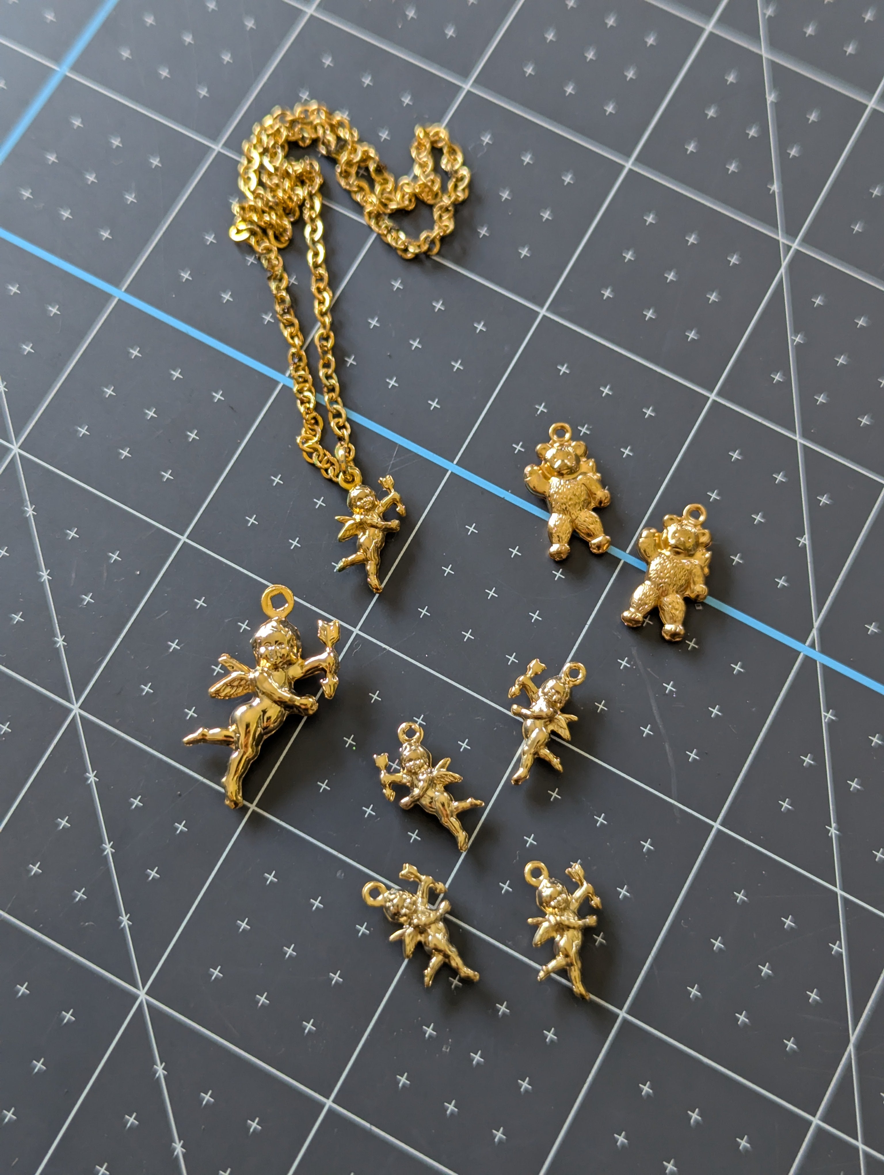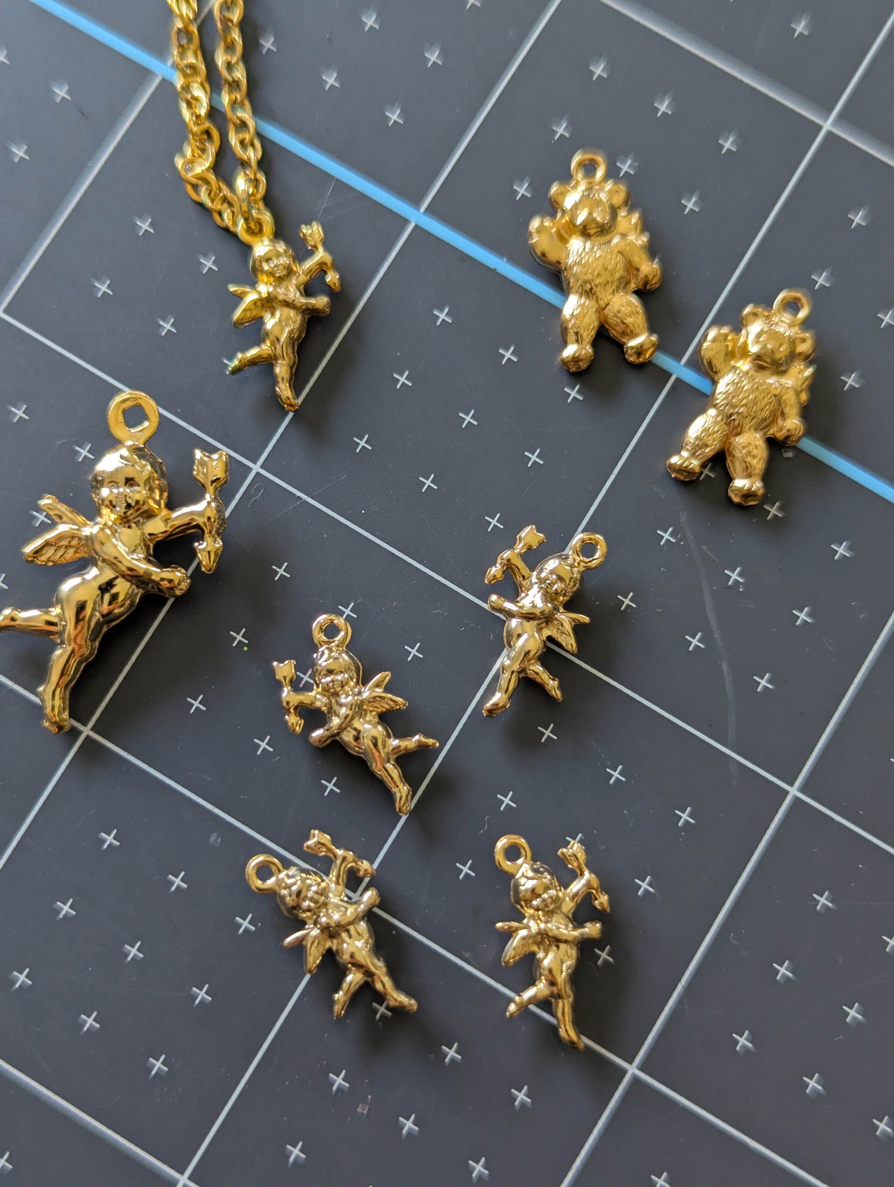 A set of cherub charms in two sizes, one large. Two bear charms are also included as pictured.