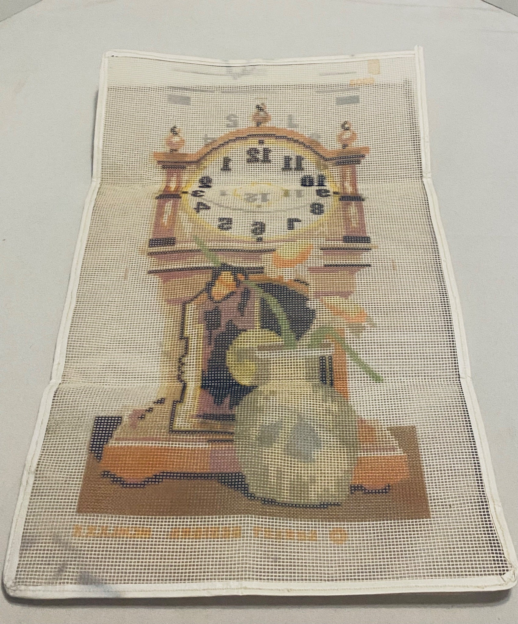 Clock Needlepoint Canvas with Yarn