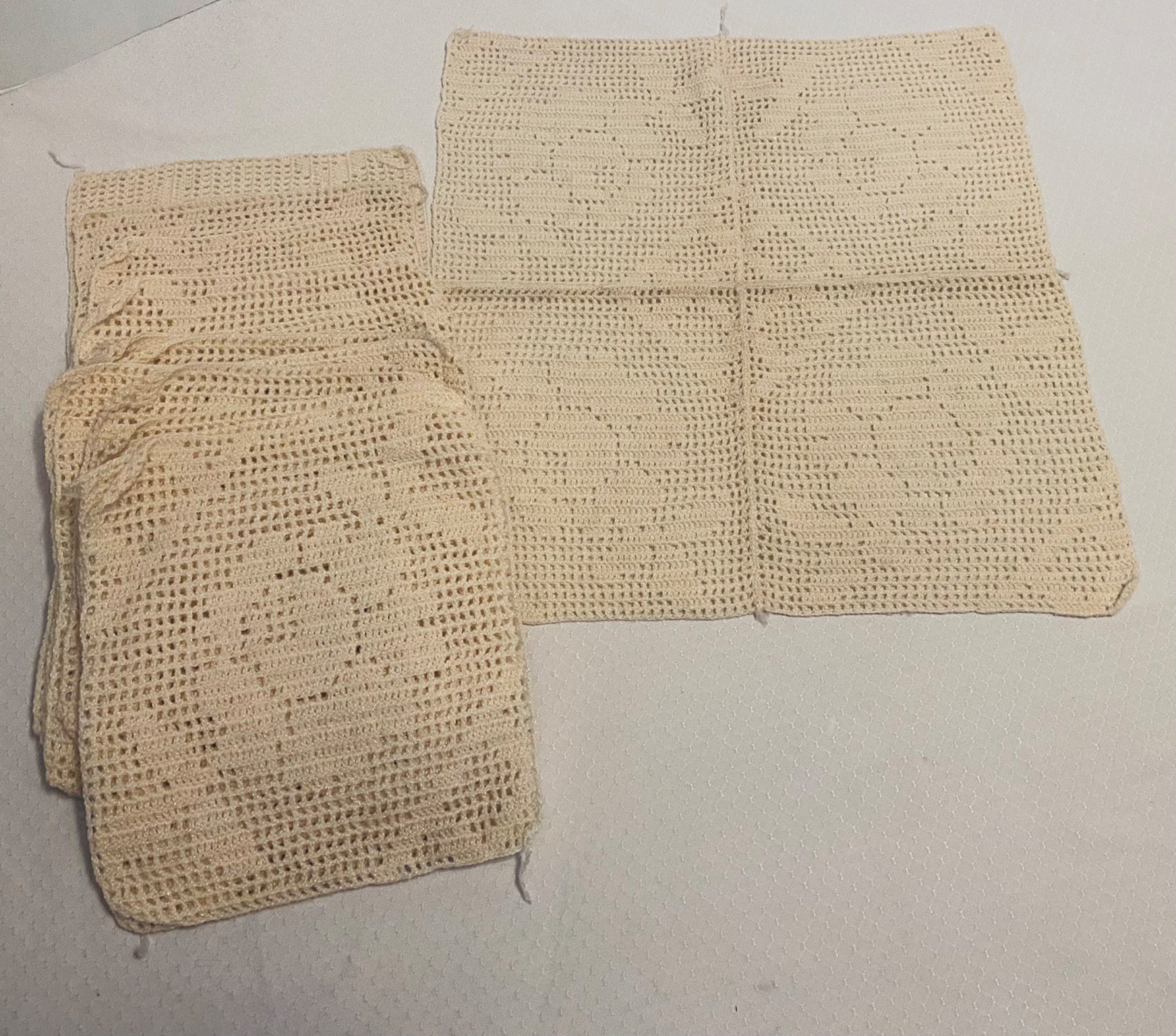 Crochet Piece Squares, 9x9ea. 16 squares, 4 squares sewn together