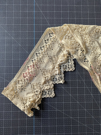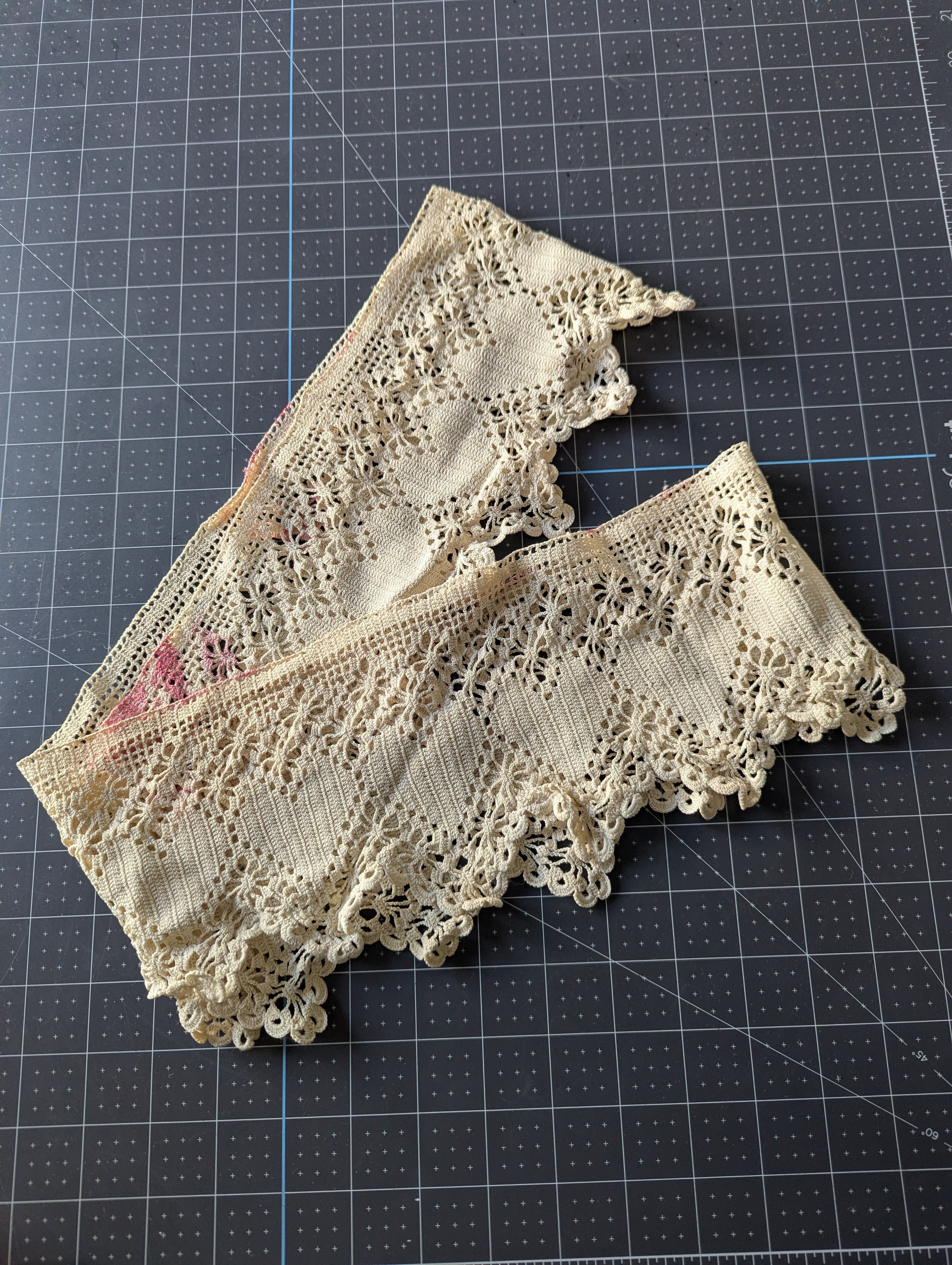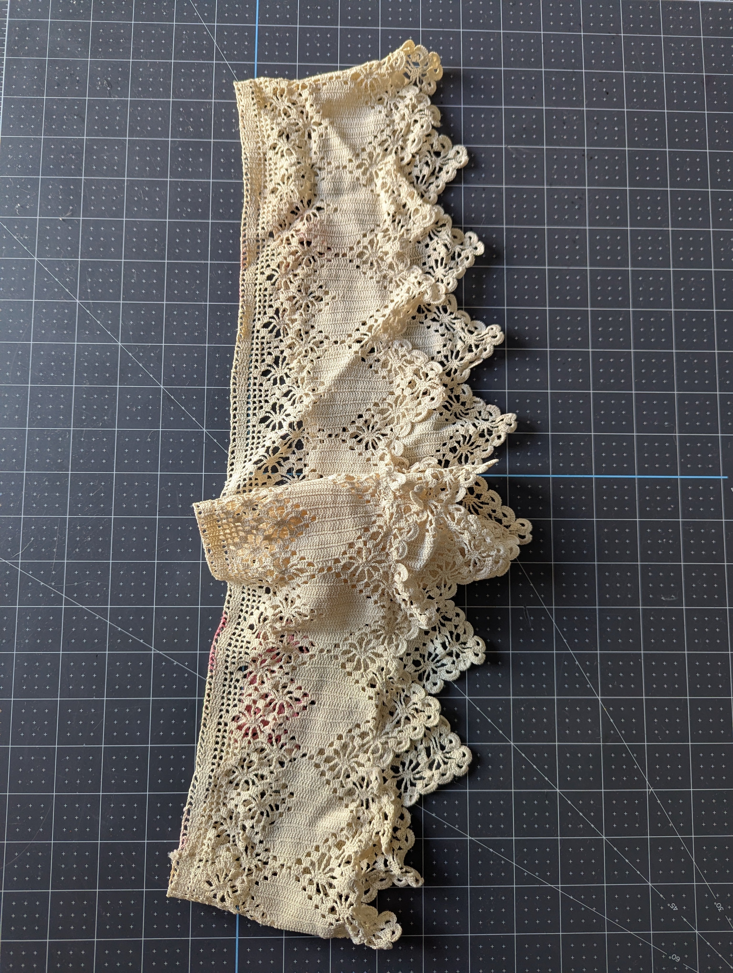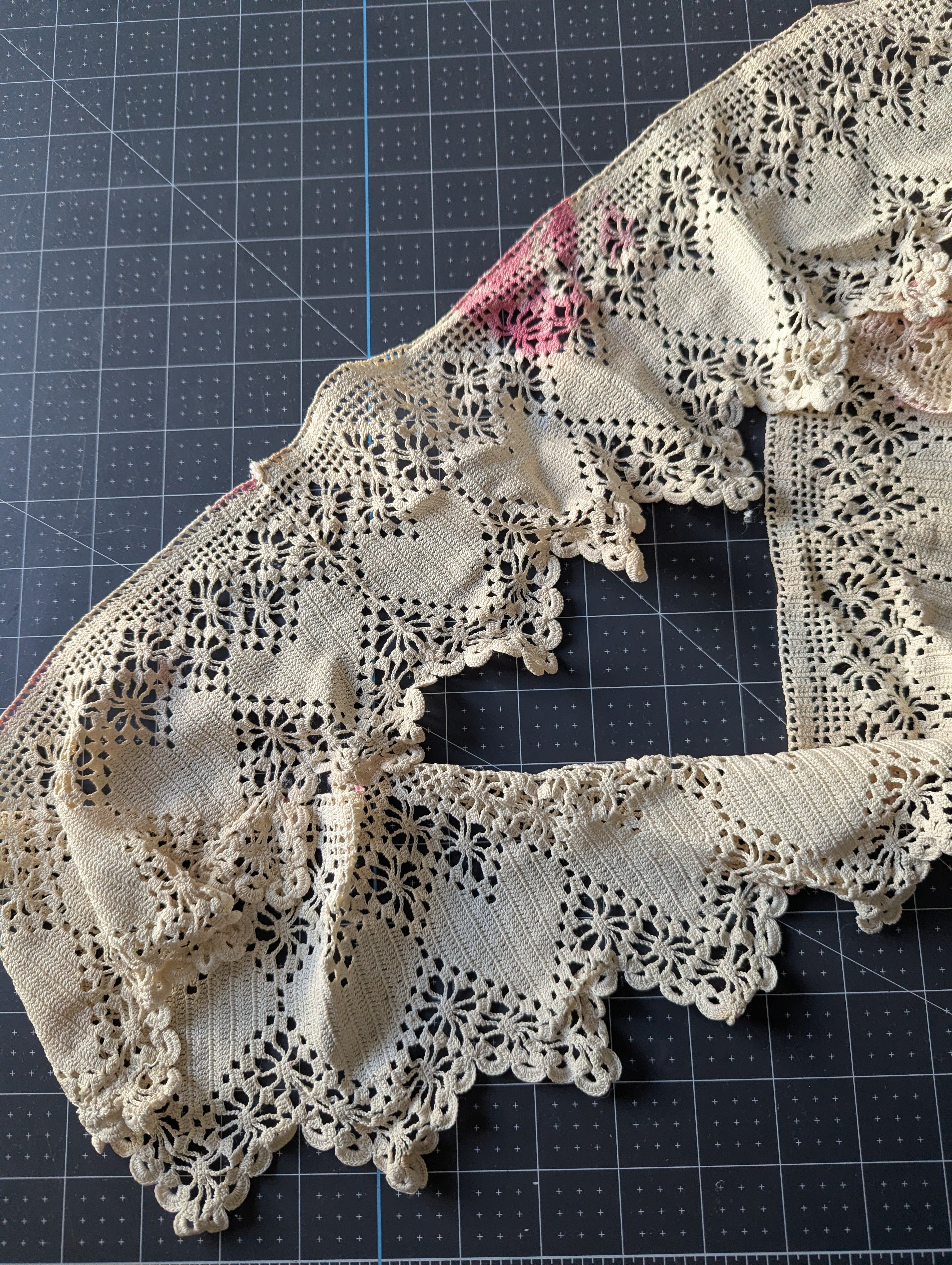 This piece has stains and should be considered for upcycle use. It was washed due to being a rescue from a wet bin and does have a detergent smell.