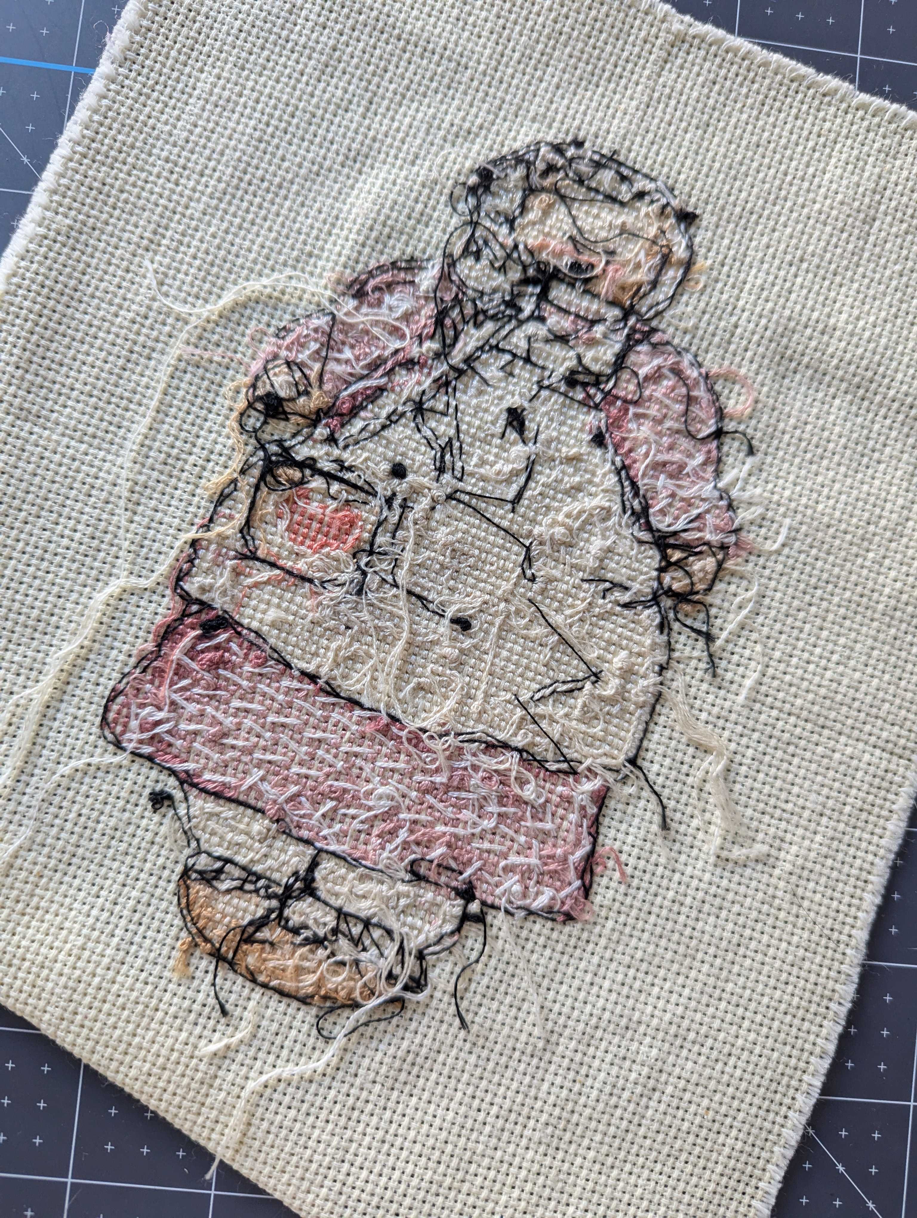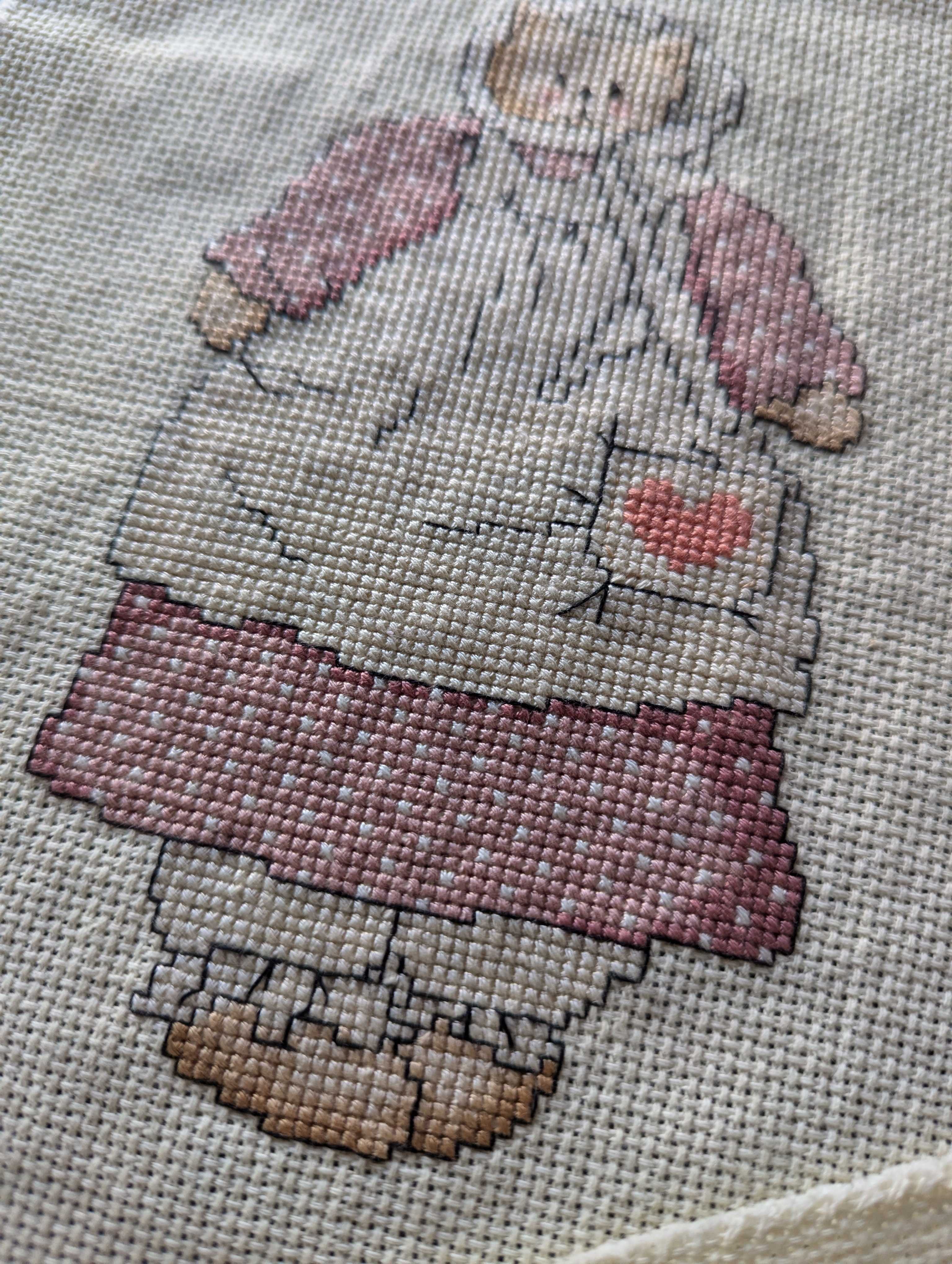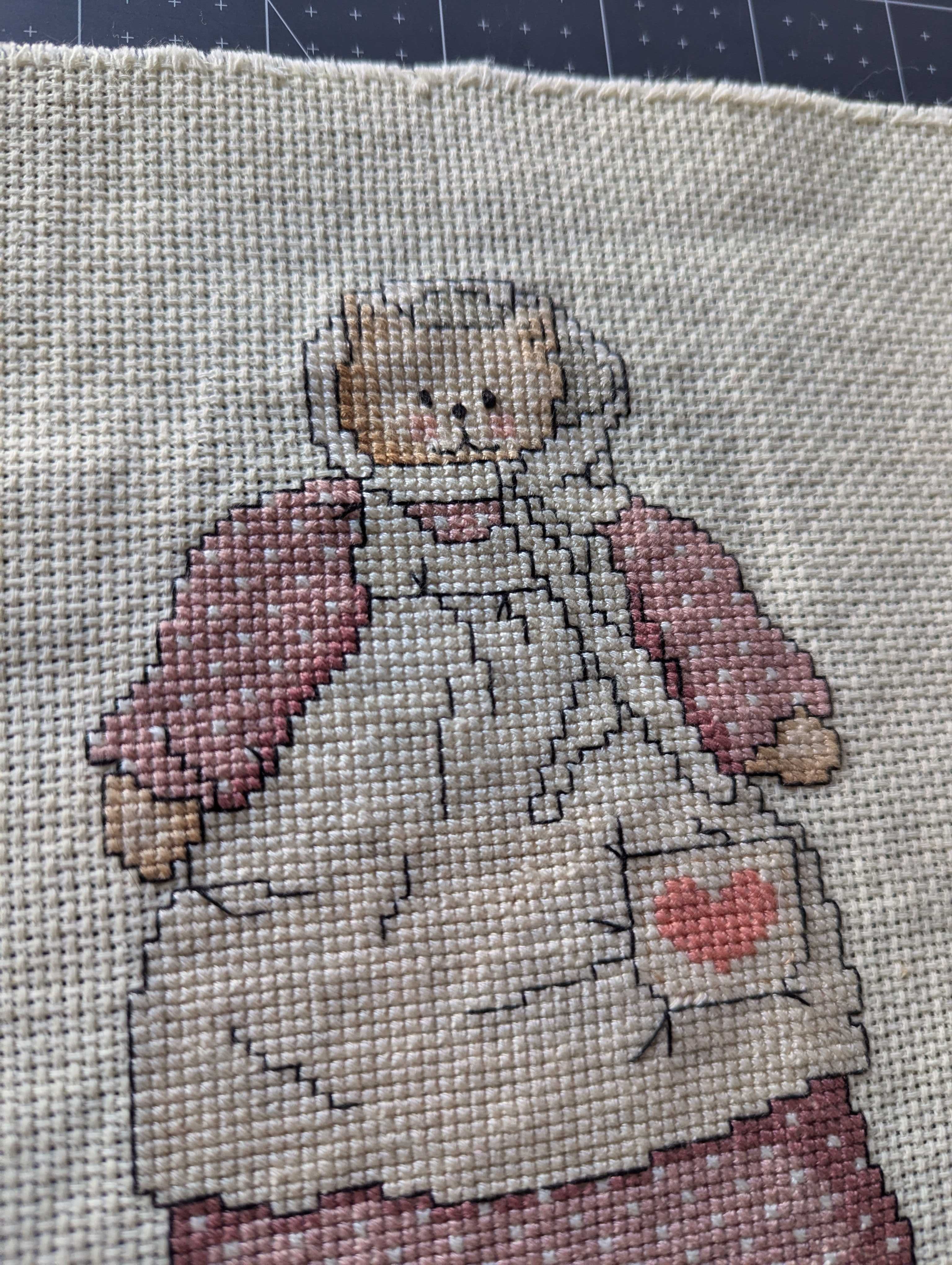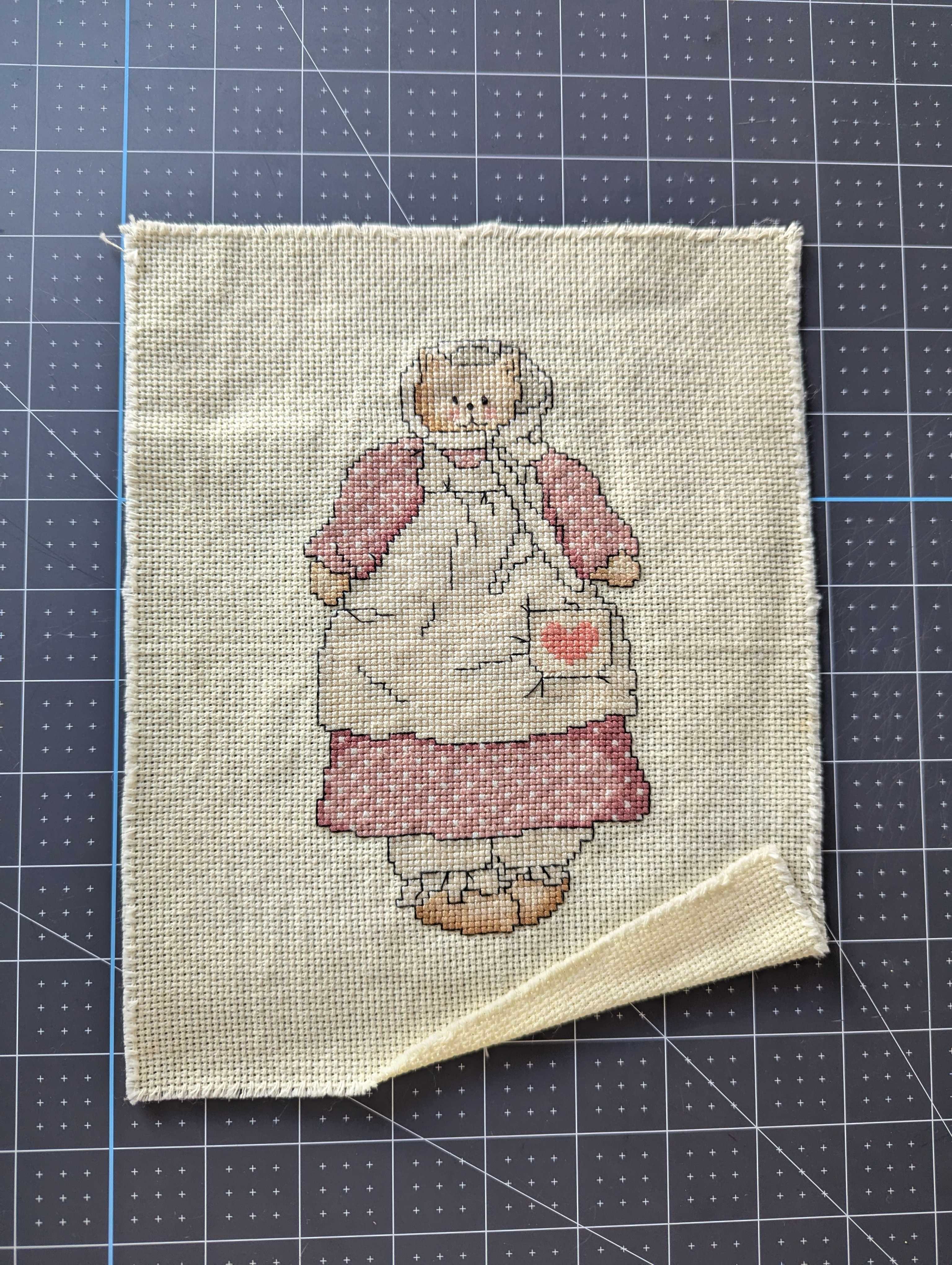 Unfinished project! Transform this cross-stitched kitten piece into an applique, art or wall hanging, or other craft material. Mat board is in inches for size reference.