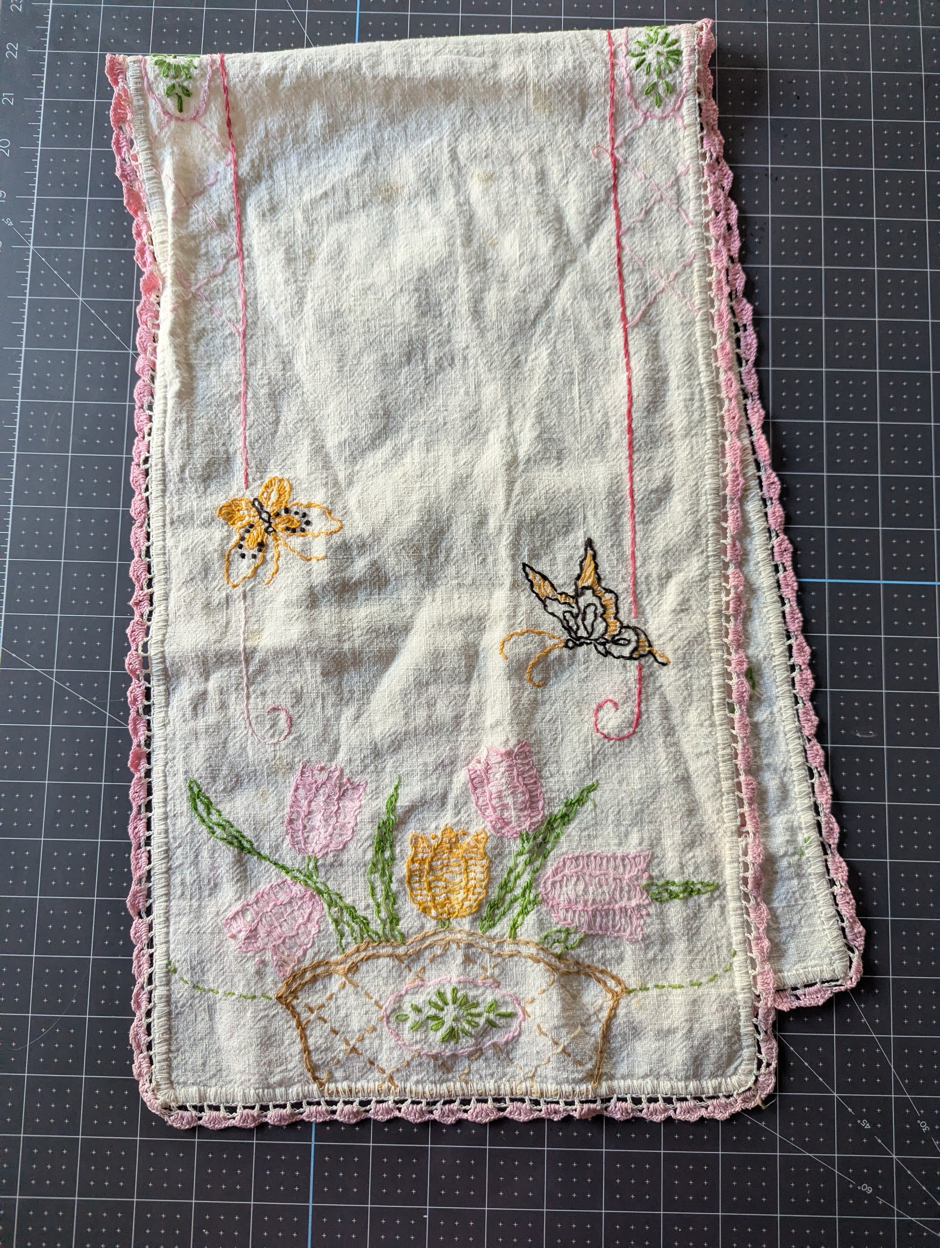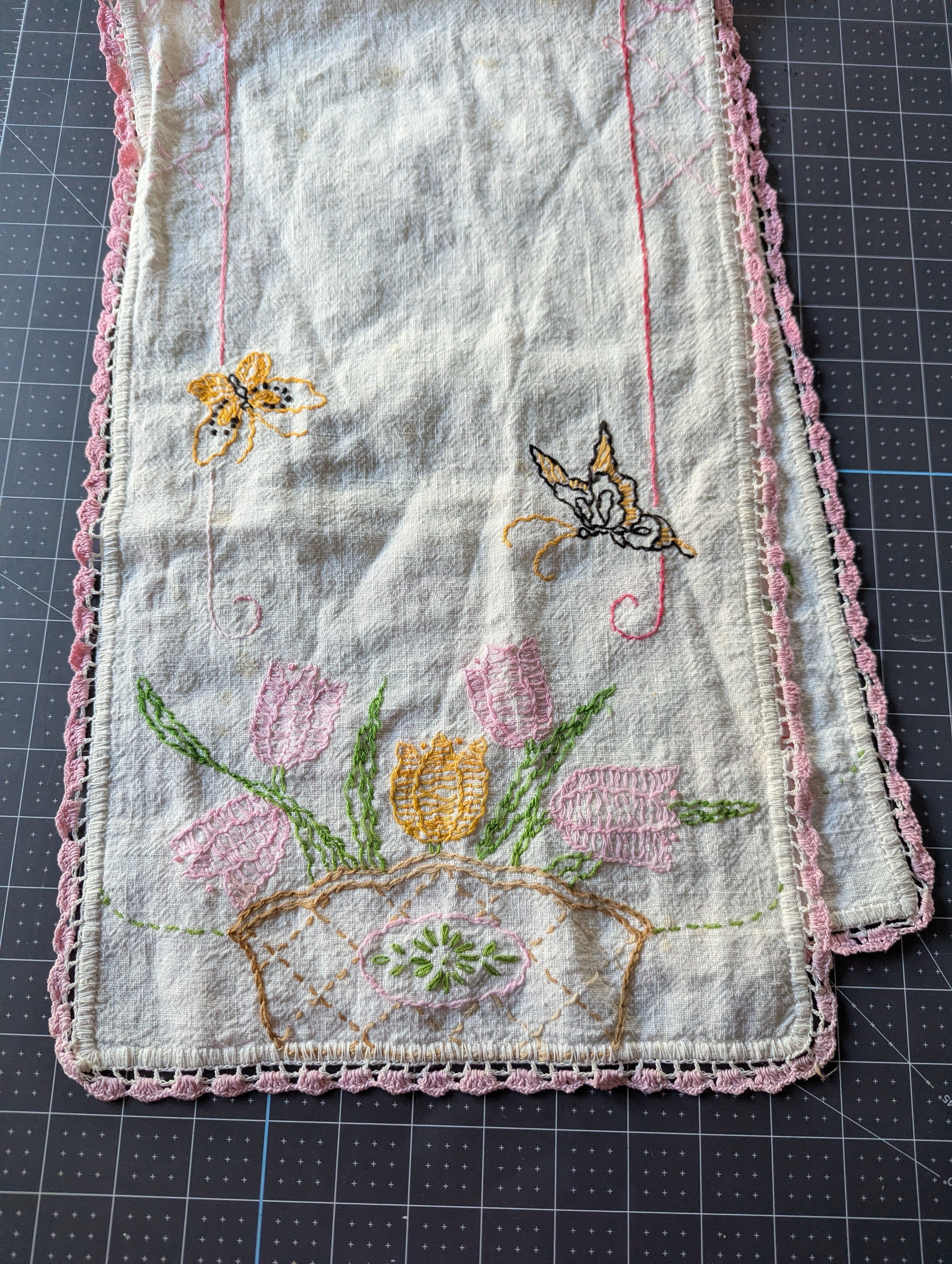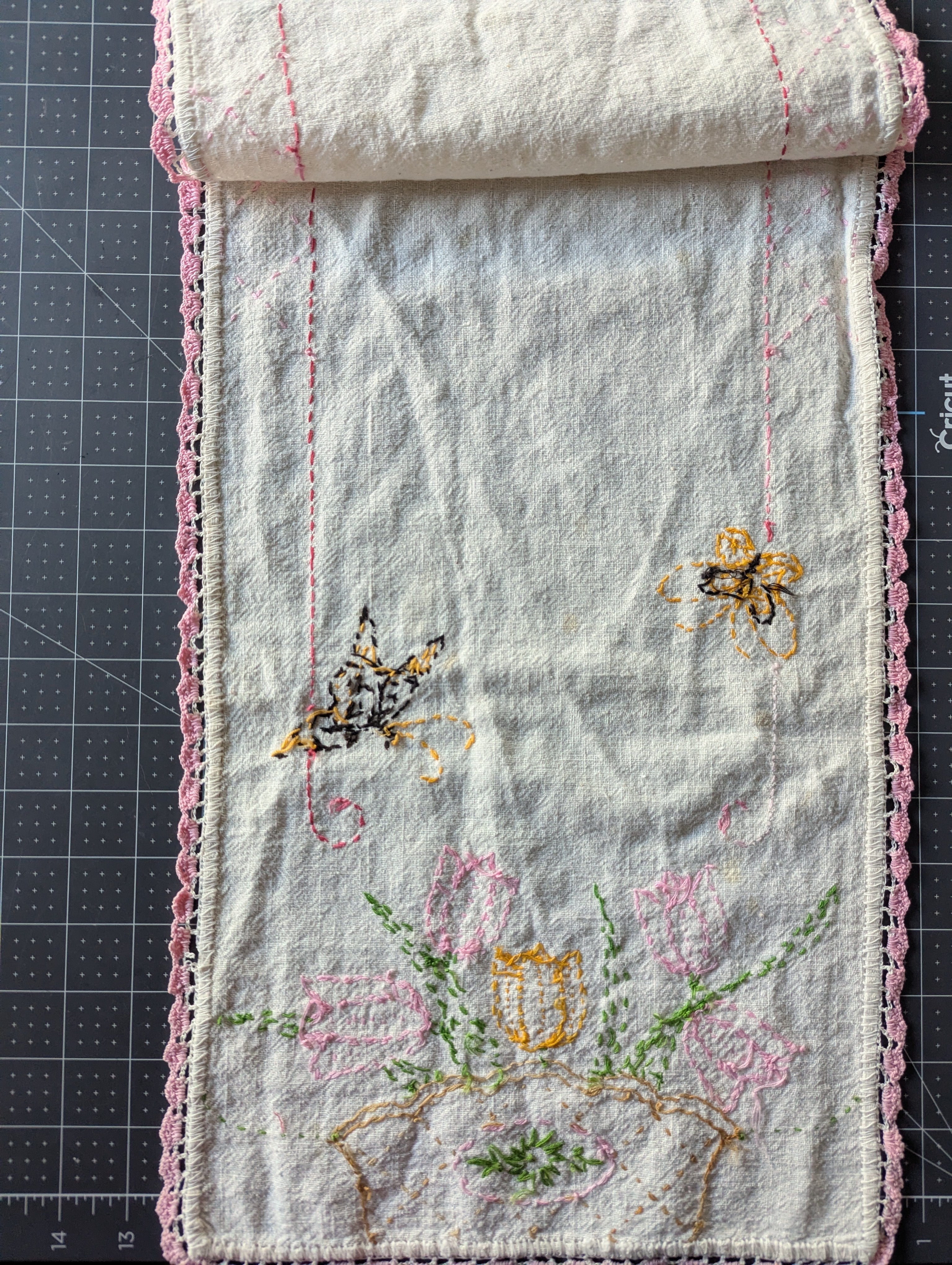 Embroidered Vintage Table Runner ReFabric - Approx. 39 x 11-inches