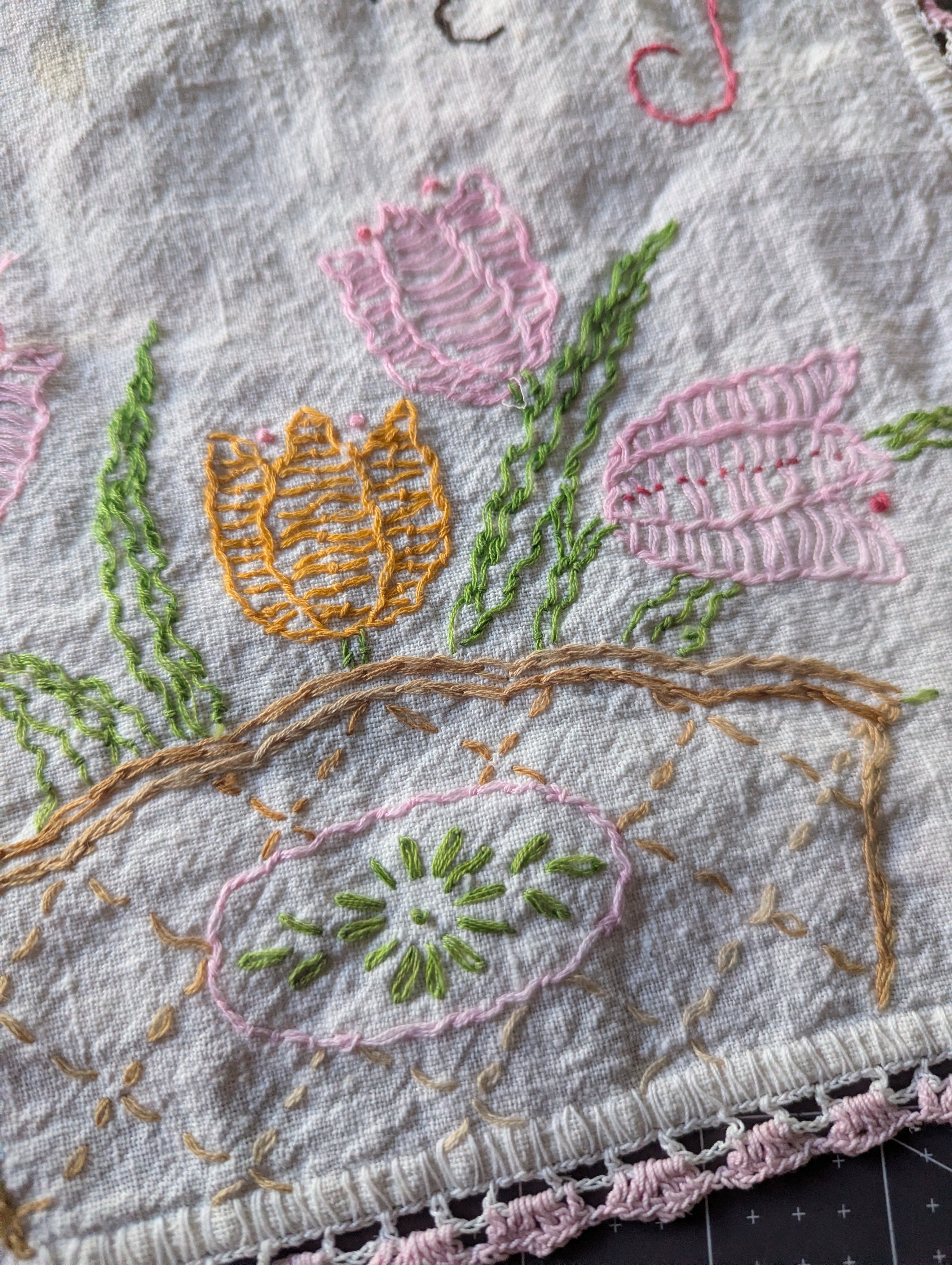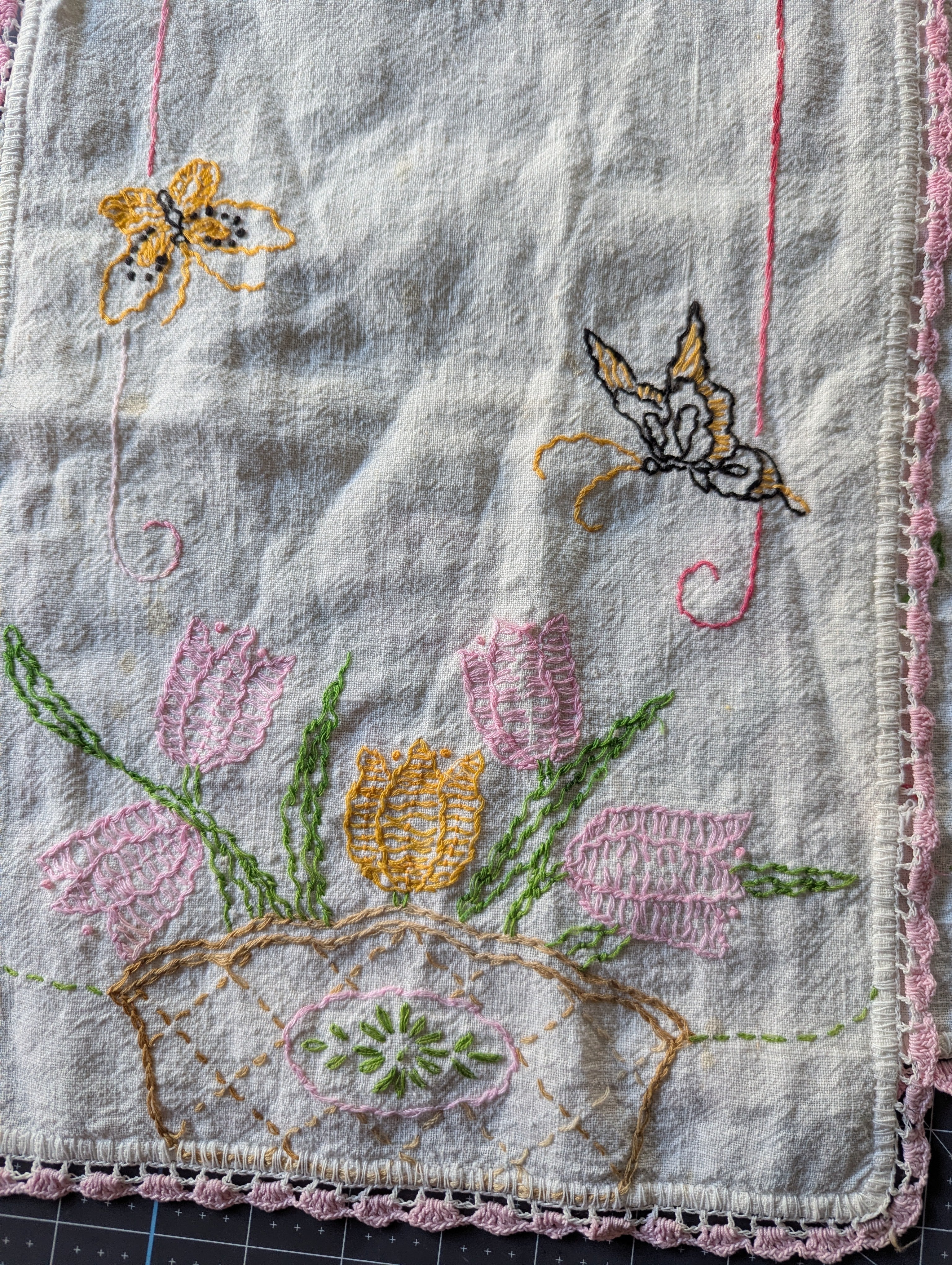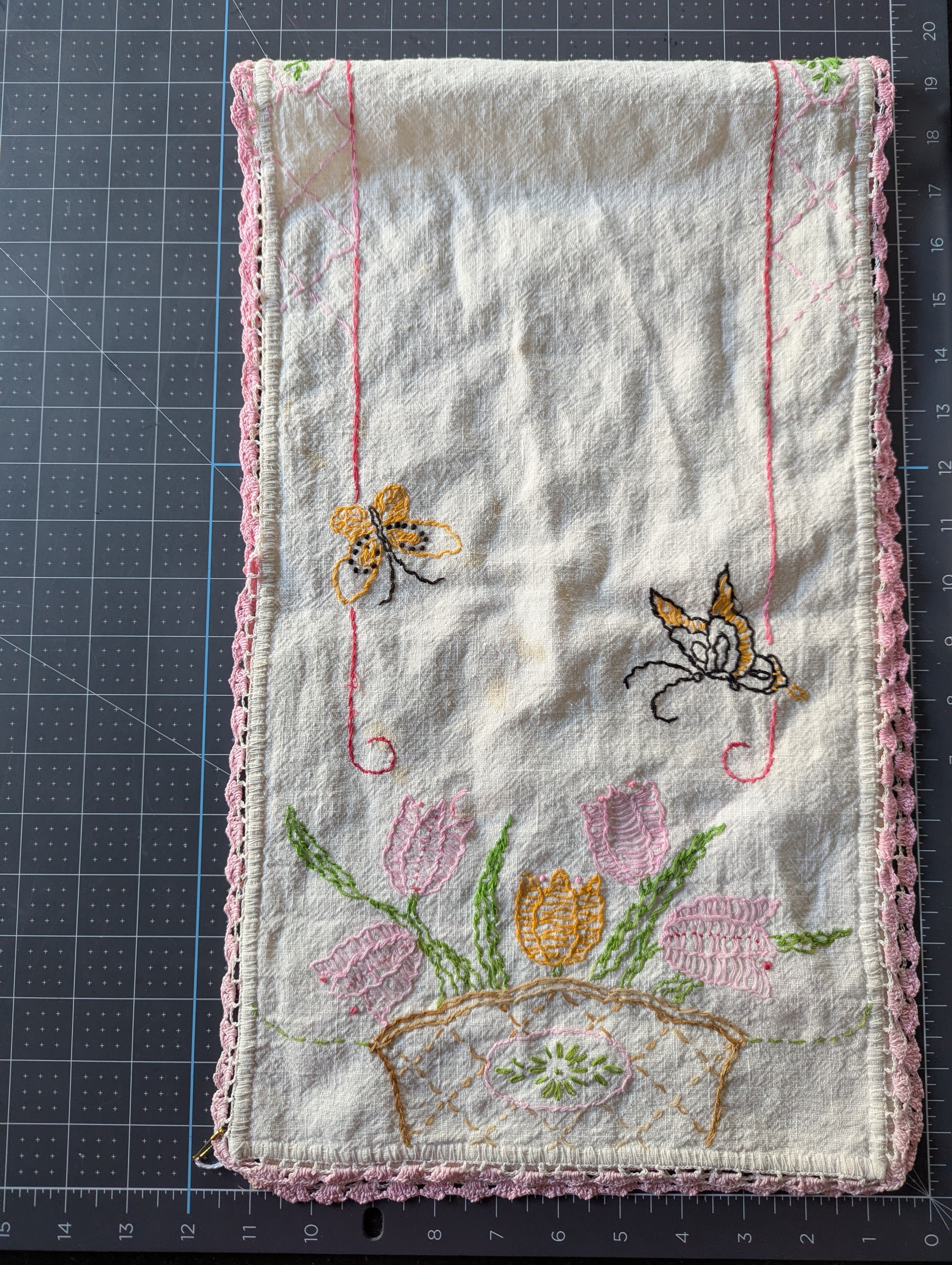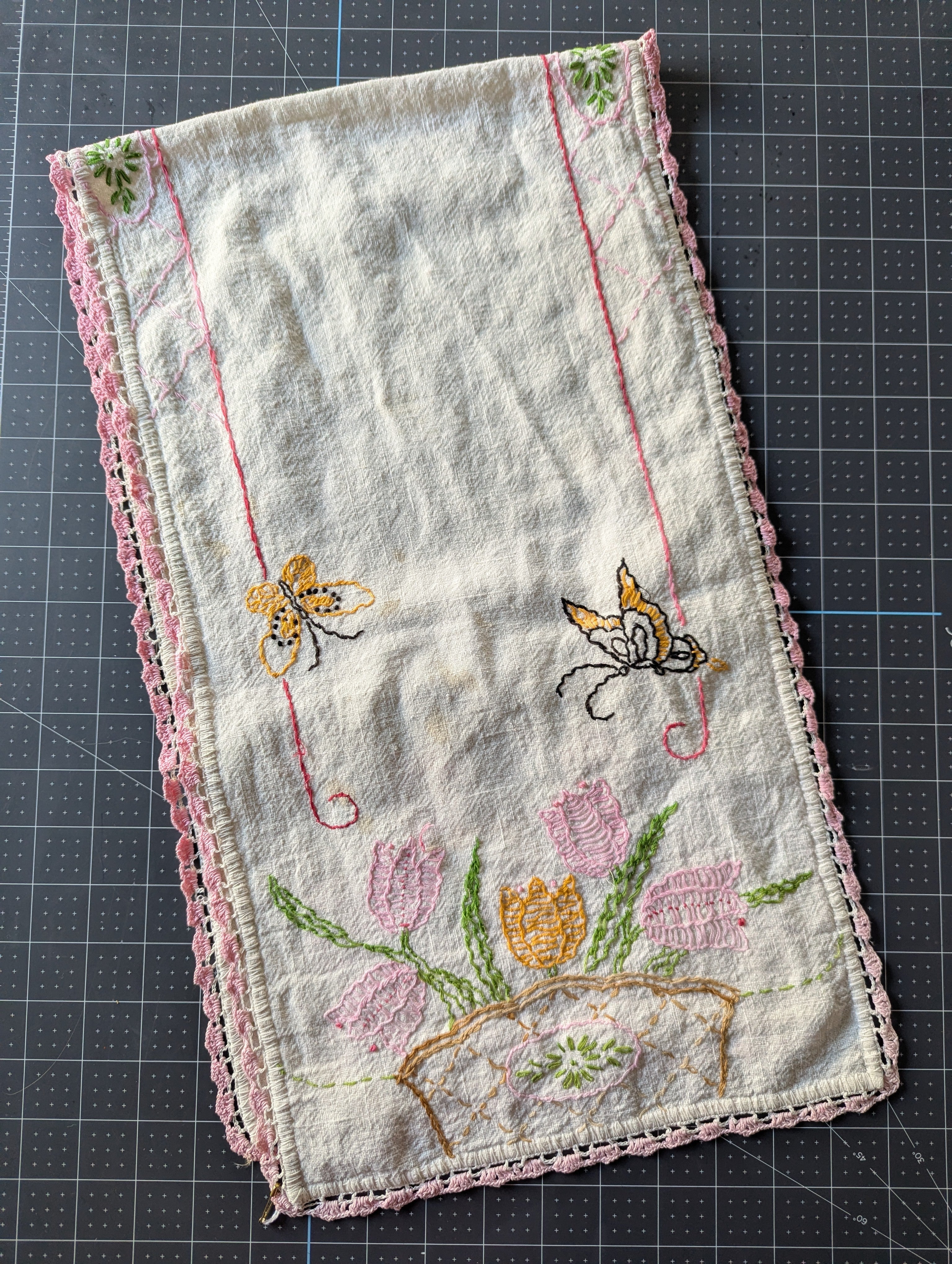Embroidered Vintage Table Runner ReFabric - Approx. 39 x 11-inches