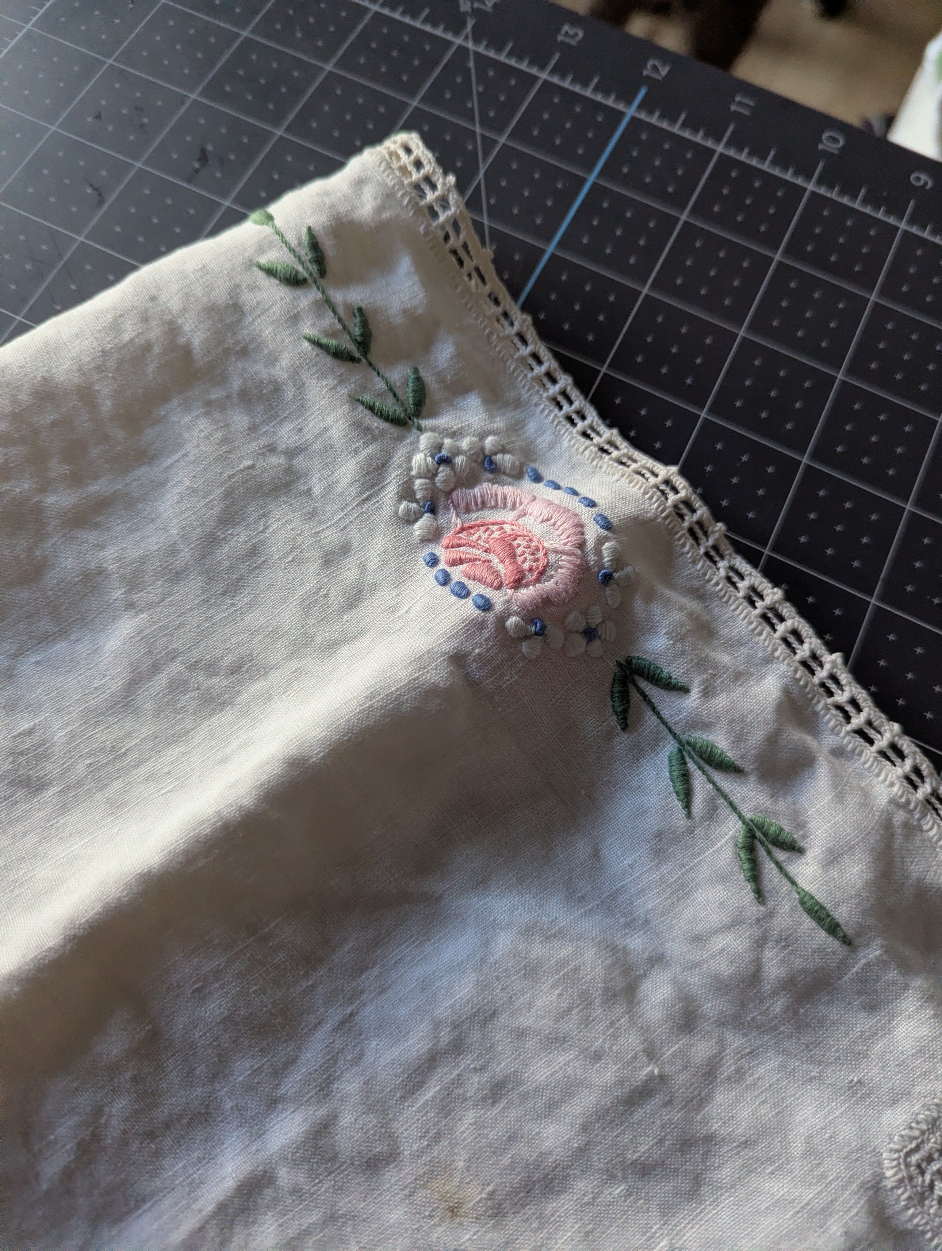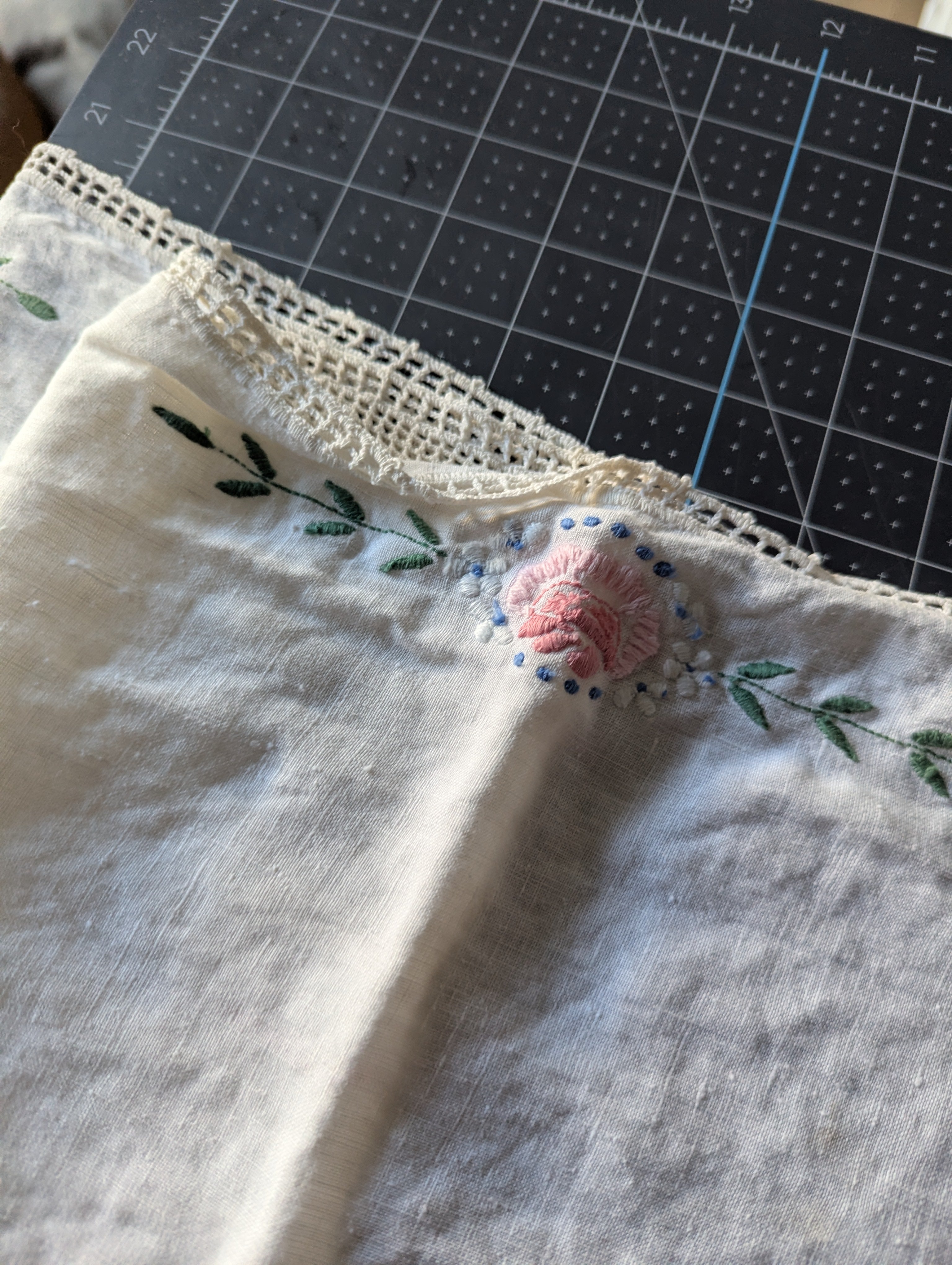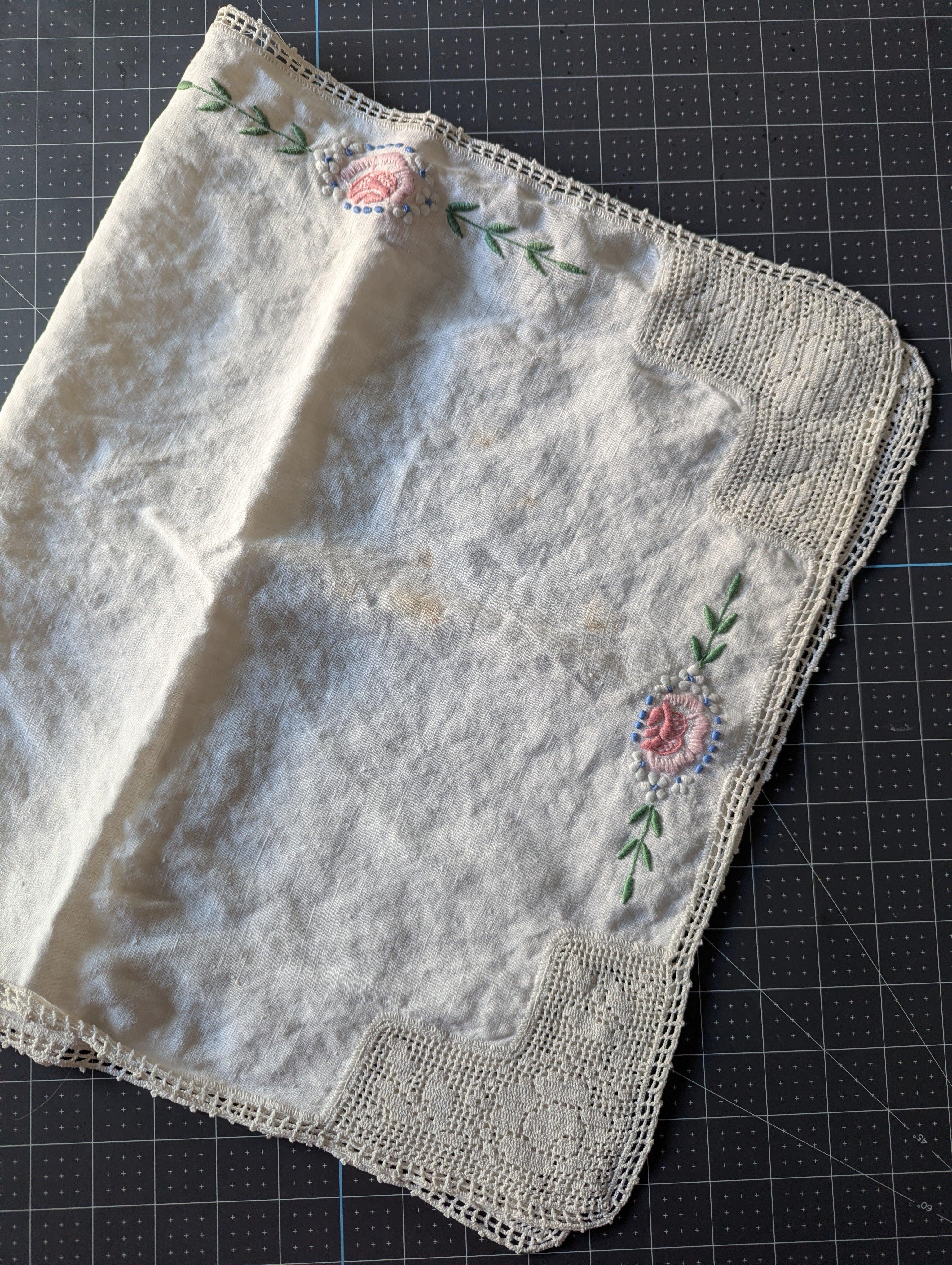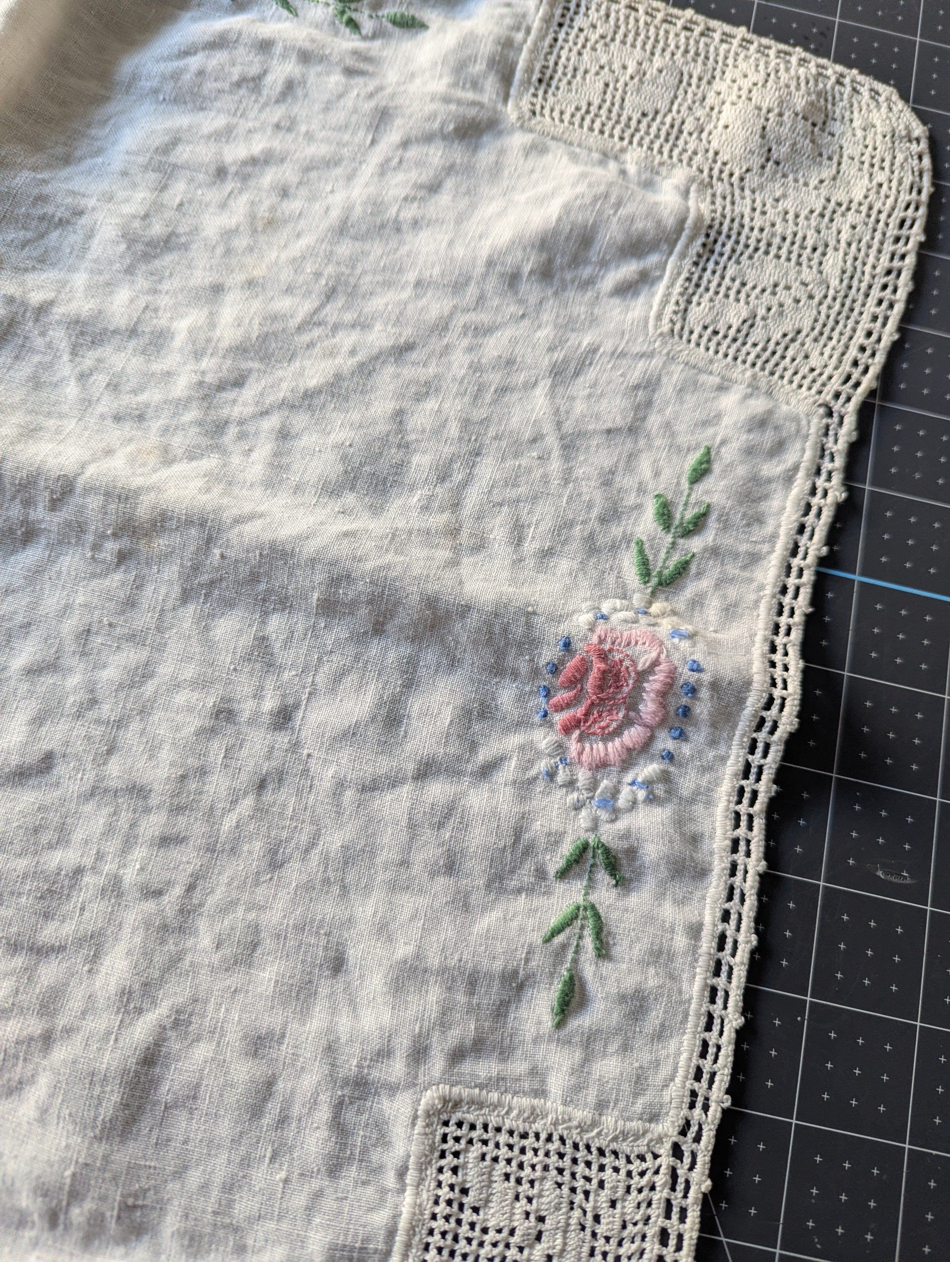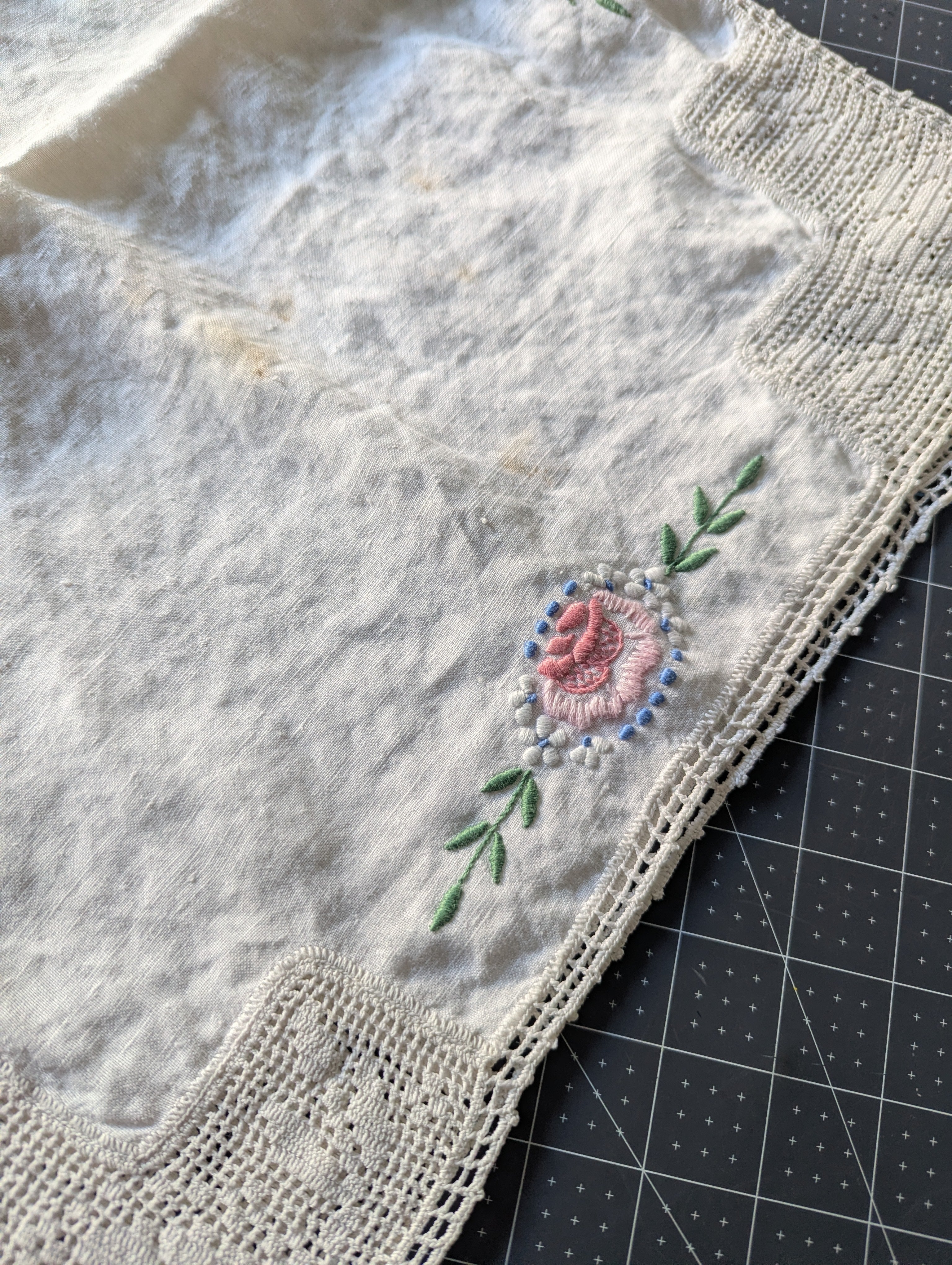 Embroidered Vintage Table Runner ReFabric - Approx. 39 x 17-inches.