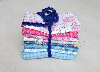 Fabric 1/16th yards Tiny Bundle of 8 - Total of 1/2 yard - Blues & Pinks
