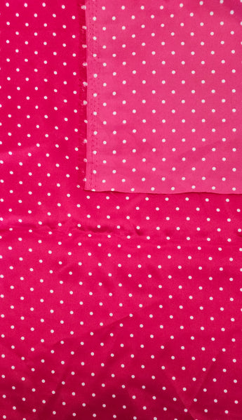 Fabric Dark Pink Thin Satin With White Dots 4 Yards x 58"