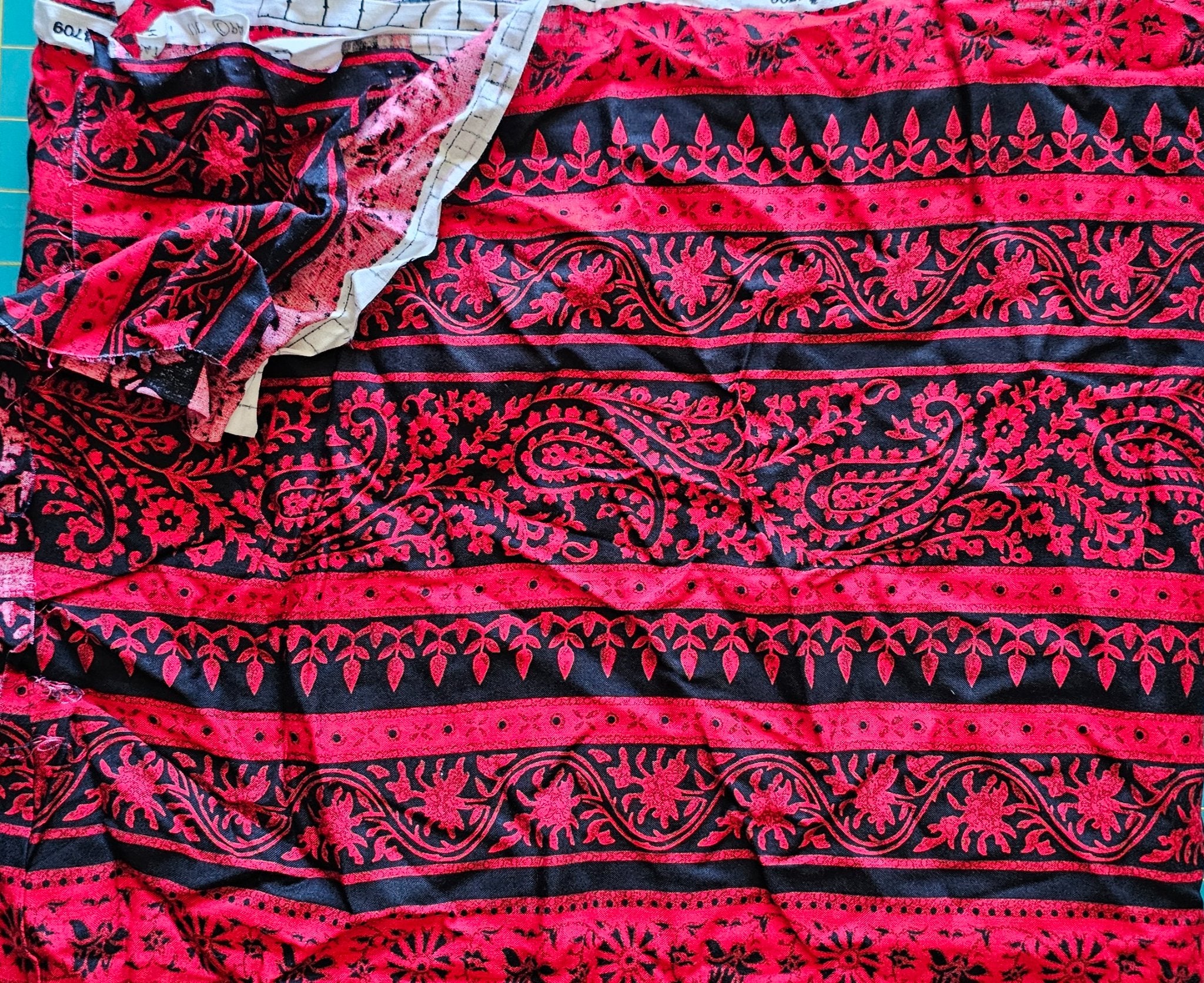 Fabric Vintage 1980's? Cotton Red Black Paisley Floral Flow-y Fabric 3.5 Yards continuous x 58 Inches Wide