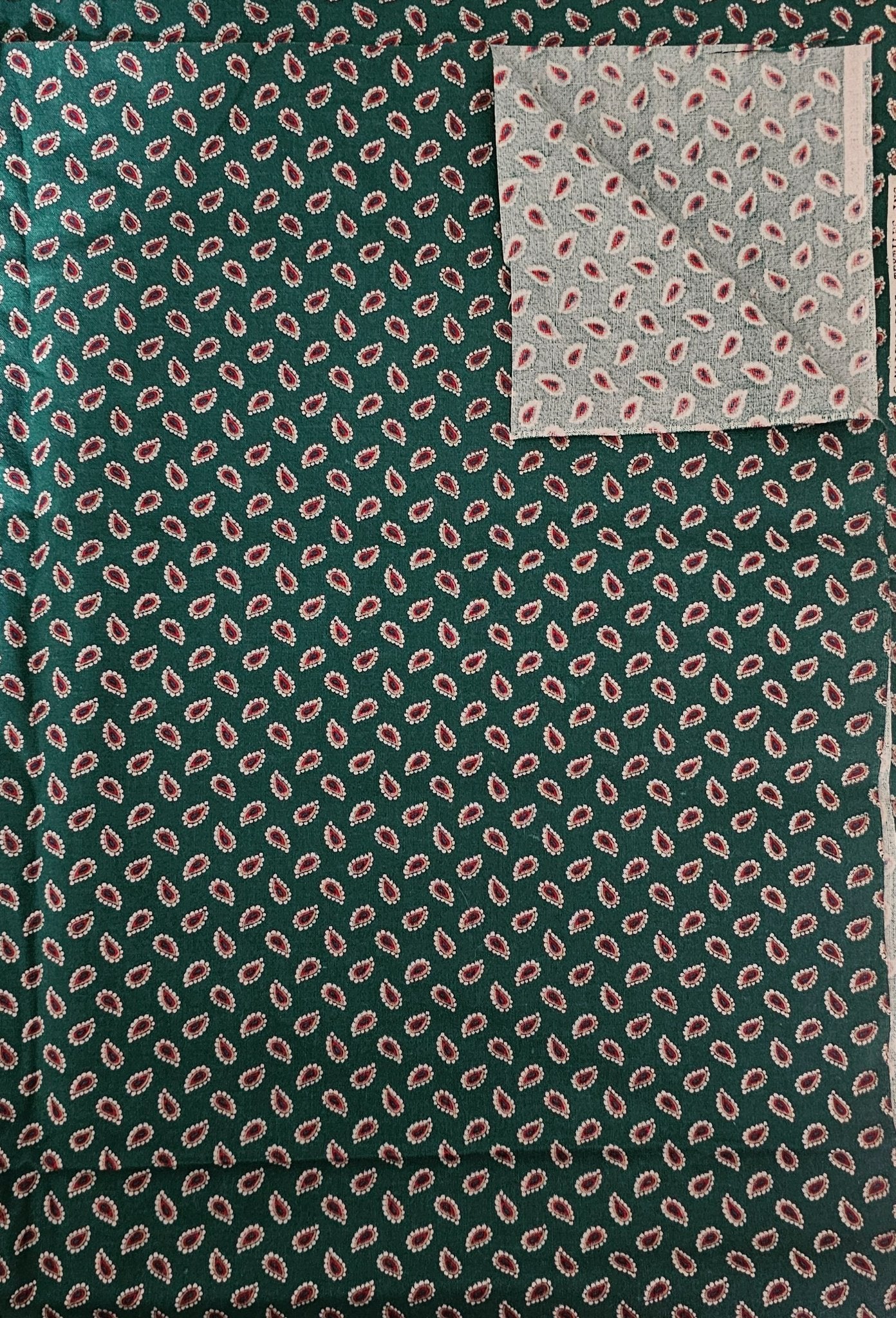 Fabric Vintage Tiny Paisley Dark Green Dark Red 1.75 Yard
