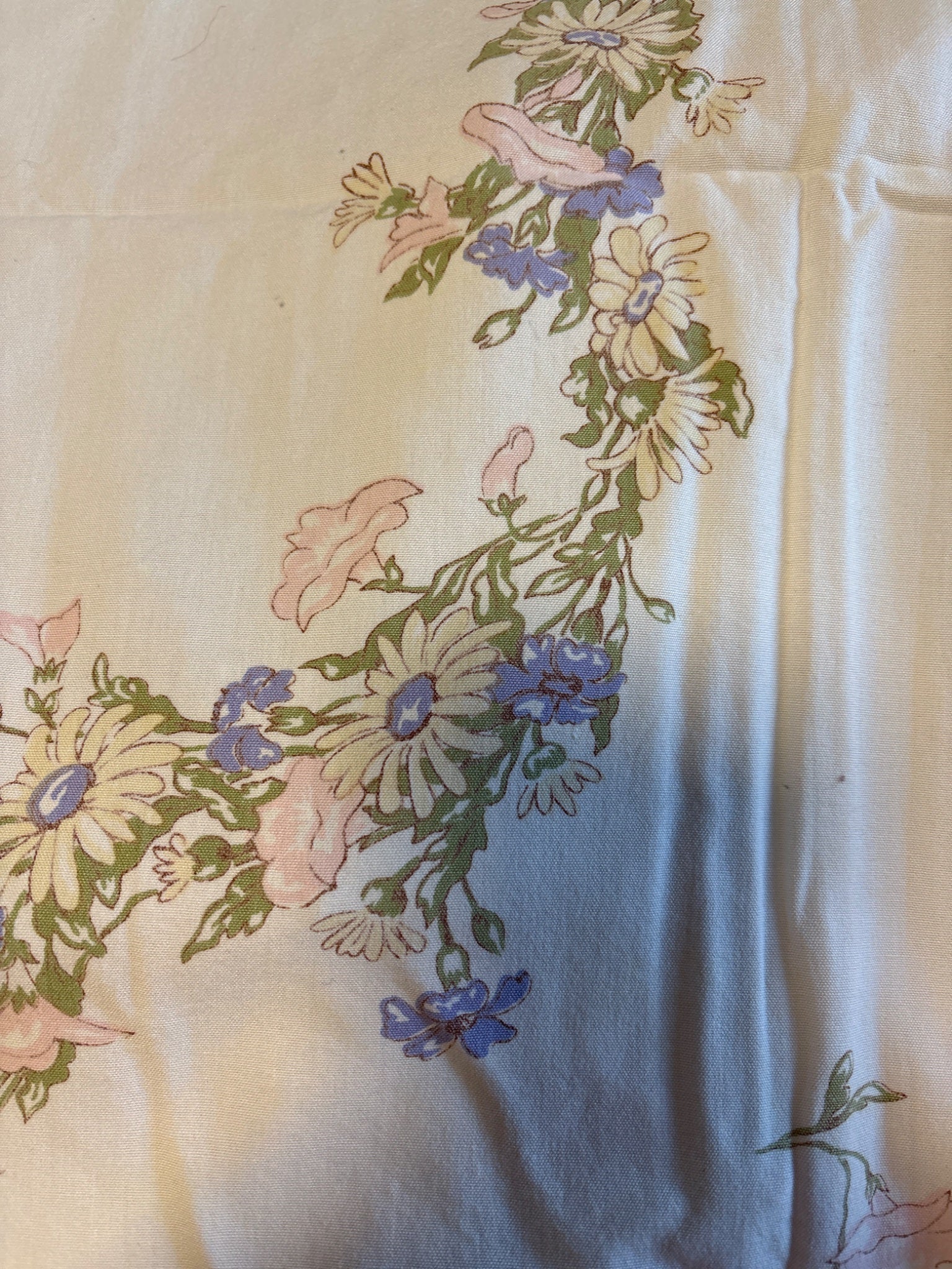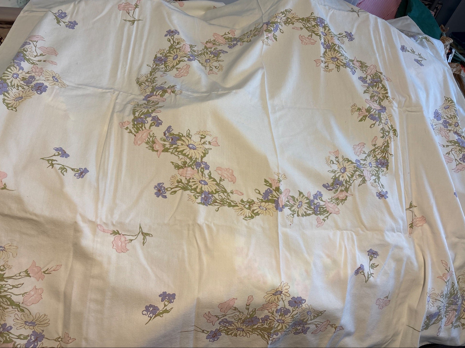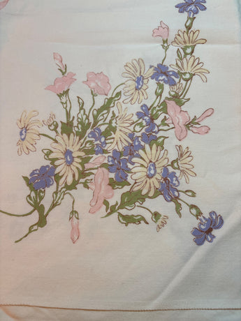 Faded pastel vintage tablecloth for upcycle 46” x 50”