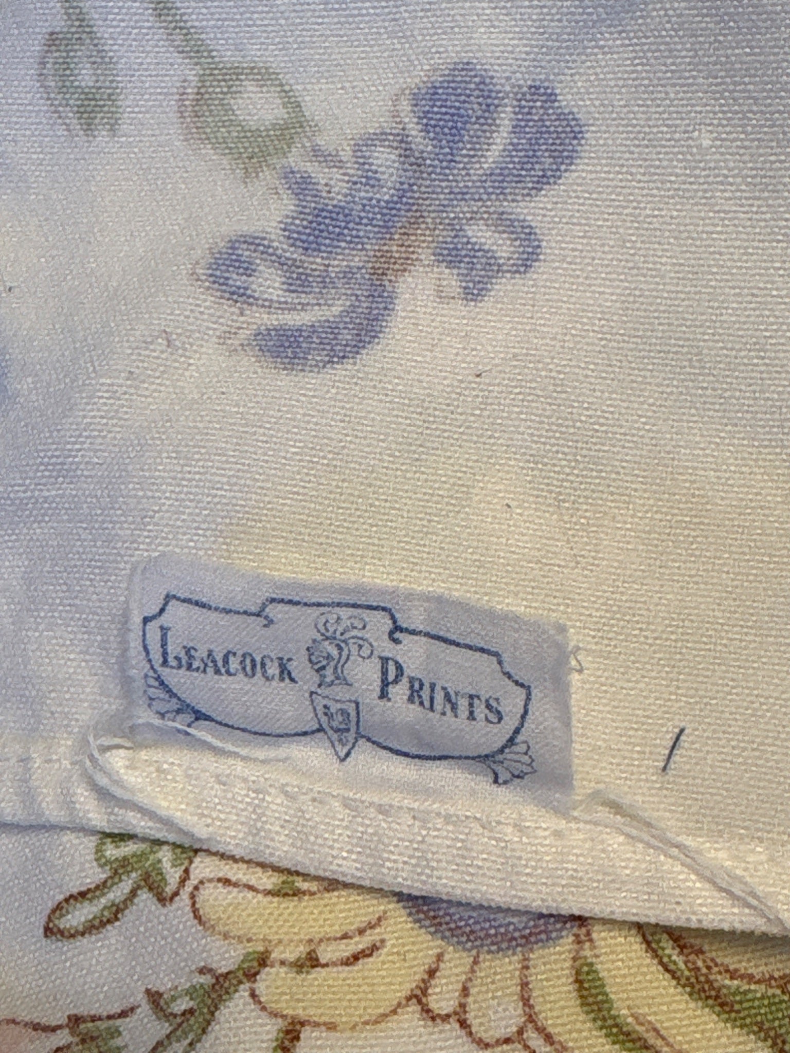 Vintage tablecloth cotton or blend, Leacock label. 46" x 50", I really don't see any stains or holes but there could be something light I am missing. 9 motifs and a big center ring with lots of individual flowers. No odors