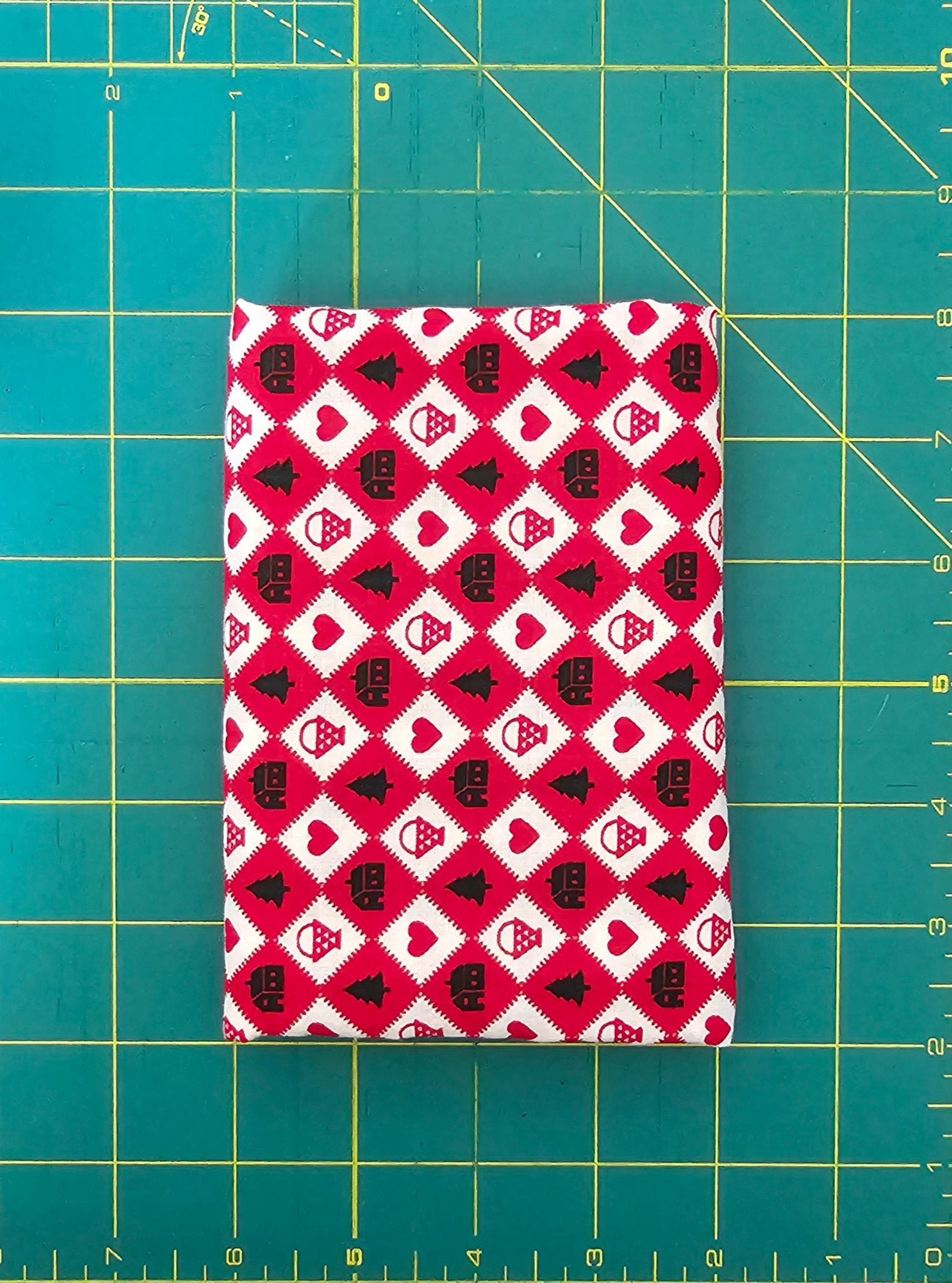 Fat Quarter Christmas Black White Red Cottage Baskets Hearts Trees
