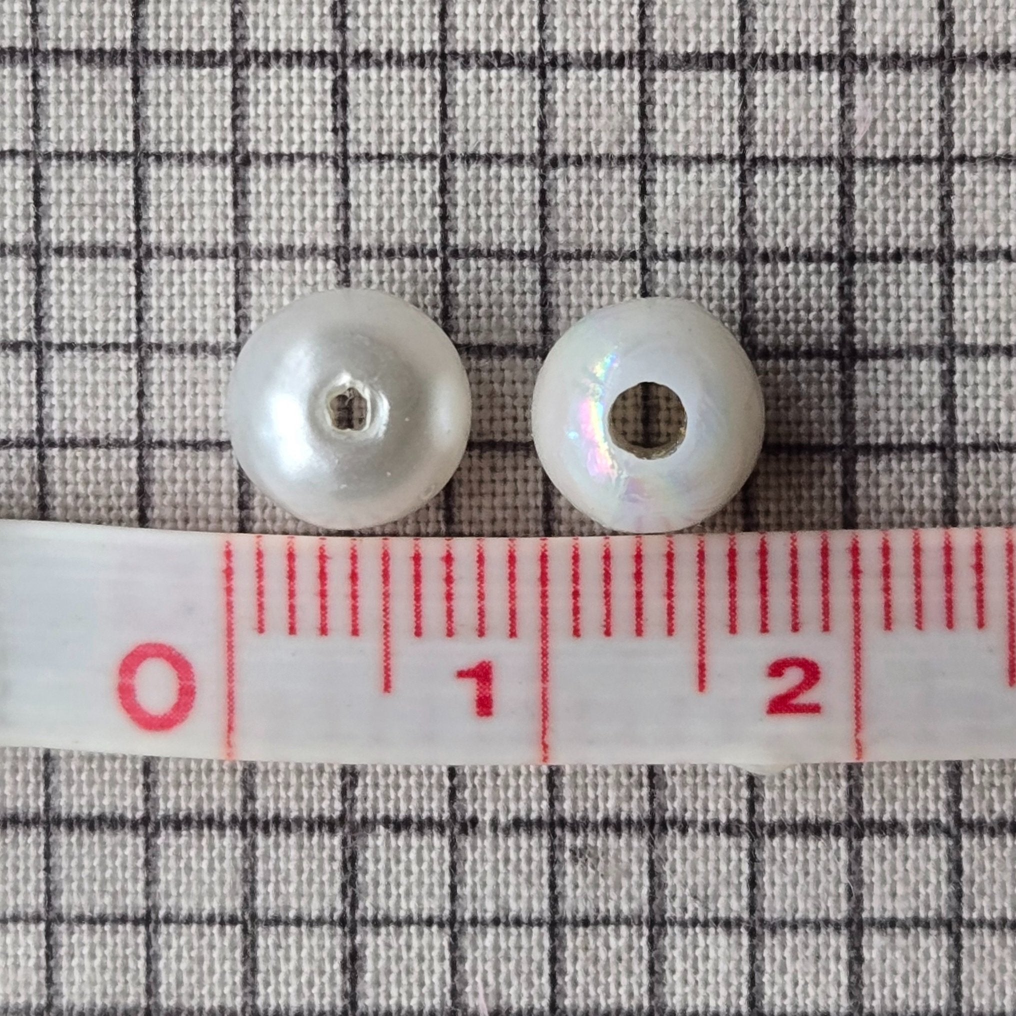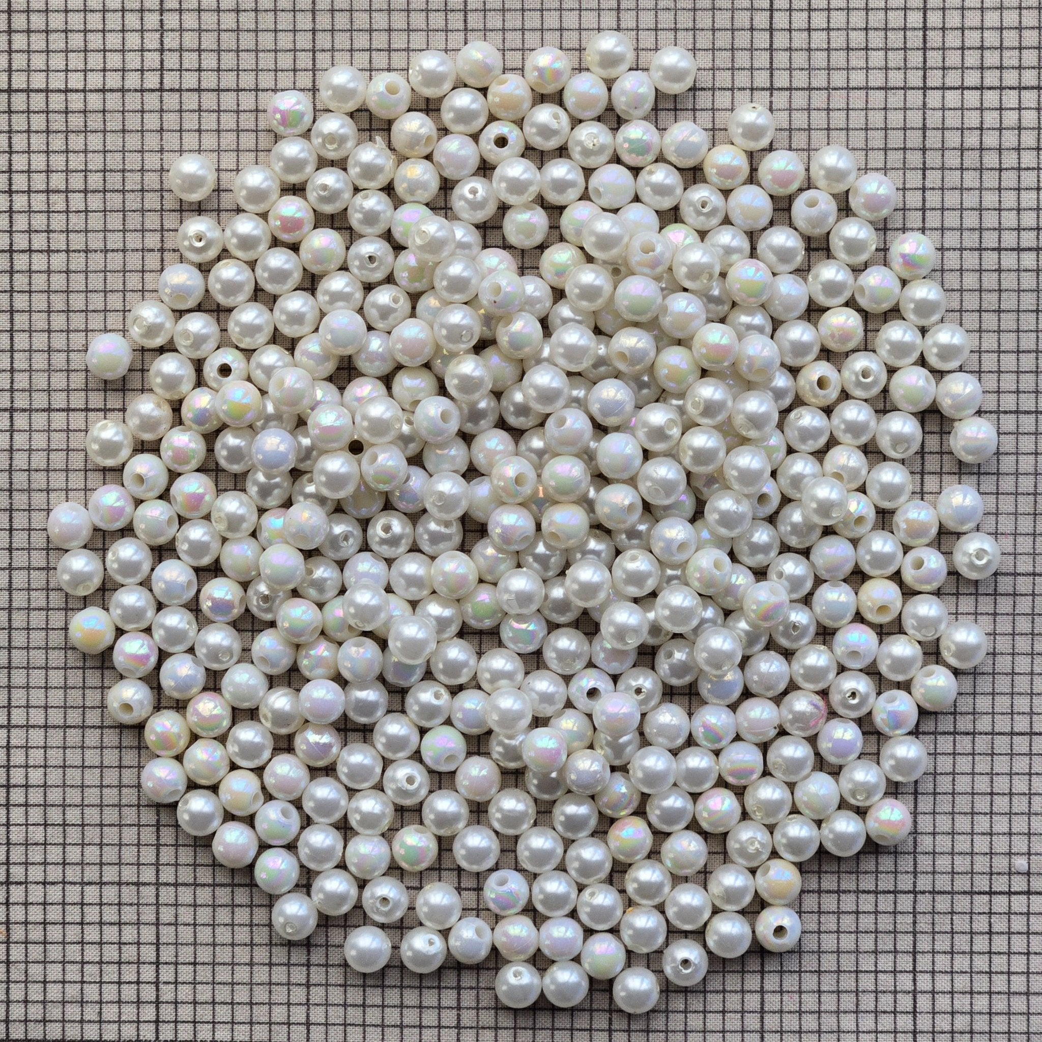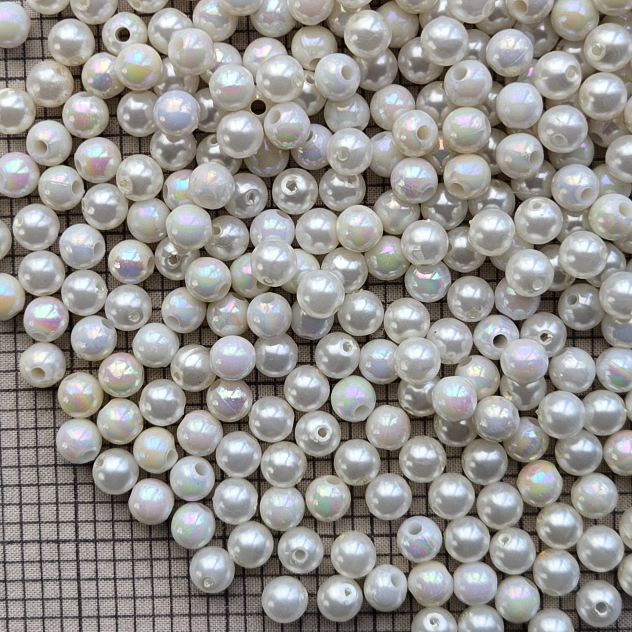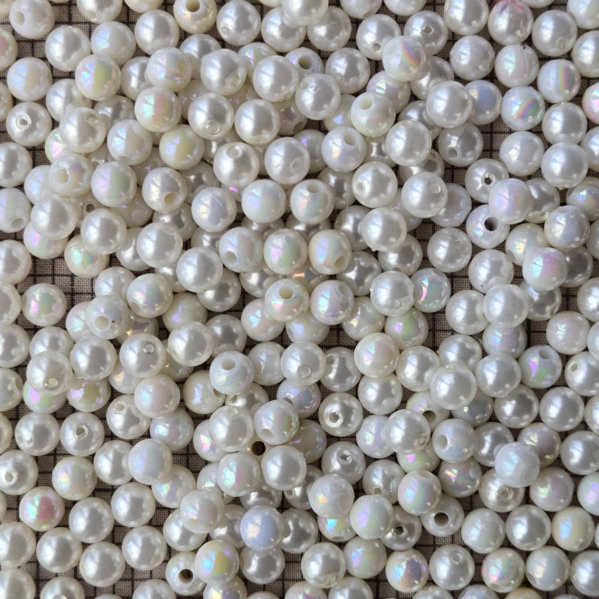 3 oz bag of faux pearl plastic beads. Two different kinds in this mix - different size holes (1 mm and 3 mm) and different shades of white/pearl as well.