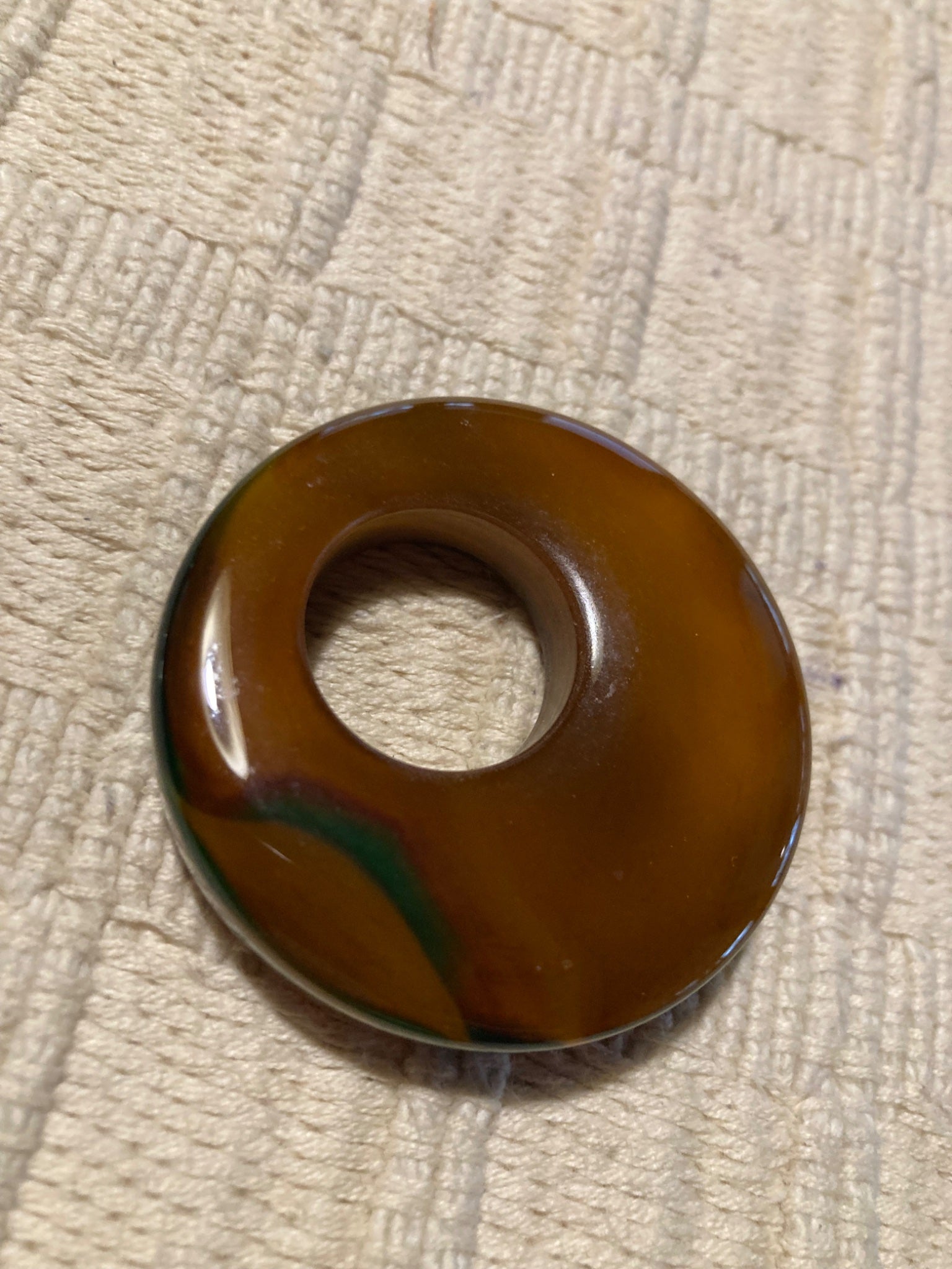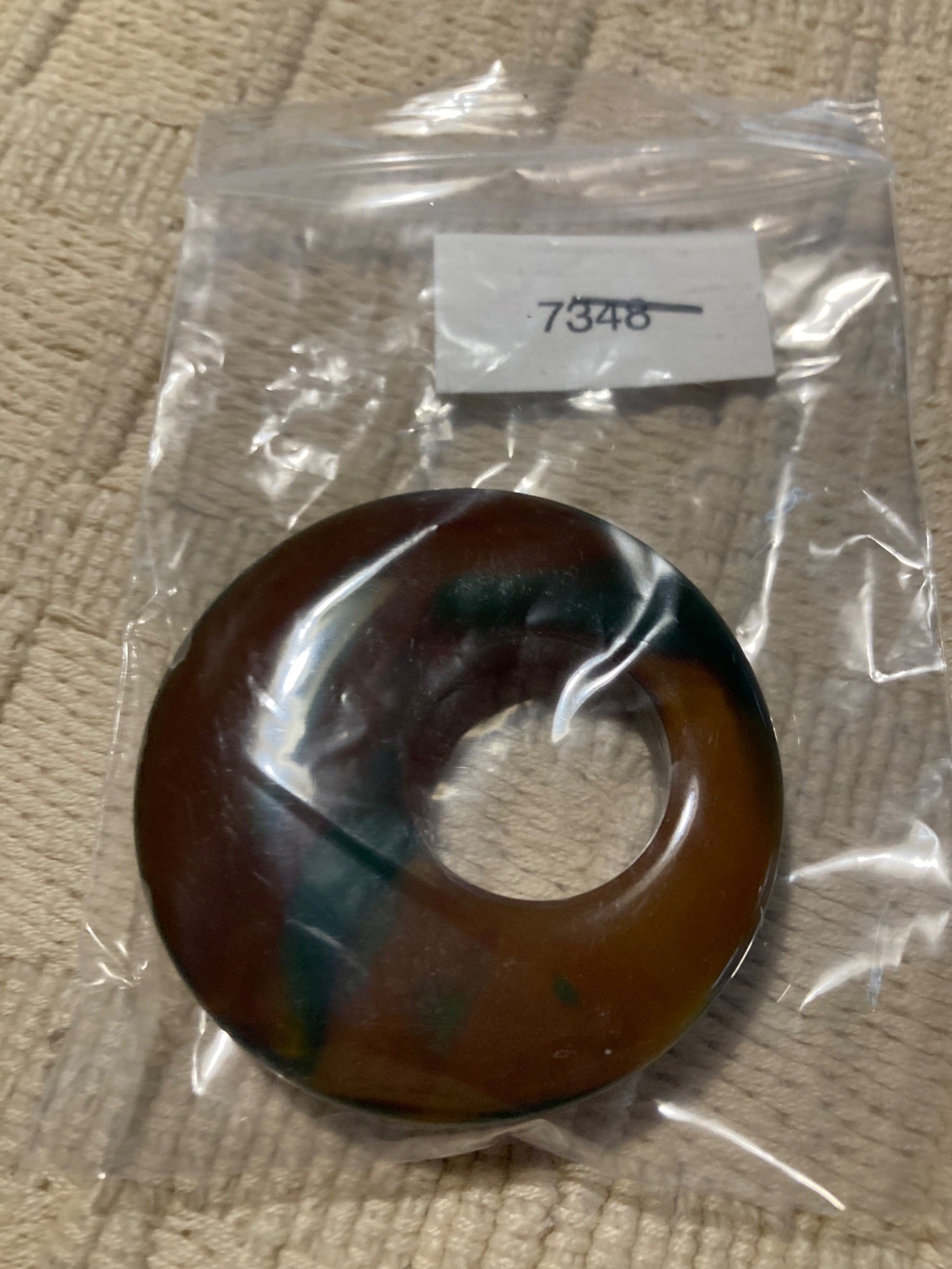 This 48mm round focal piece has a round cut out towards the top. The piece is not drilled. The color is rich the impact amazing. $5.00 2oz.
