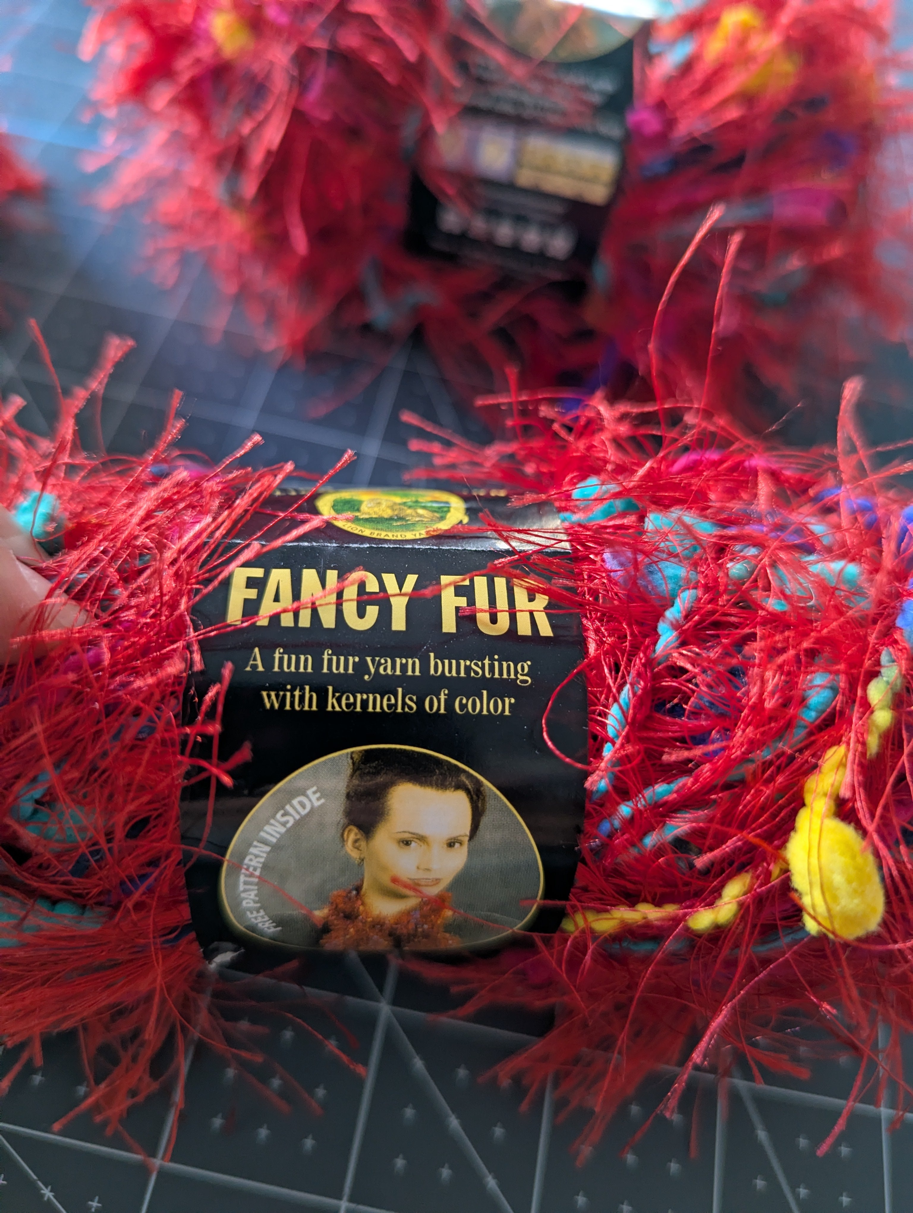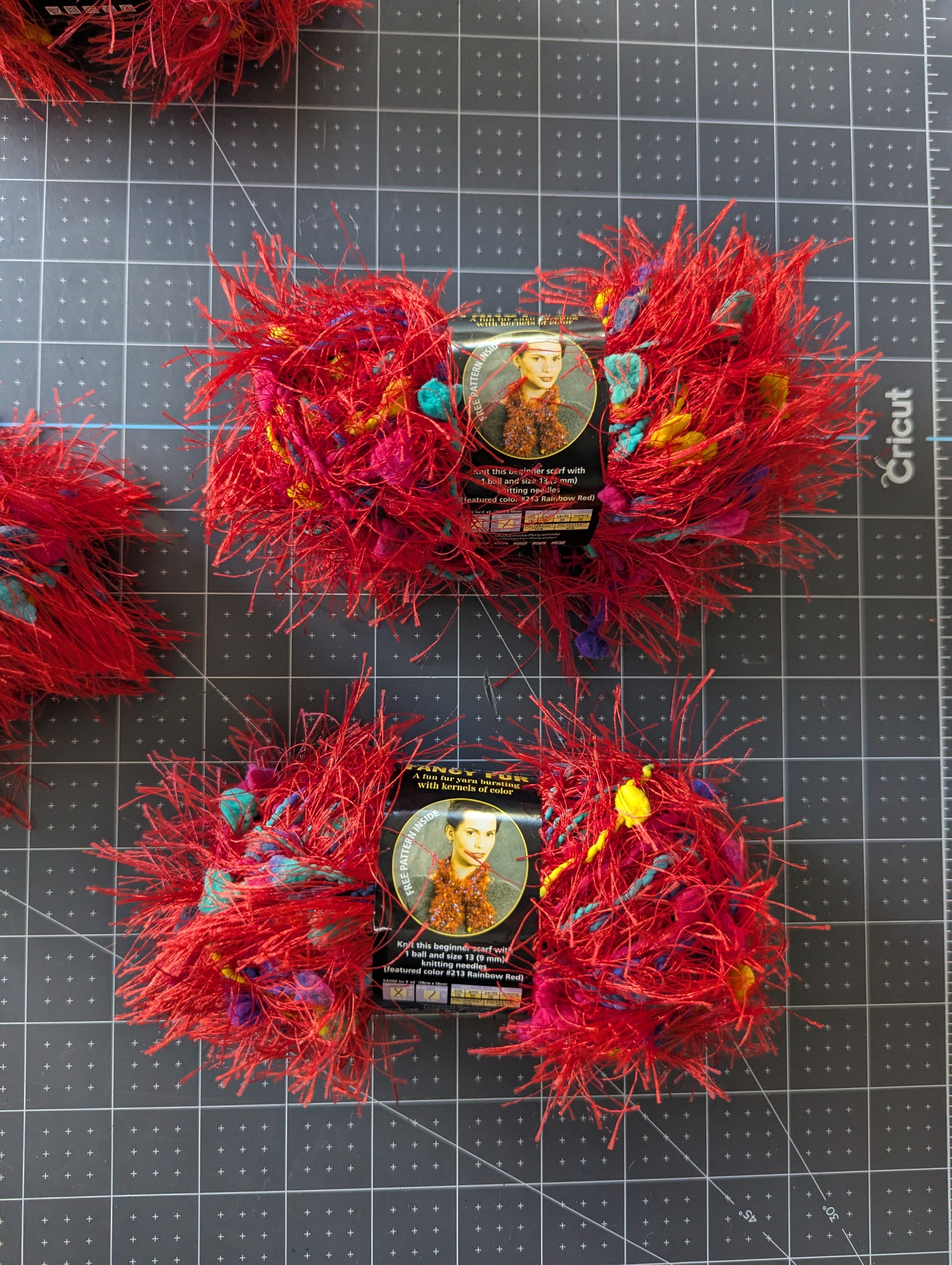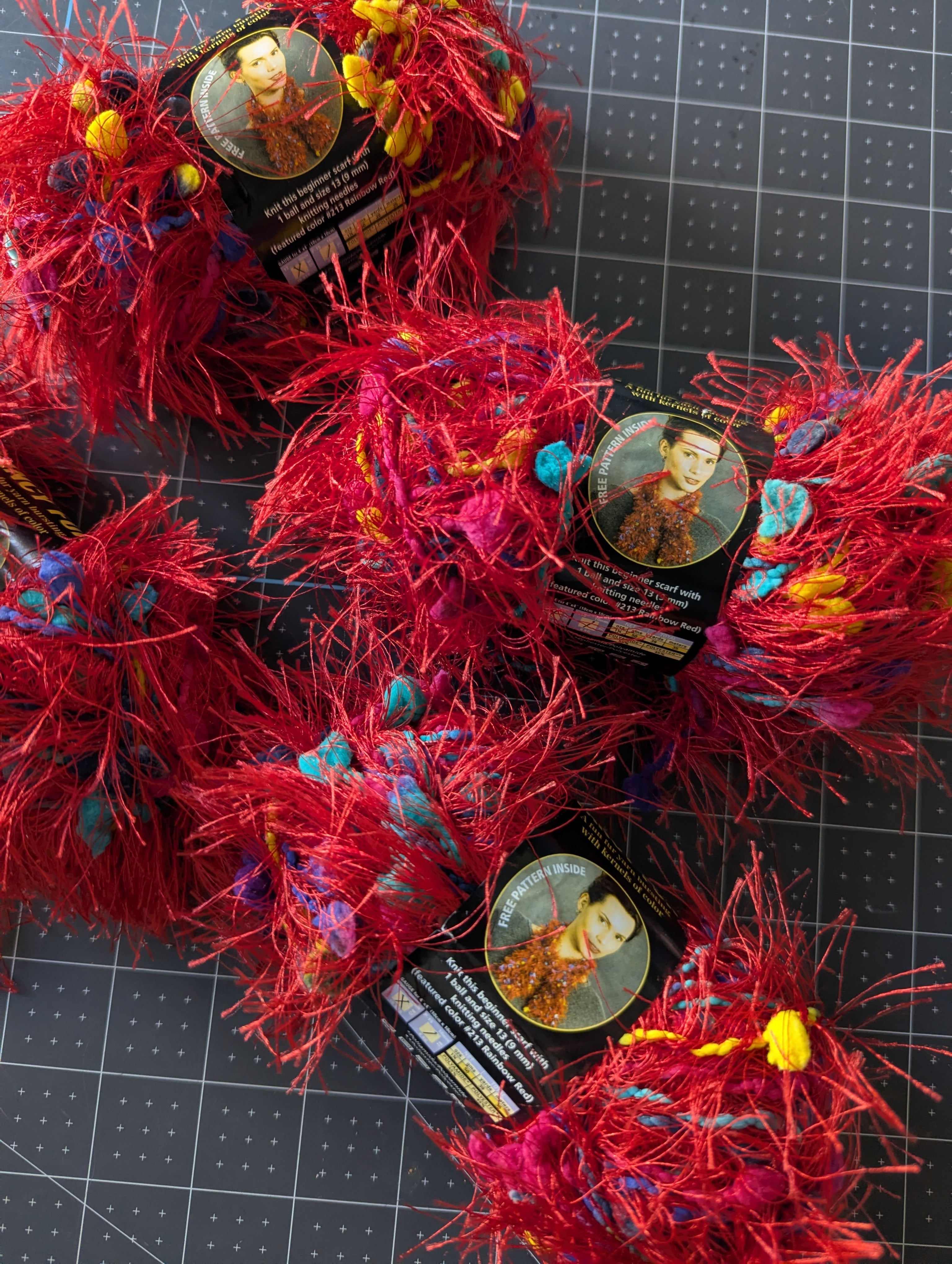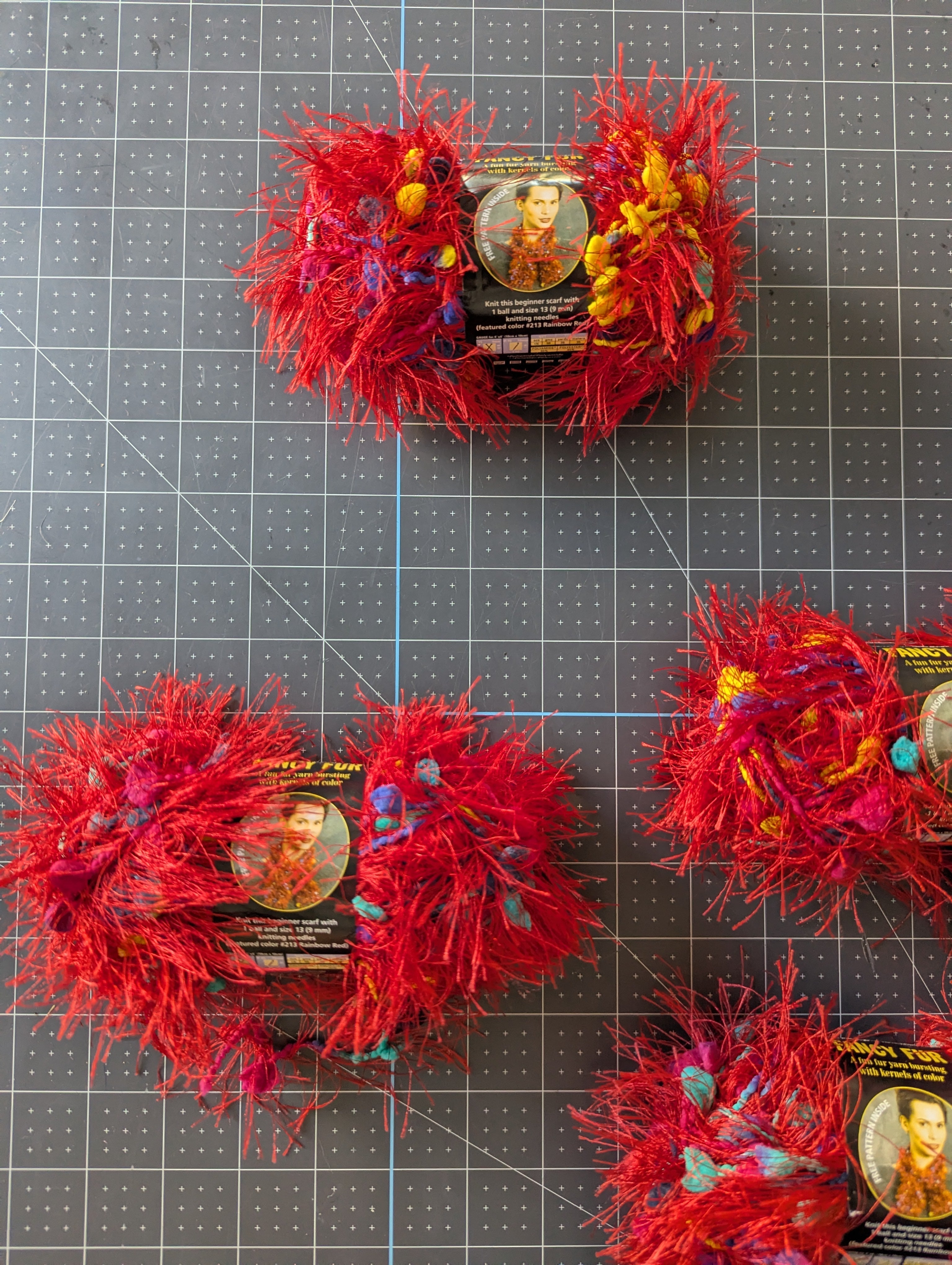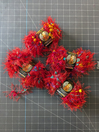 Four Skeins - Fancy Fur Yarn - Color #213, Rainbow Red