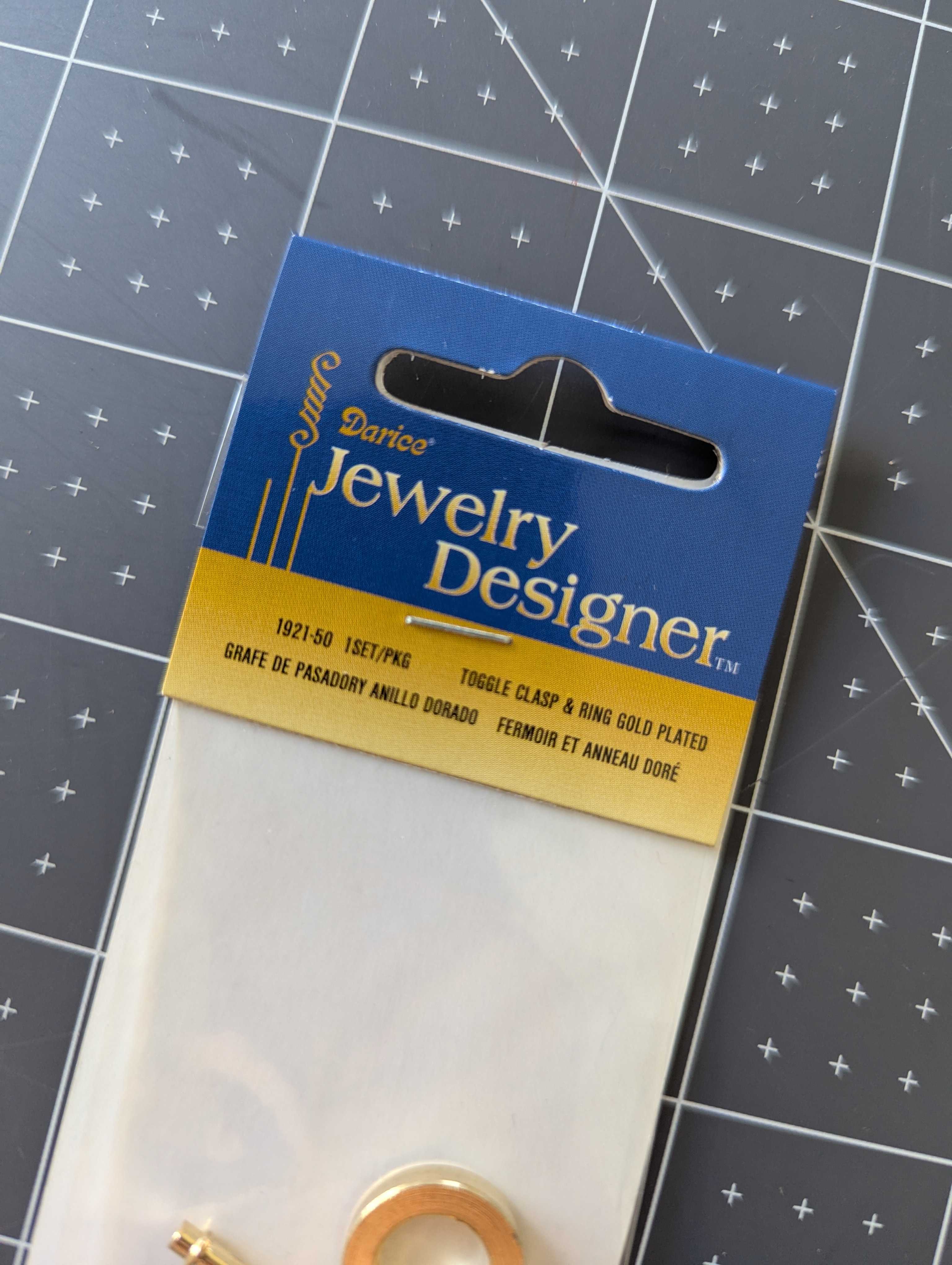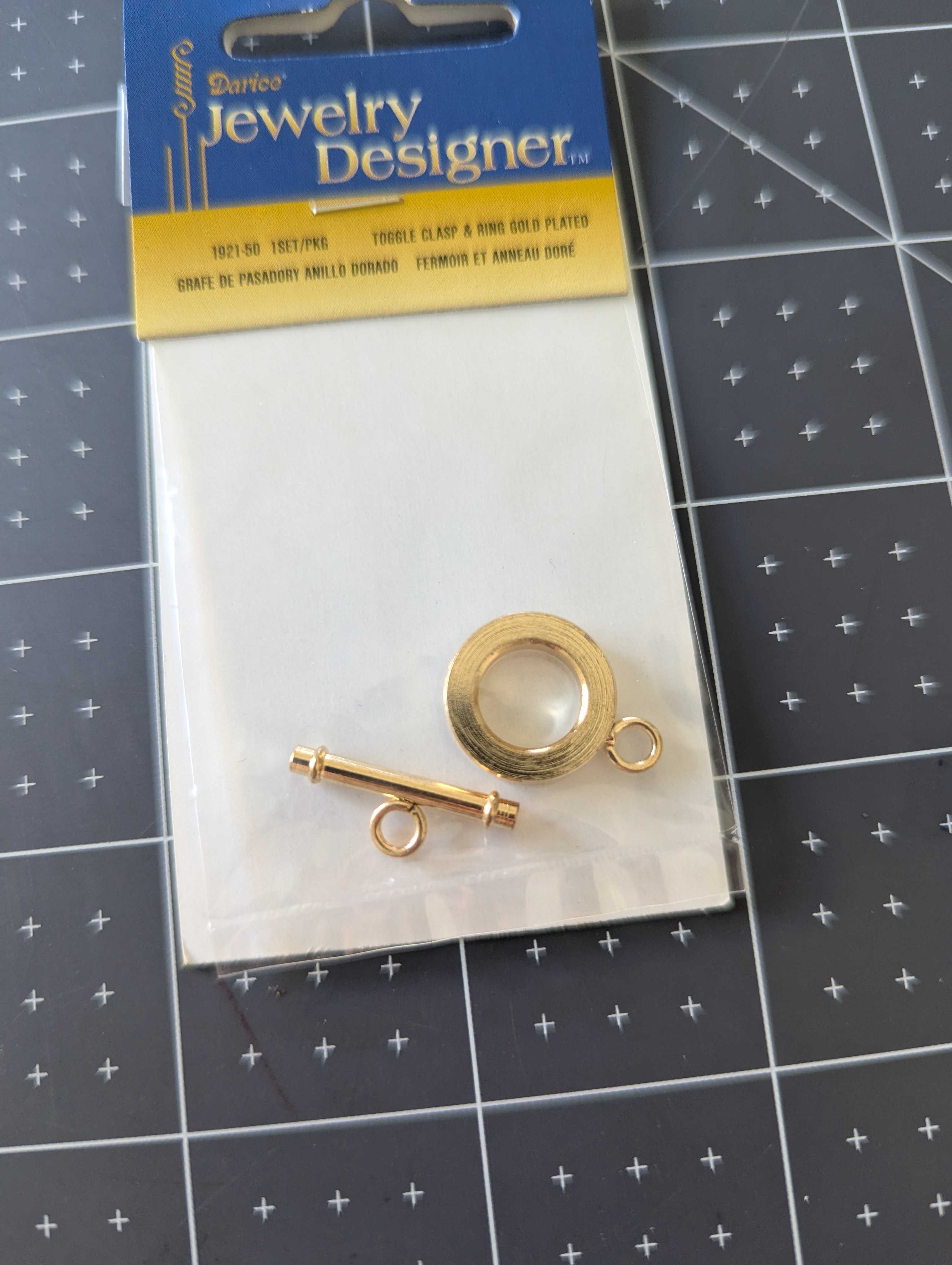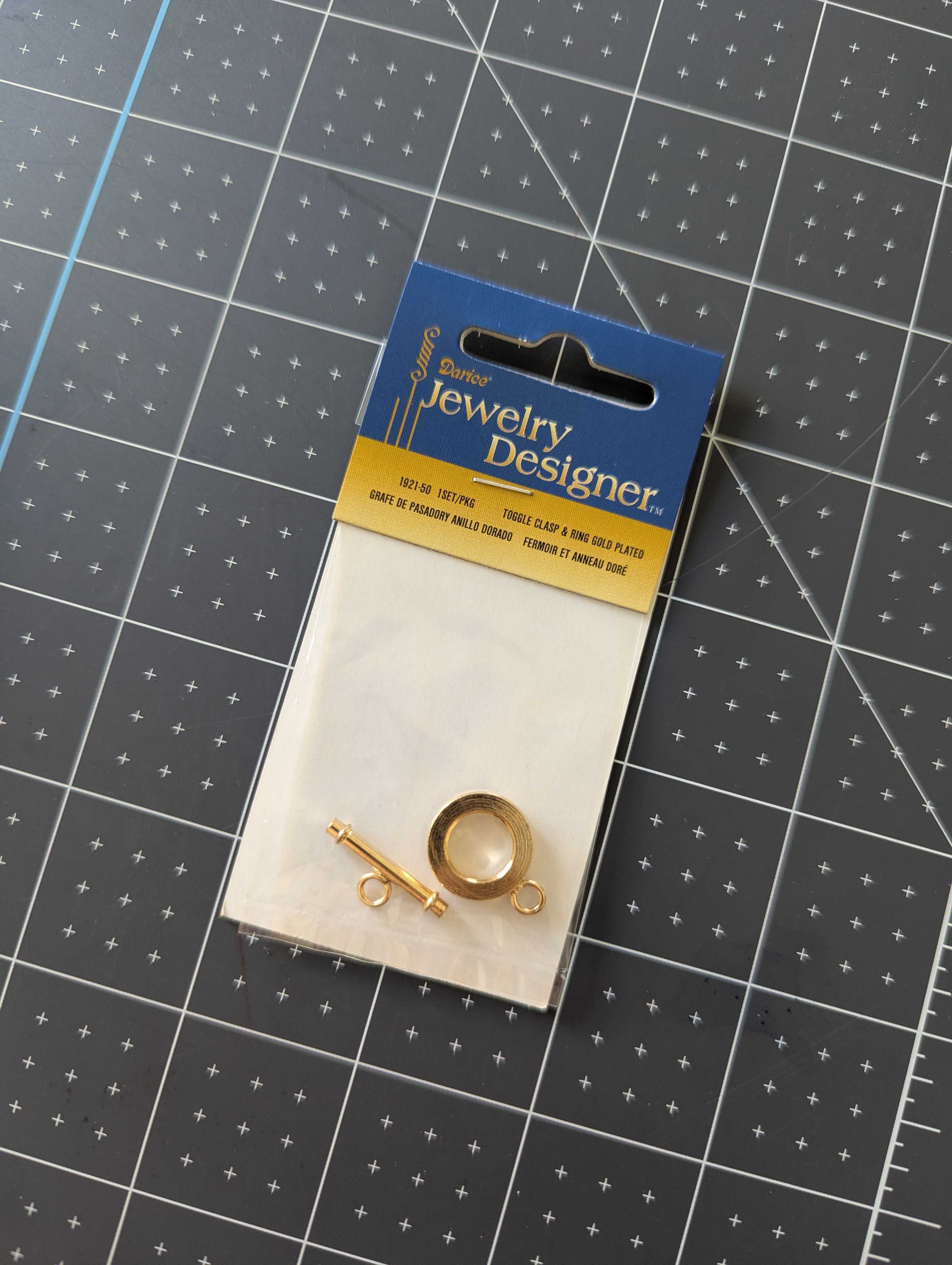 A single gold plated toggle clasp, never opened. Great for bracelets, or necklaces with easy closure.