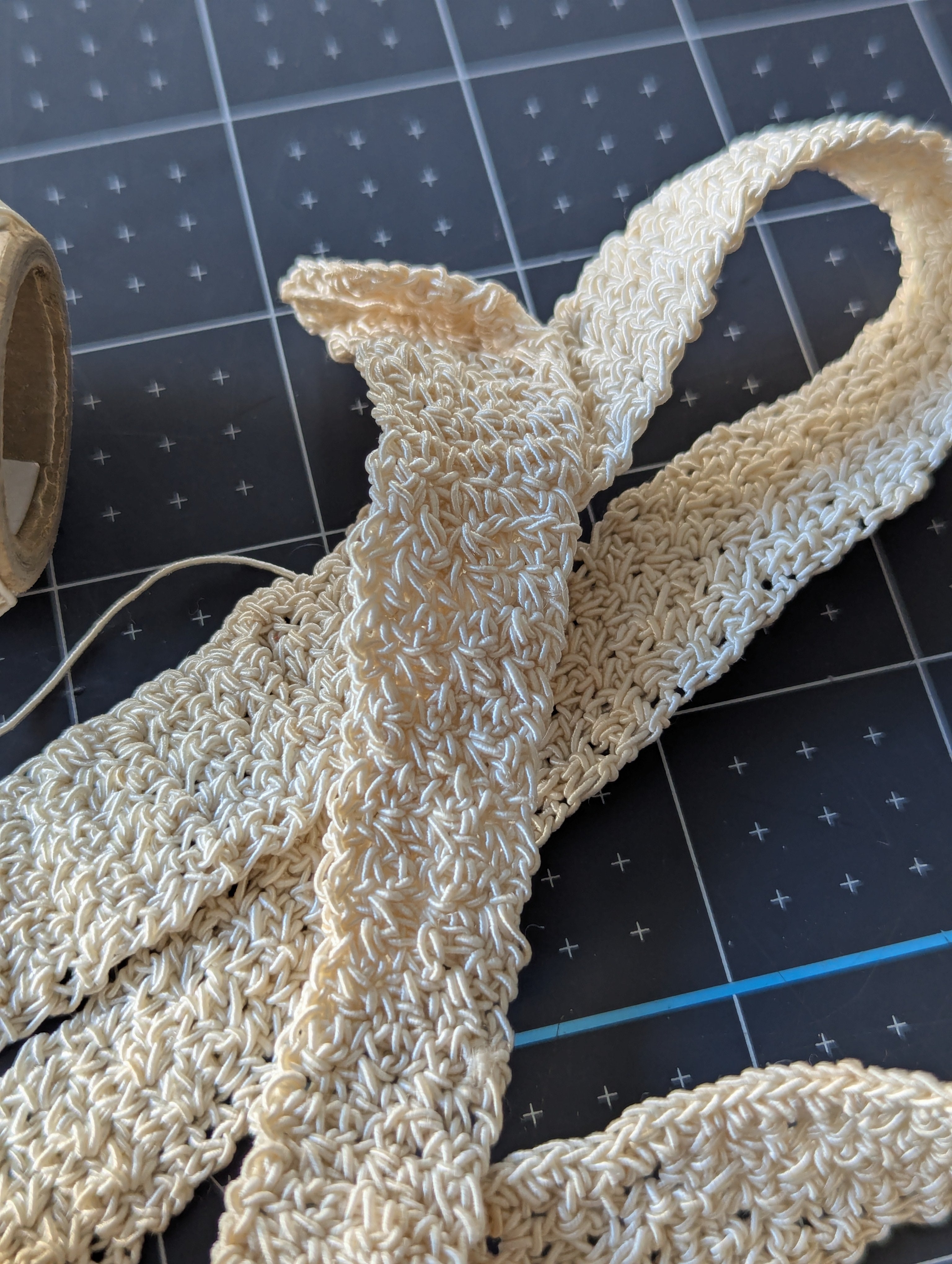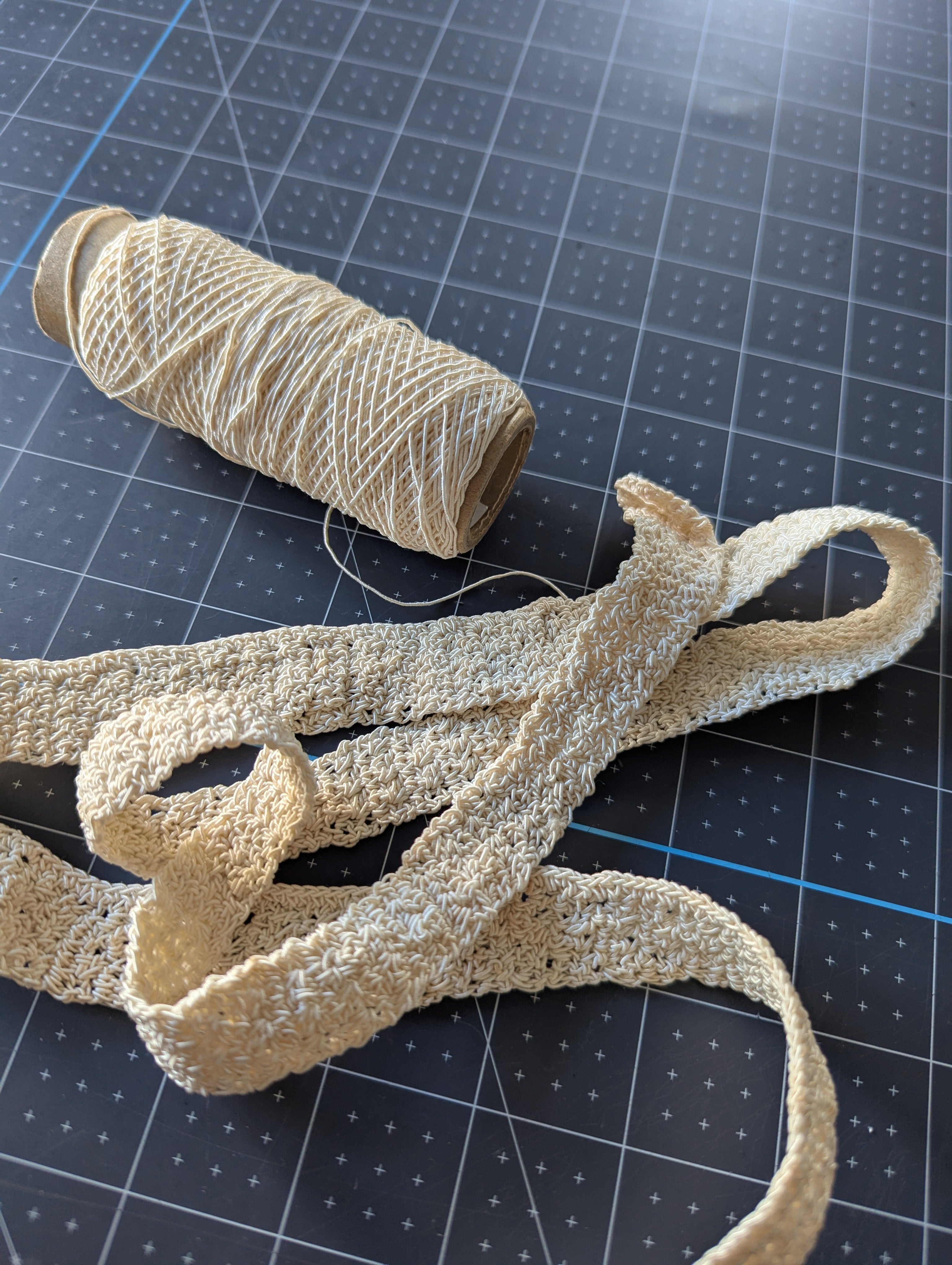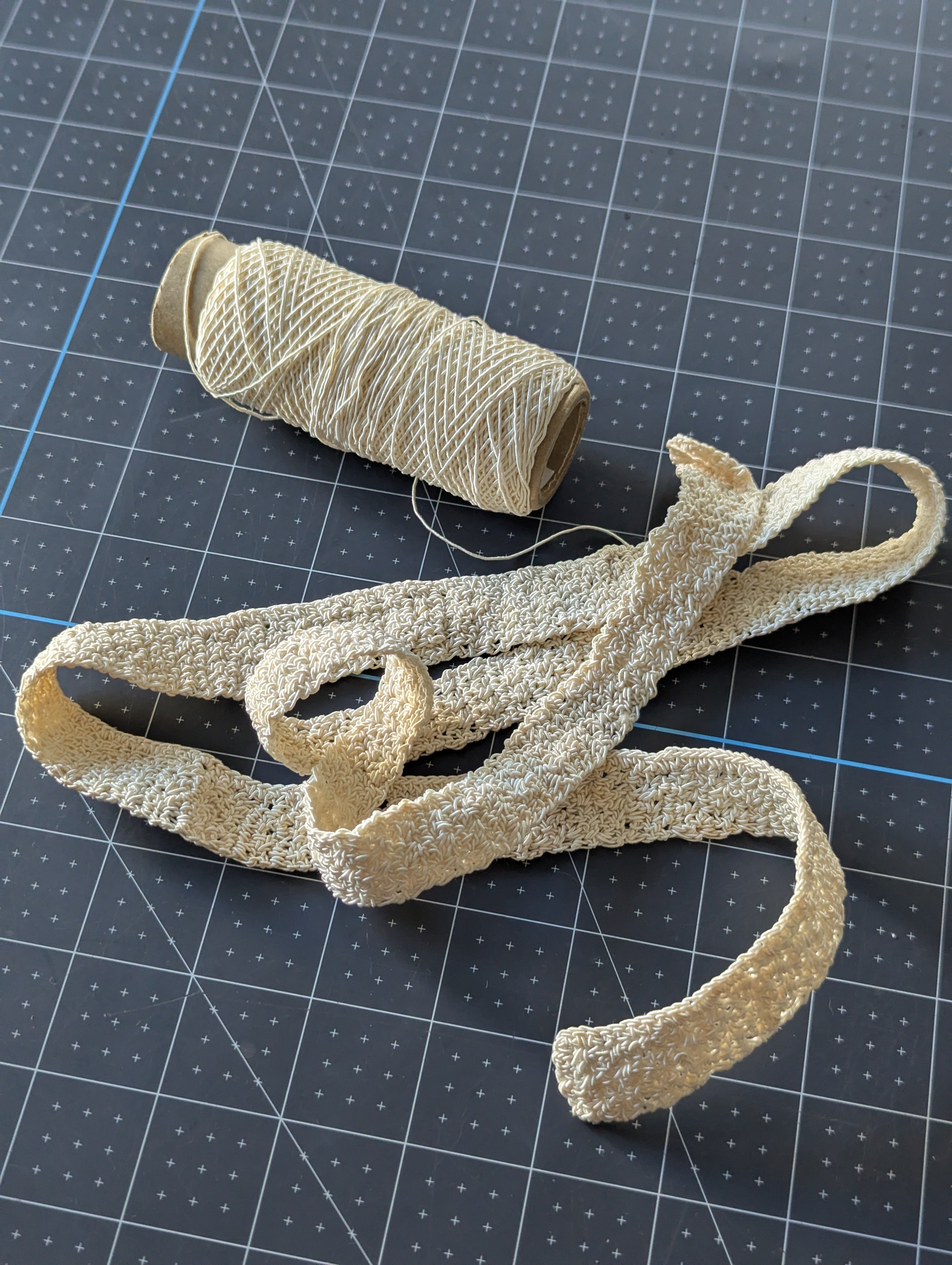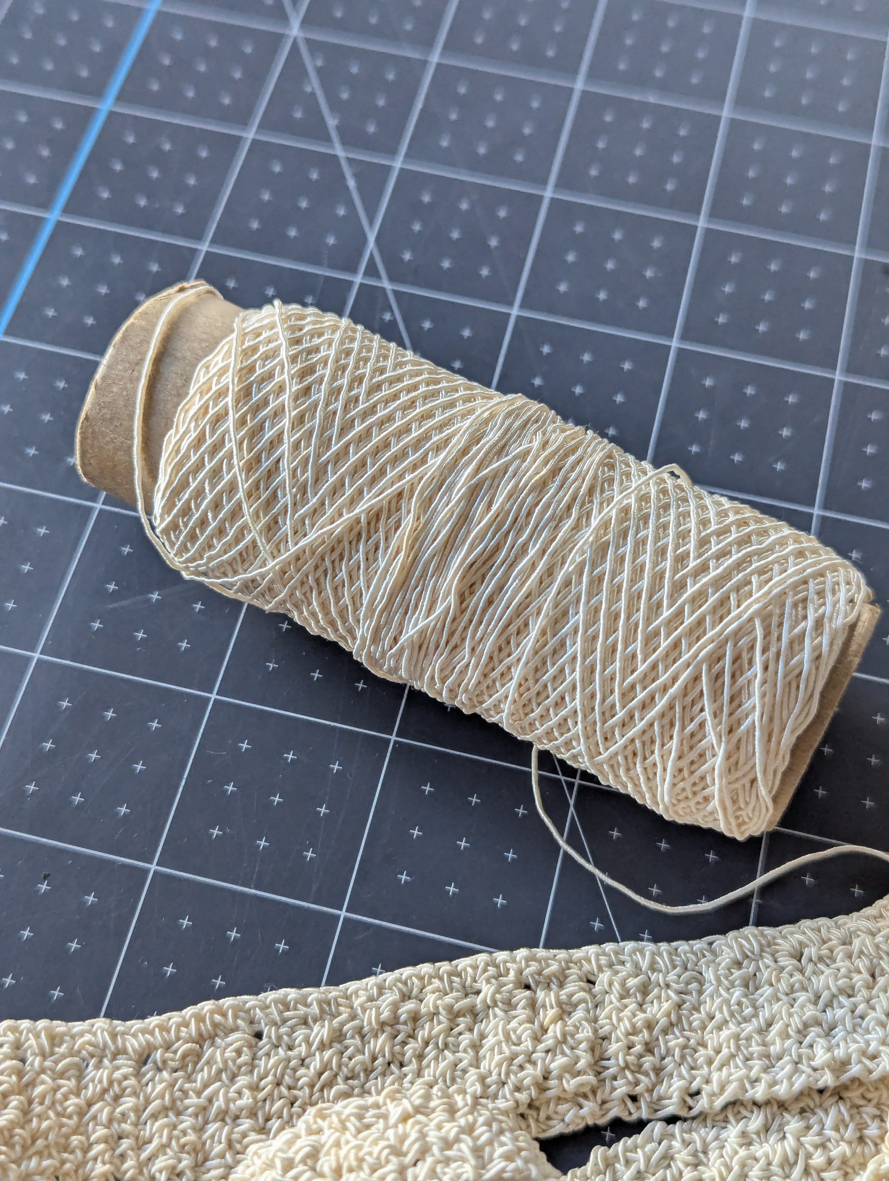 This is a custom trim made from a high quality ivory cord. It was stored with many antique and vintage trims. 16 inches are 'complete' in the thicker part with 18 inches a row behind. Still attached to the cord spool. Cut and use or finish!