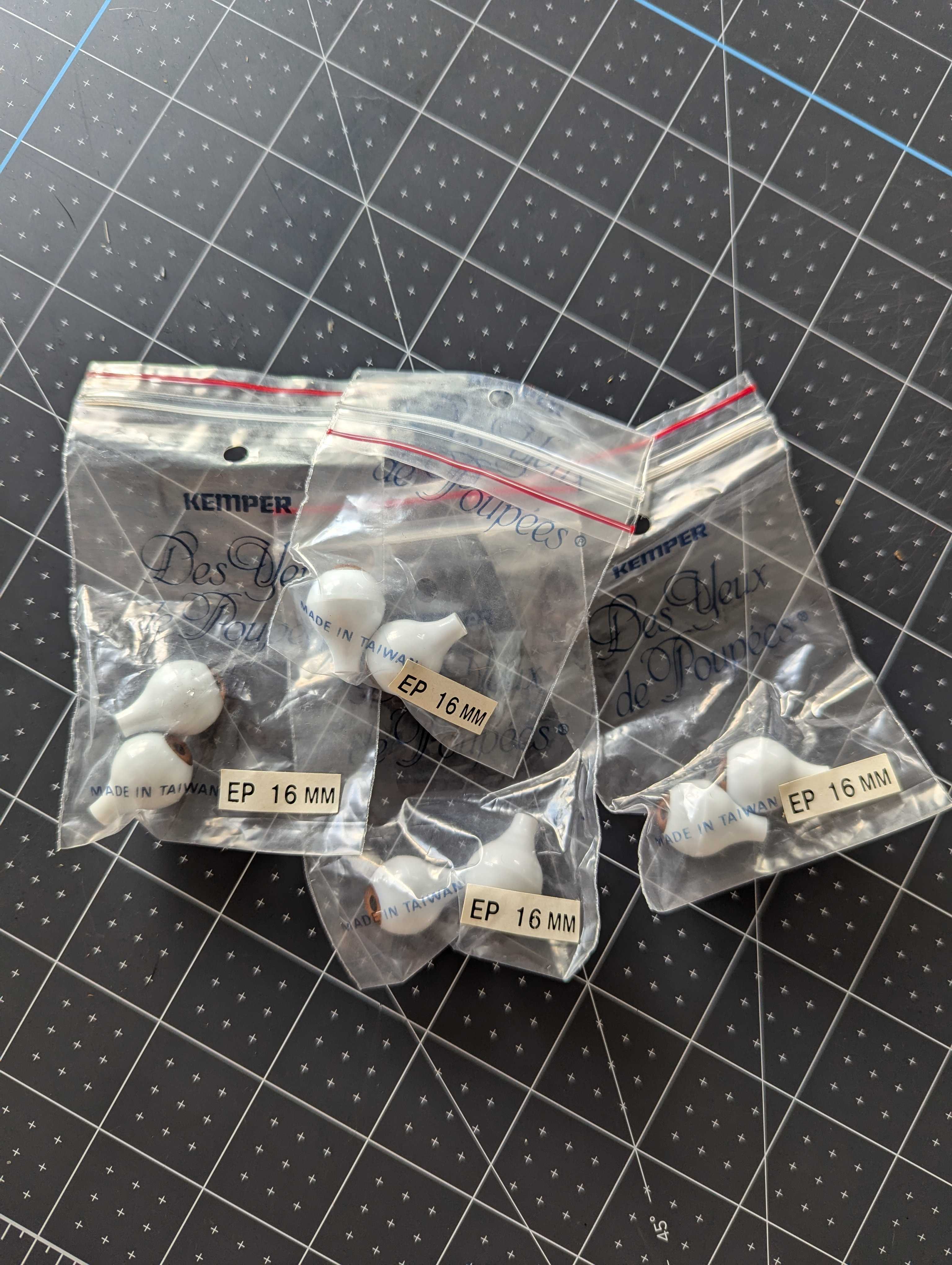Four pairs are available of these vintage doll eyes in new condition. Each 16mm, color brown. You'll receive one pair.